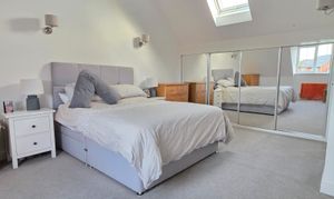 Commanding the second floor of this residence, the master bedroom has carpet flooring, radiator, integrated wardrobes with sliding mirrored doors, wall mount lighting, Vulex roof window, UPVC double glazed to front aspect and access into the en-suite shower room.