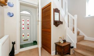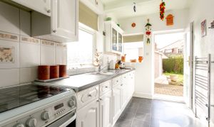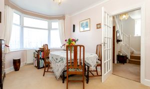 With gas-fired central heating and double glazing throughout, the accommodation briefly comprises: an entrance porch leading into a welcoming reception hall with useful under-stairs storage. To the front of the property is a bay-fronted dining room featuring a gas fire, wall lighting and decorative ceiling cornice. A separate reception room offers a modern electric fire and matching ceiling cornice, providing an ideal space for entertaining. The fitted kitchen includes a range of recessed appliances.
