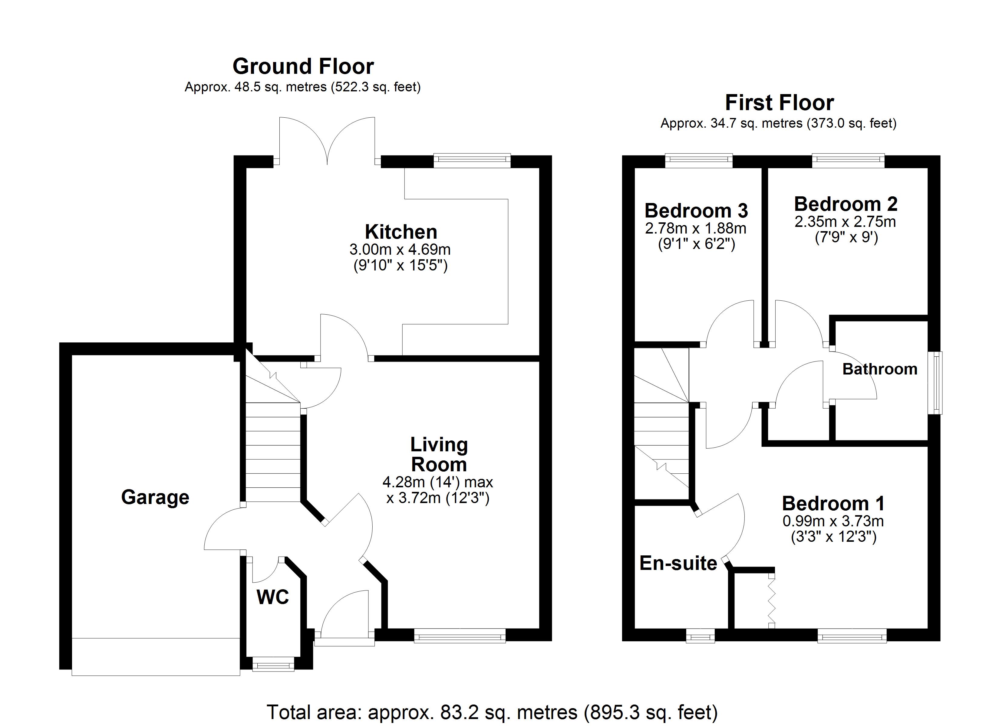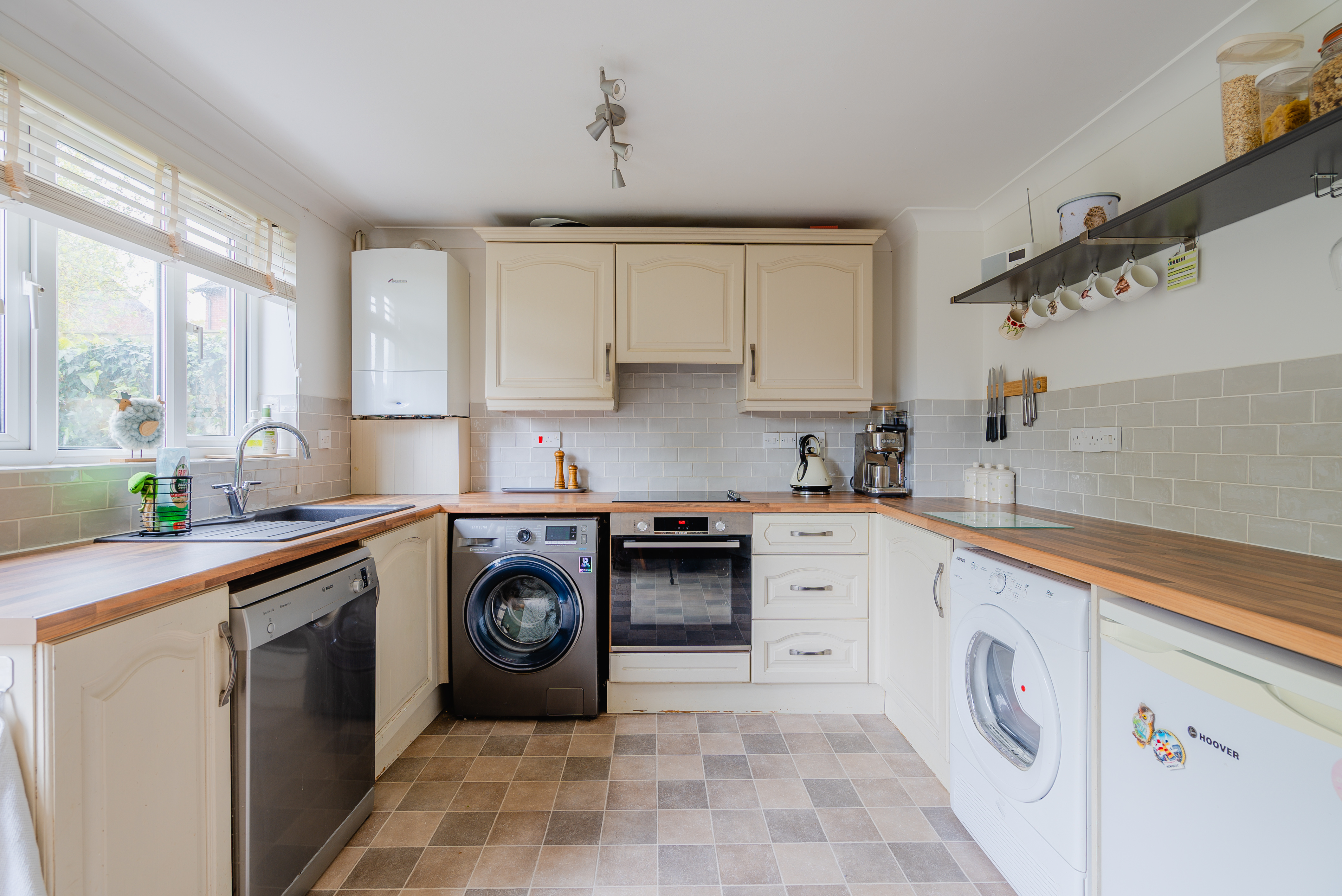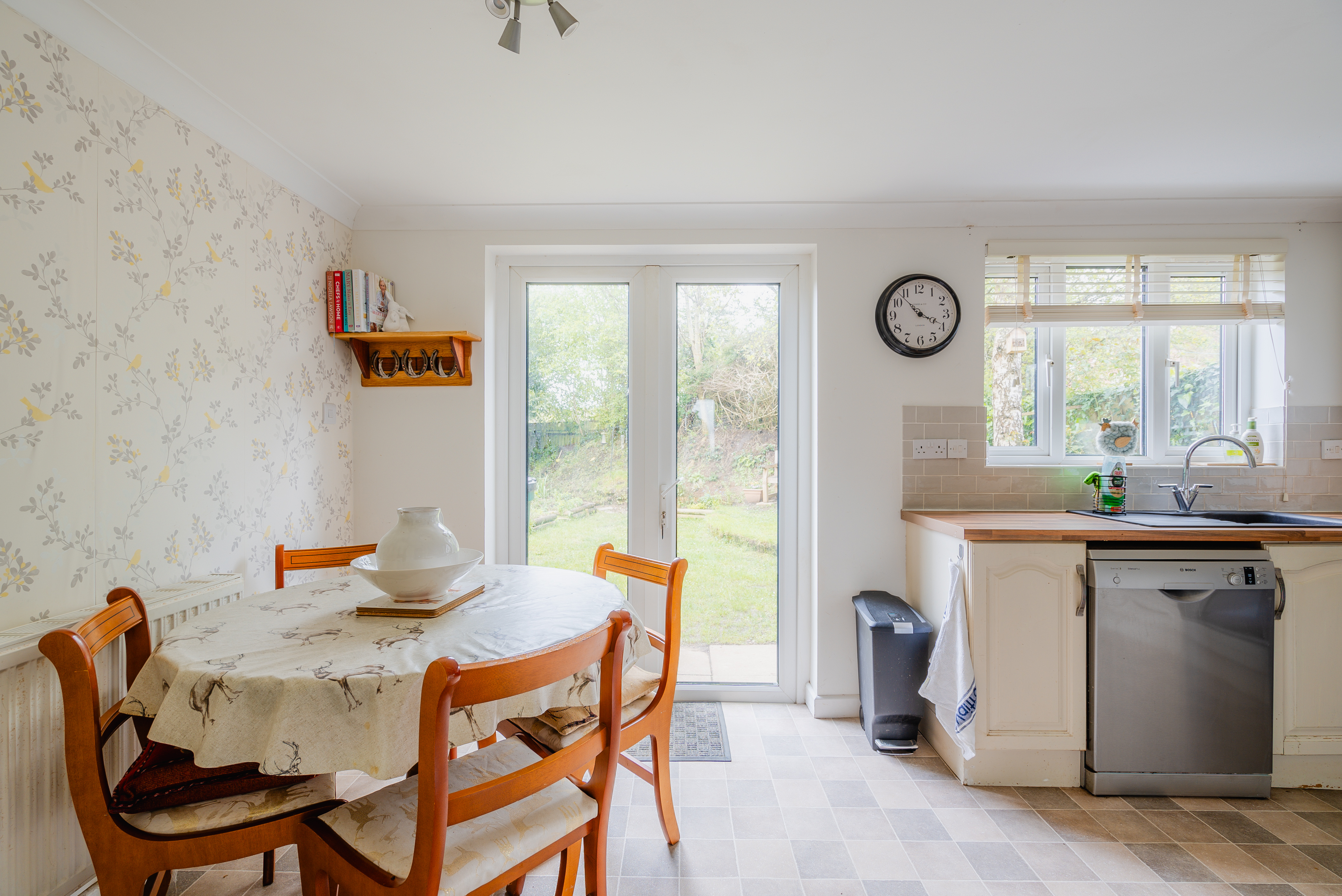 Access to the property leads to you into a hallway with a downstairs WC and an internal door to the garage. The lounge is a good size with a storage cupboard and then a door leads out to the kitchen/diner. The kitchen has views to the garden with an array of units with space for a dishwasher, washer/dryer & fridge. There is an electric oven & 4 ring ceramic hob. From the dining area there are patio doors out to the garden.