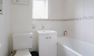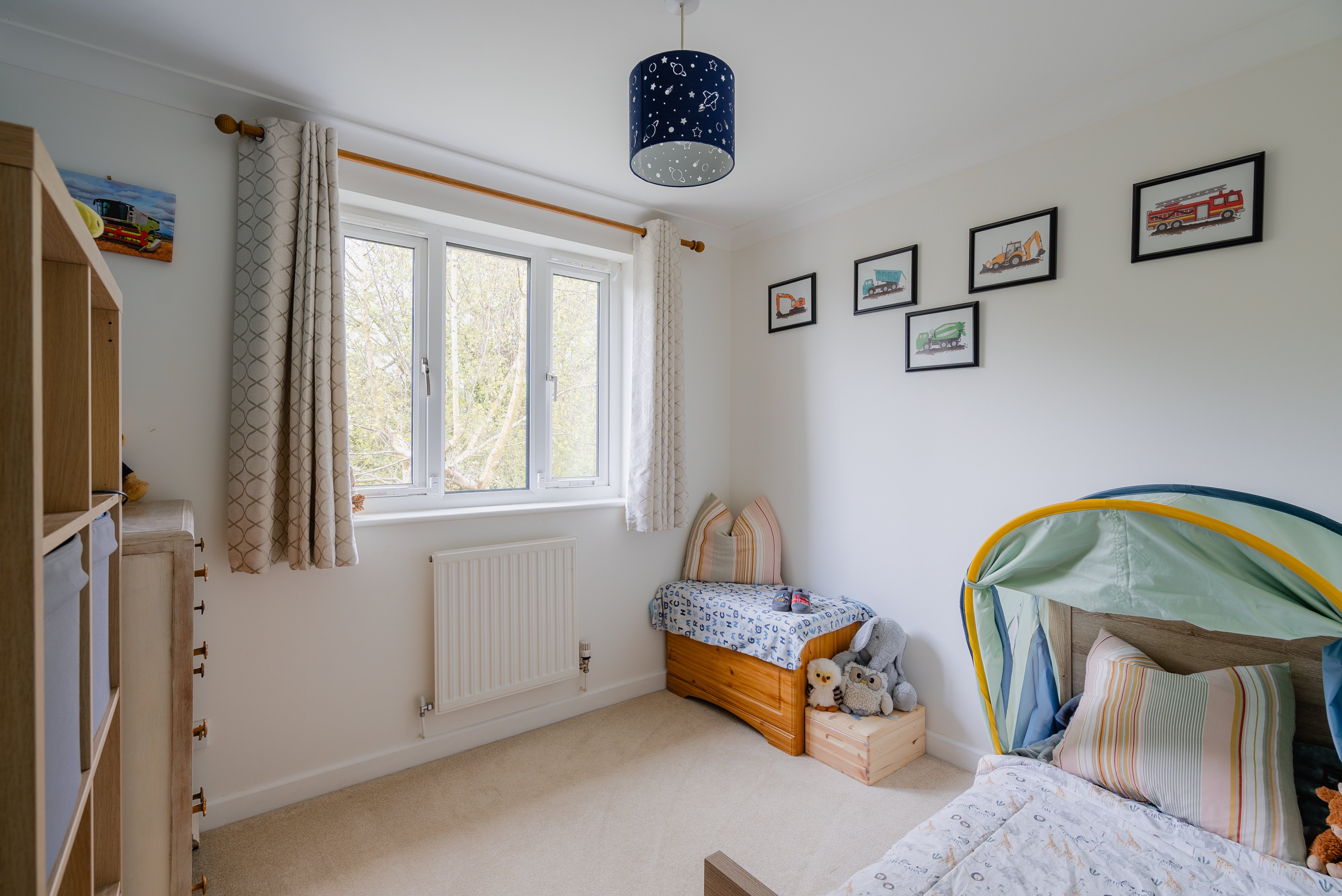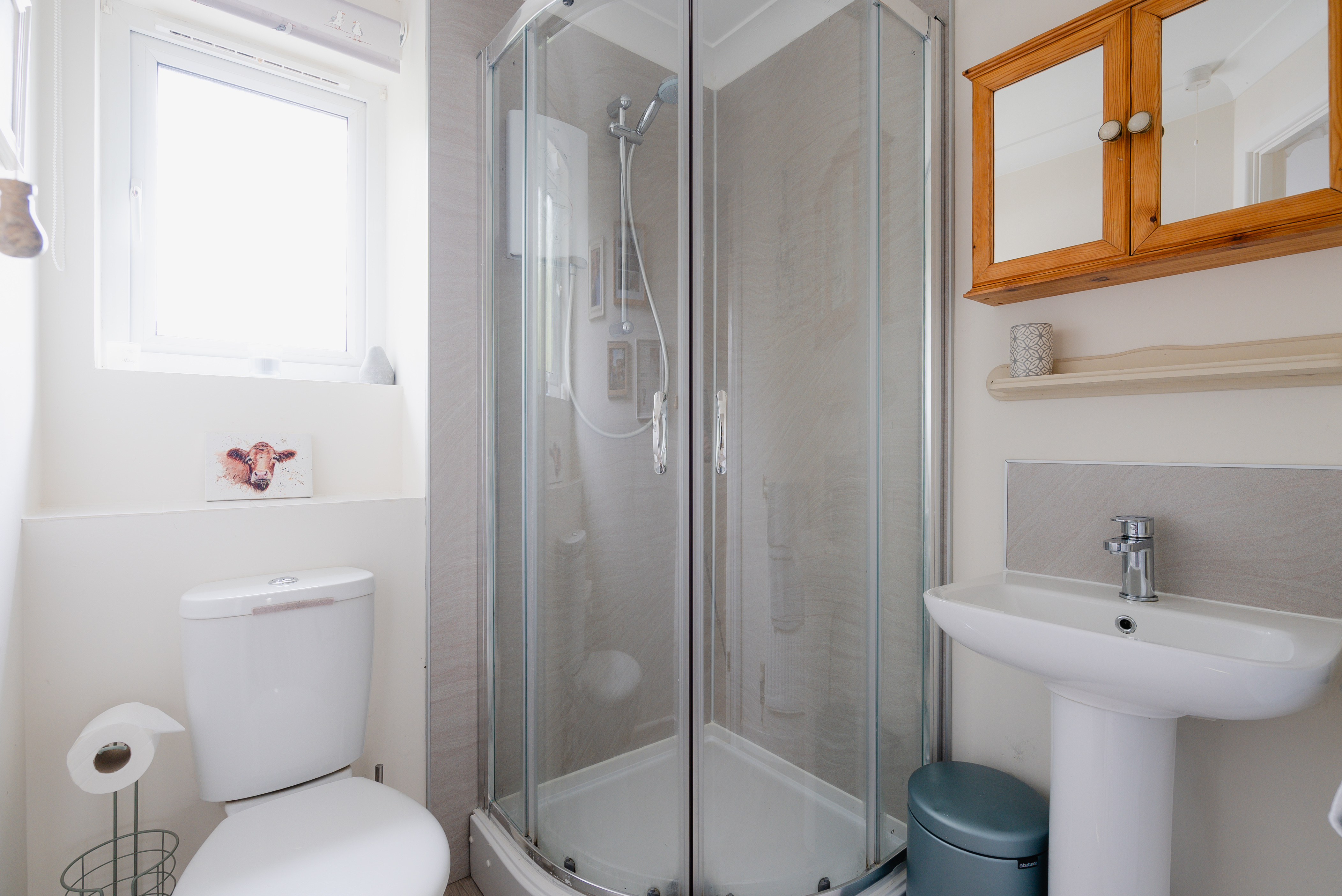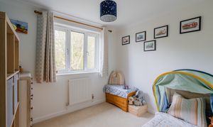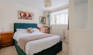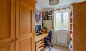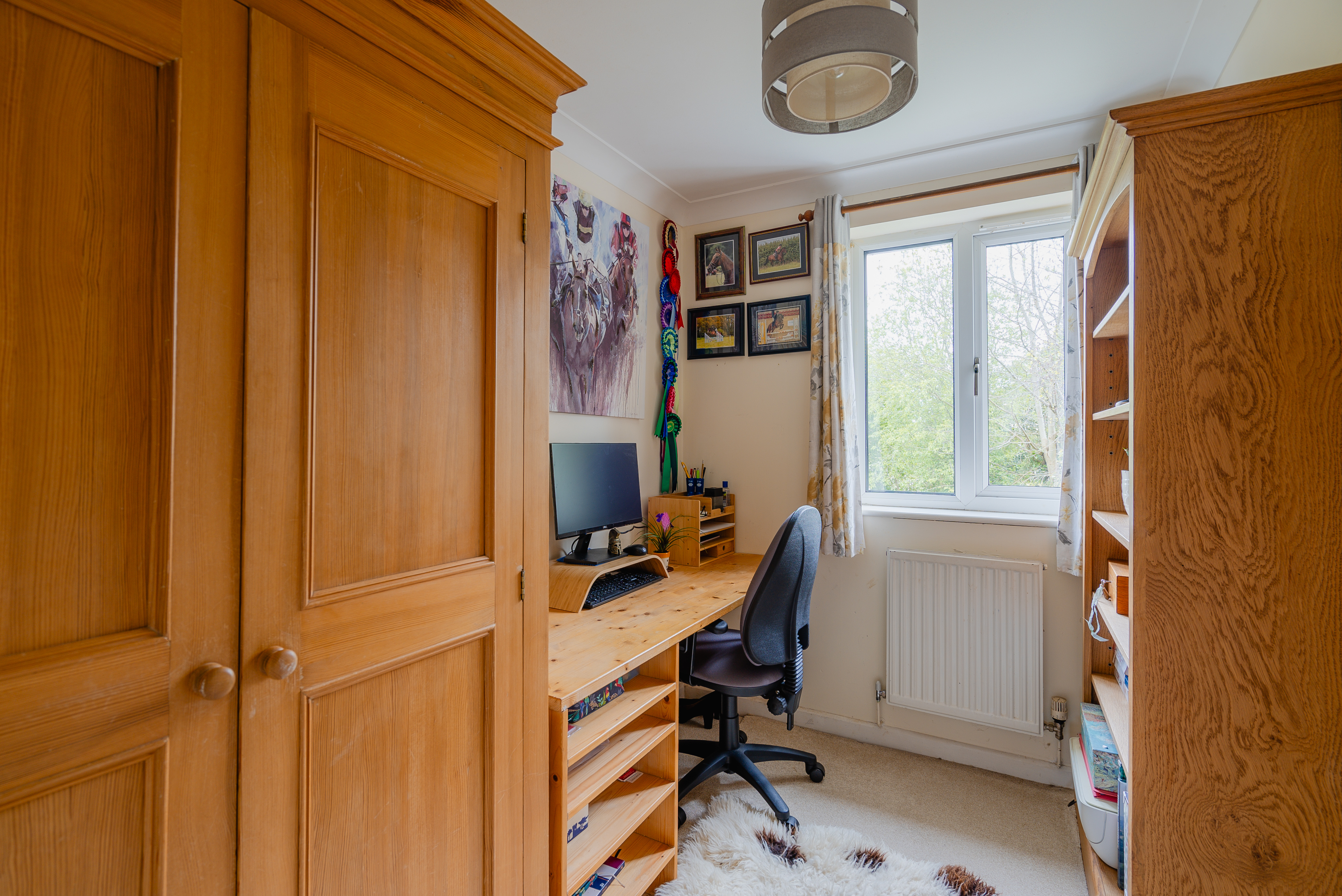 Upstairs the master bedroom has a deep bay window facing west, a built-in wardrobe and an ensuite white suite shower room. The 2nd bedroom is a double overlooking the garden & the 3rd bedroom is a single, currently utilised as an office. The main bathroom has a shower over the bath with a glass screen, this is also a white suite and has an attractive vanity sink unit. An airing cupboard space can be found on the landing and the loft is boarded with light and a ladder. The LPG gas tank is privately owned and there is uPVC double glazing throughout.