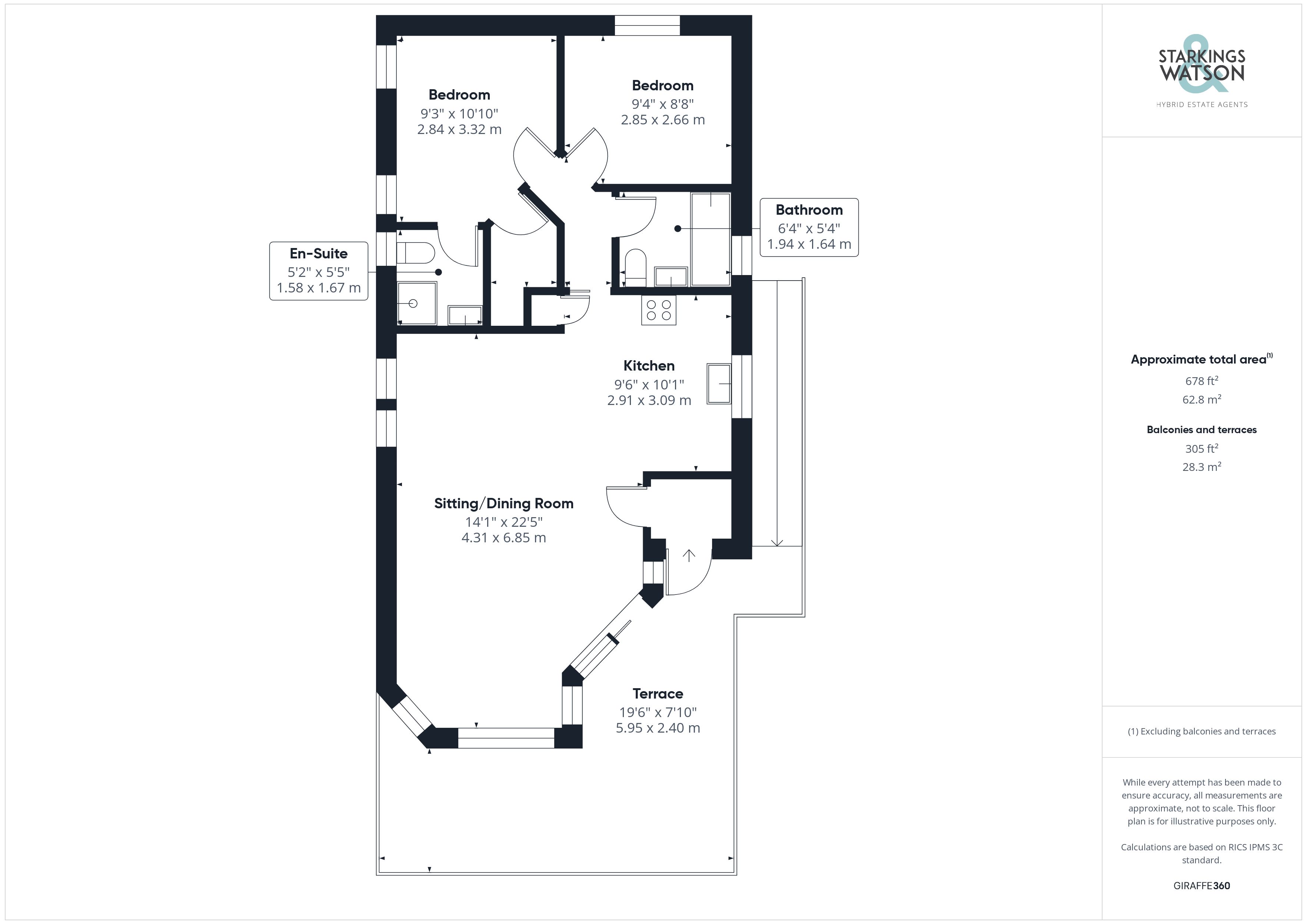 Entering via the main entrance door to the side you will find a lobby area with storage providing space for coats and shoes, this leads through into the main open plan reception with windows and doors overlooking the frontage with stunning views beyond. The sitting and dining areas provide plenty of space for relaxing and lead directly into the kitchen area which offers plenty of storage, as well as integrated appliances including oven, gas hob, dishwasher, fridge and freezer. There is then a large storage cupboard and an inner hallway leading through to the two double bedrooms and two bathrooms. The bedrooms both have fitted wardrobes and storage with the master benefitting from a walk in cupboard and en-suite shower room. The bathroom offers a bath with shower over.