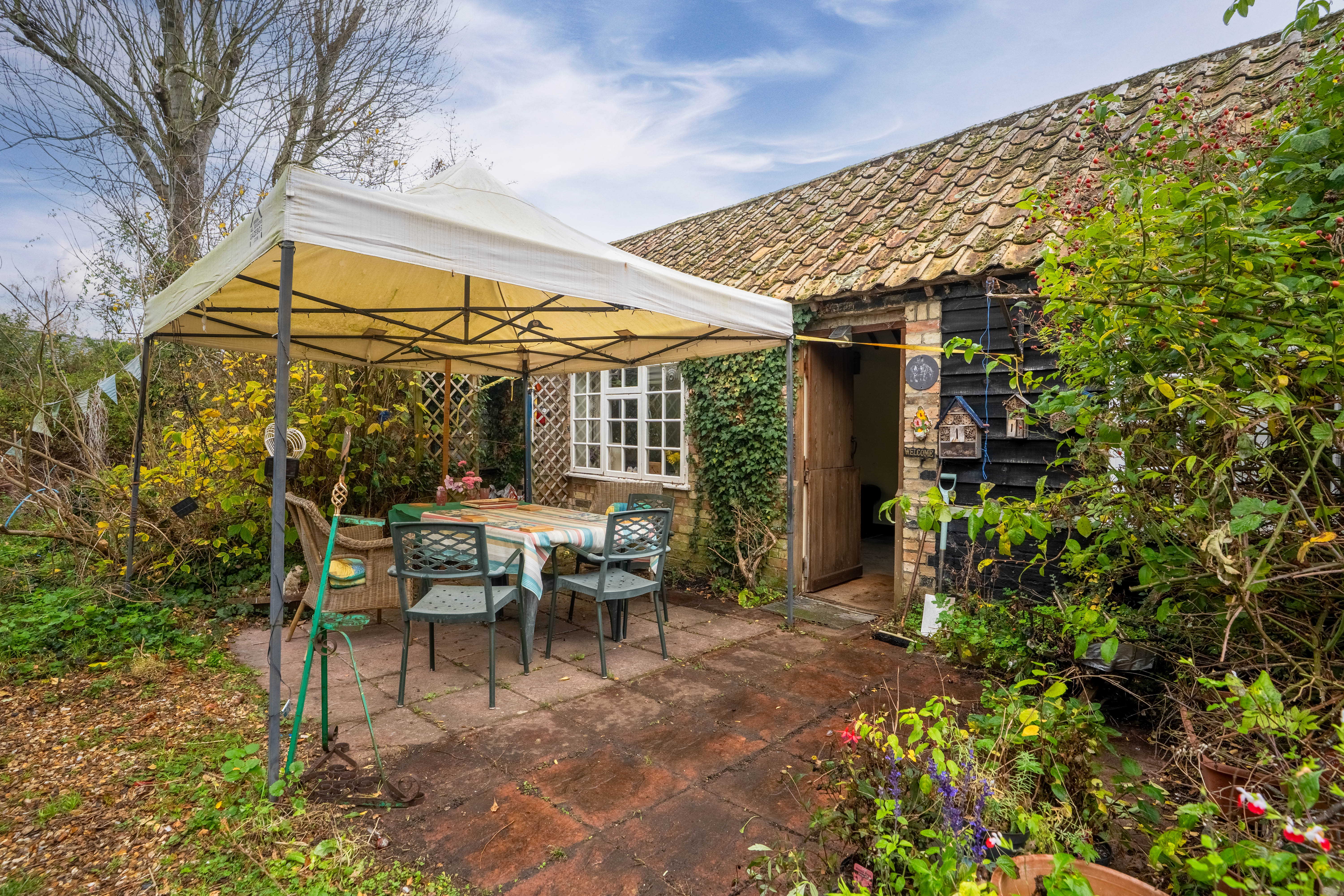The property sits on an established plot, just off the High Street, and neighbours a barn conversion. Florence Cottage sits back from the road with a small cottage-style garden. Alongside is vehicle access to the rear of the property, comprising a parking area with access to the workshops and original barns. The rear garden requires some clearing and includes a courtyard, with gated access to the side.