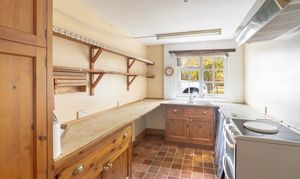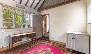 Accessing this quaint cottage via the porch, you will enter the cosy sitting room with an original brick fireplace with bespoke wood cabinet fitted into the recess. There is an original brick weave floor and original panelled doors throughout, with stairs rising to the first floor. There is a second reception room, also featuring an open fire with a beautiful Victorian tiled surround and wood flooring. The handmade kitchen is a comprehensive range of wall and base units with space for appliances. There is a snug with a beautiful brick inglenook fireplace and original beams and an original brick weave floor. A ground-floor bathroom and a useful separate utility room, with access to the courtyard. The rear hall provides space for coats and boots, with a door leading to the courtyard and then onto the two converted barns. Comprising two versatile and impressive rooms, both with vaulted ceilings and exposed timber beams.