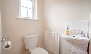 Upstairs, you will find four bedrooms, including a principal bedroom which boasts an en-suite shower room. The landing includes an airing cupboard and provides access to the family bathroom. Three of the bedrooms benefit from built-in storage, including two with fitted wardrobes and one with a fitted cupboard, offering excellent space-saving solutions.
