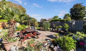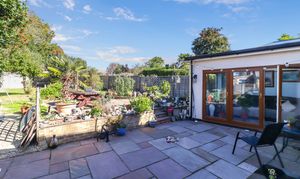 The property is set back from the road behind a large driveway providing ample parking for several vehicles, as well as access to a double garage. To the rear is an impressive 100ft garden, beautifully arranged with a patio and extensive lawn.