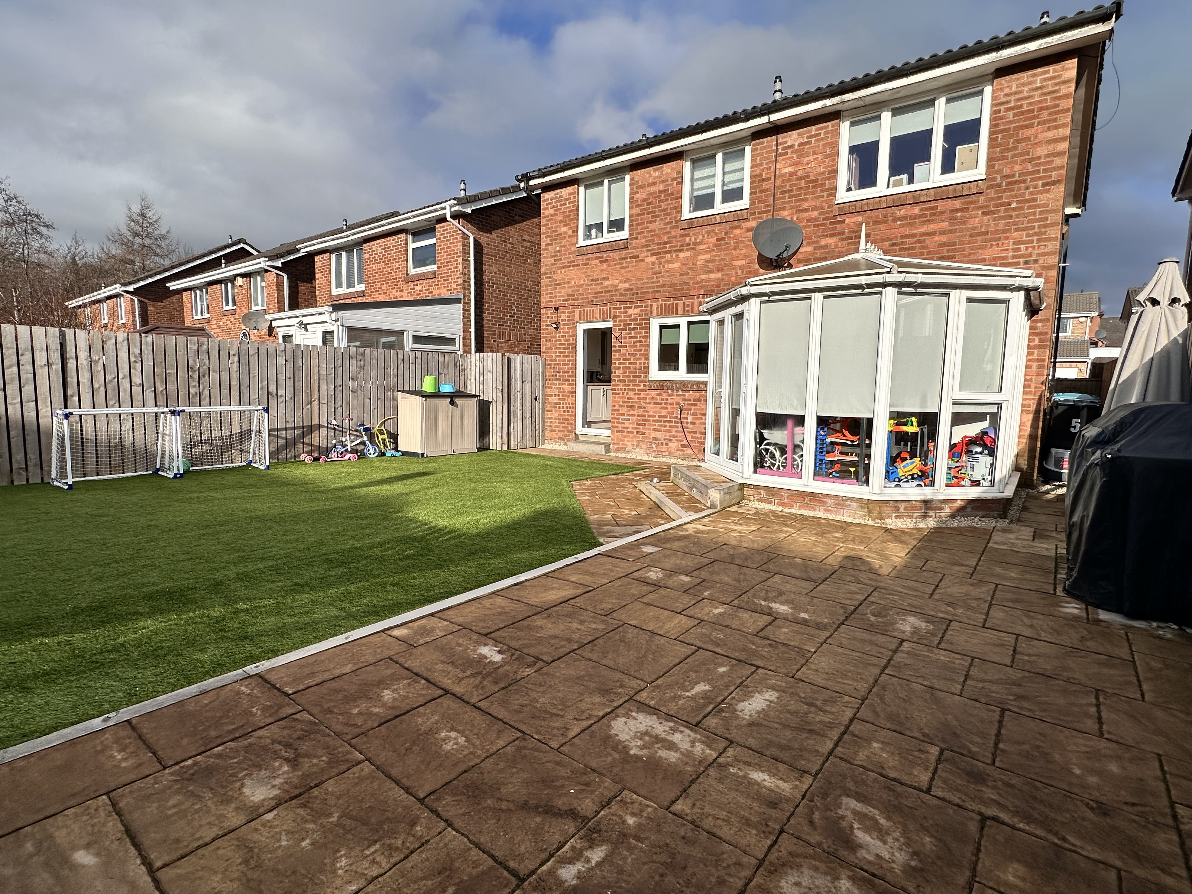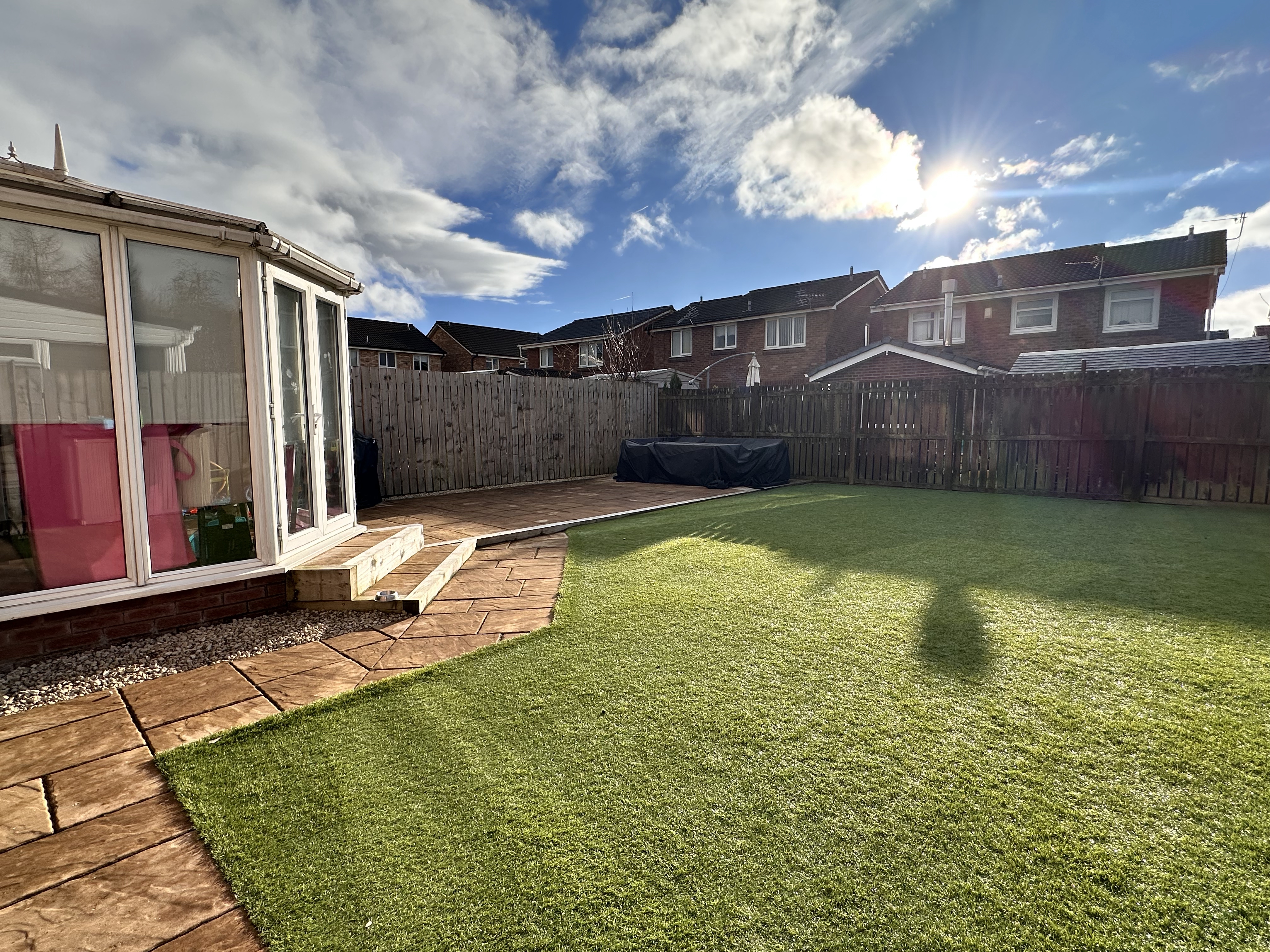 - Wow factor is the south facing gardens which offer excellent entertaining in the summer months ahead, enclosed timber fencing, and patio areas