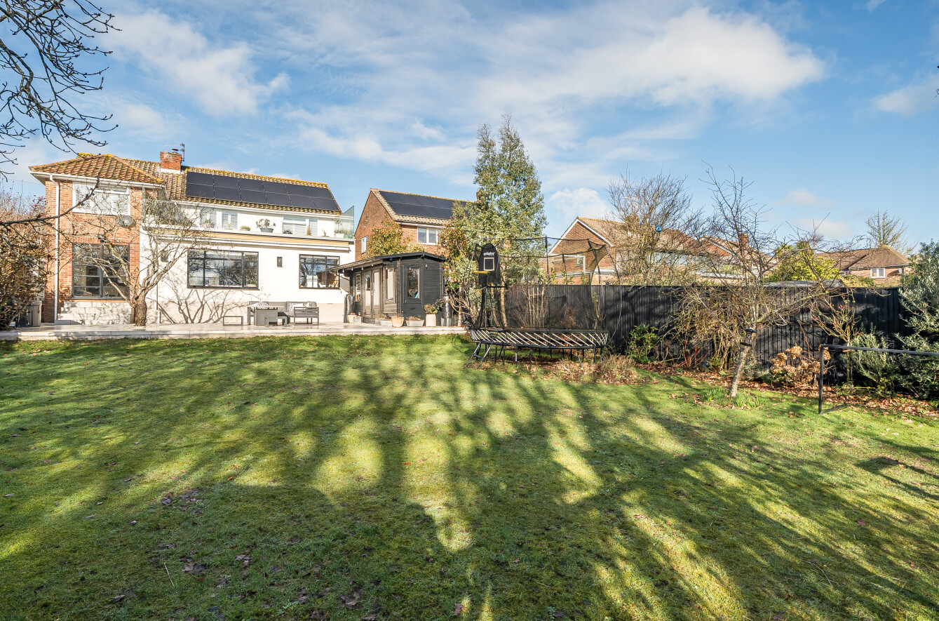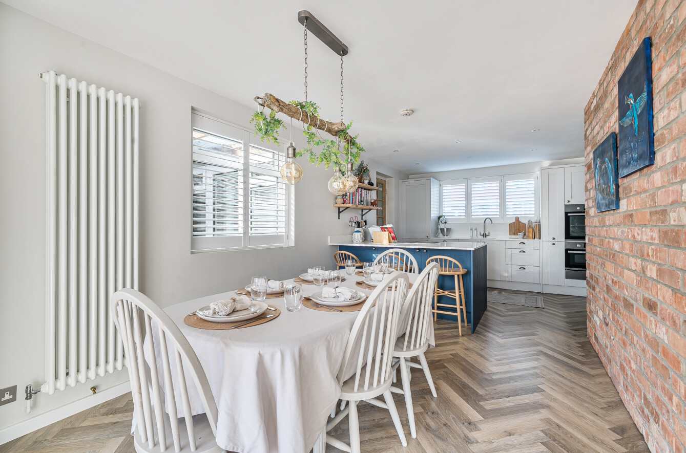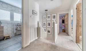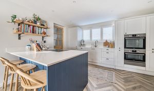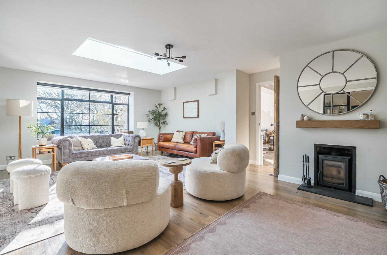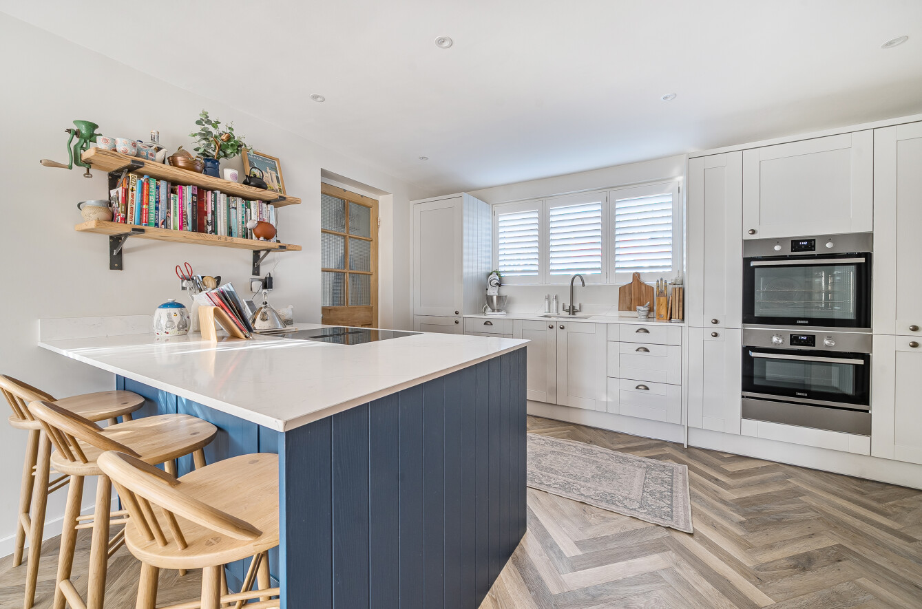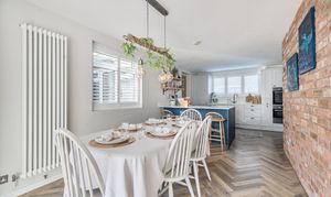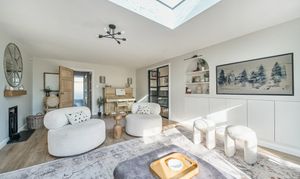This beautifully presented home has been tastefully extended to provide practical and stylish family accommodation, perfectly suited to modern living. The interior boasts attractive wooden flooring and elegant shutters throughout, with a light-filled sitting room featuring a striking sky lantern and elevated views over the garden. The open-plan kitchen and dining area forms the heart of the home, complemented by a separate utility room with both front and rear access, a versatile playroom, and a convenient ground-floor cloakroom.