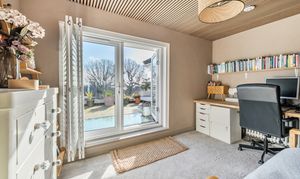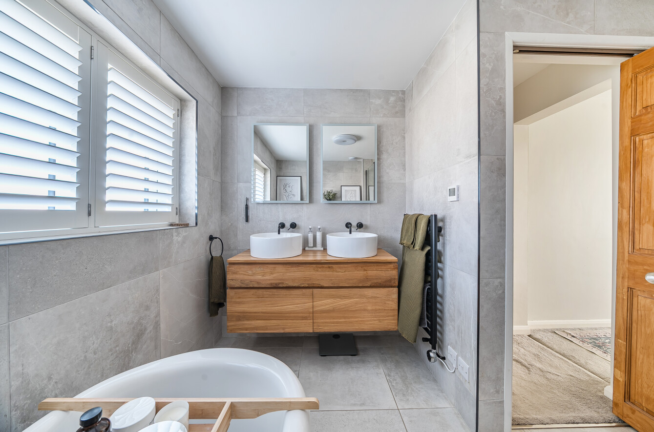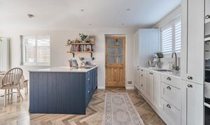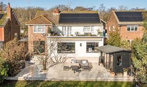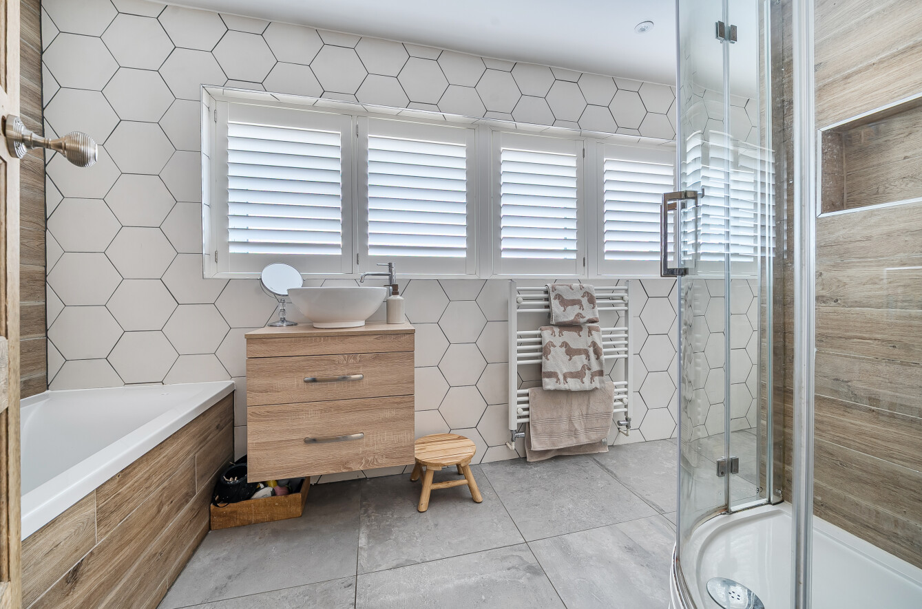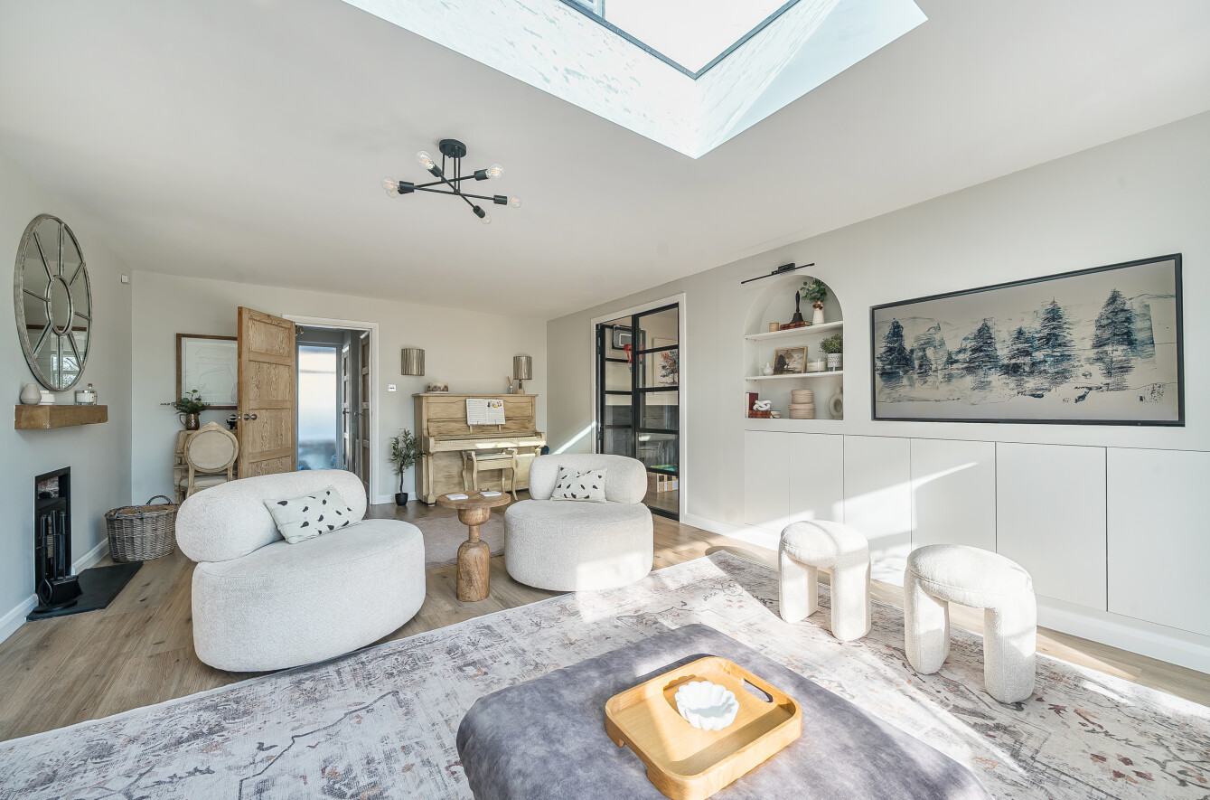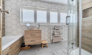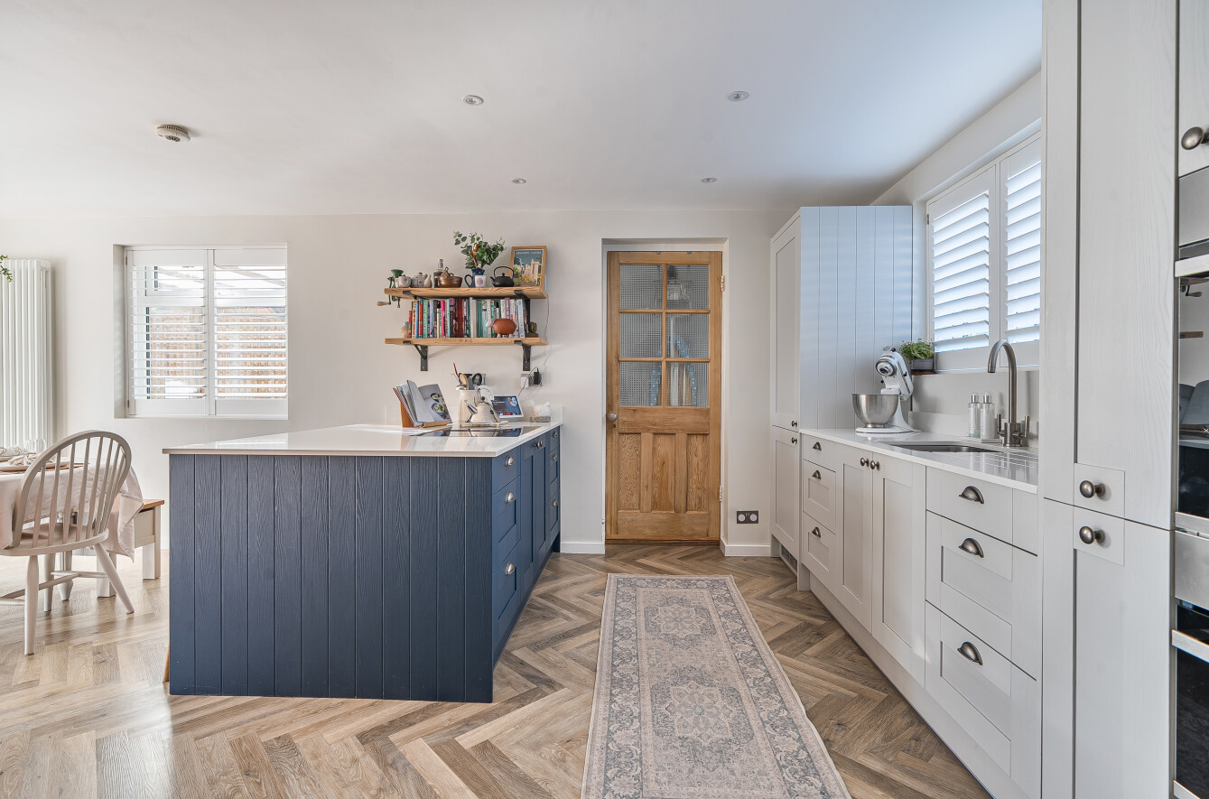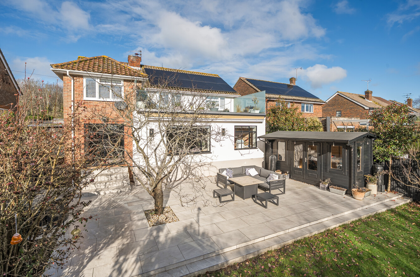 This beautifully presented home has been tastefully extended to provide practical and stylish family accommodation, perfectly suited to modern living. The interior boasts attractive wooden flooring and elegant shutters throughout, with a light-filled sitting room featuring a striking sky lantern and elevated views over the garden. The open-plan kitchen and dining area forms the heart of the home, complemented by a separate utility room with both front and rear access, a versatile playroom, and a convenient ground-floor cloakroom.