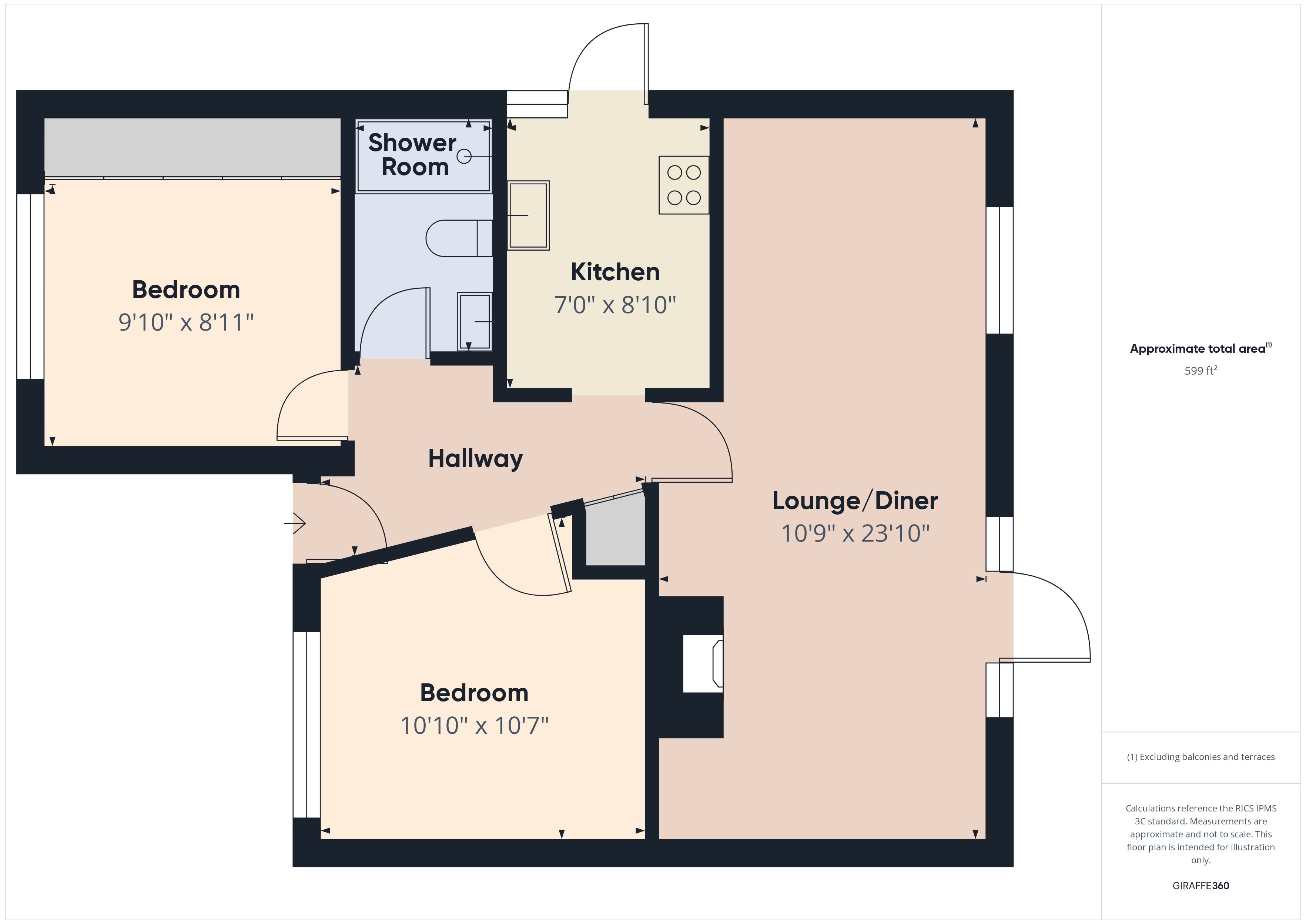 - Approx Sq Feet: 592 sqft