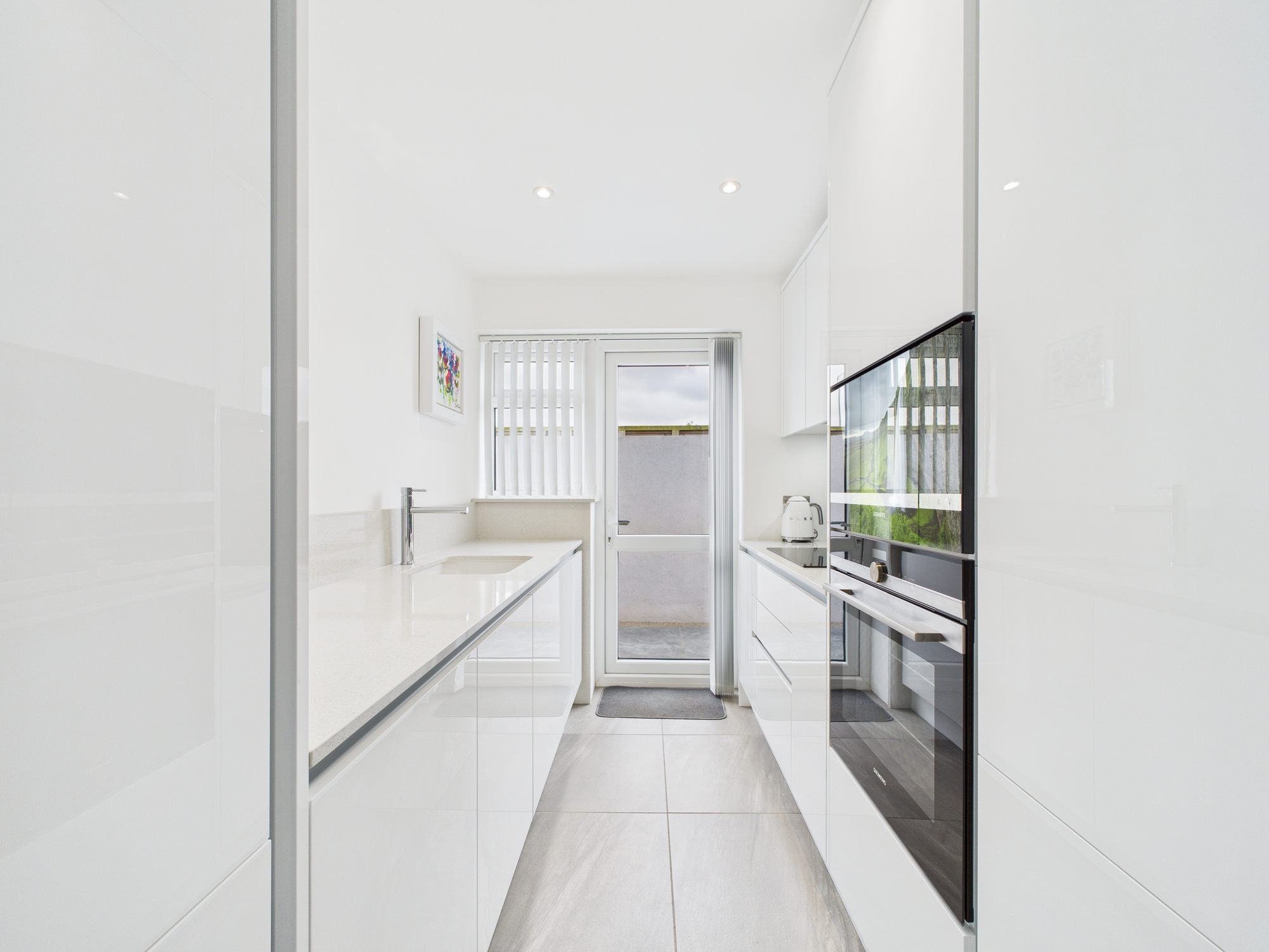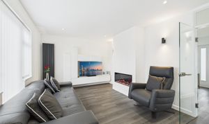This property has been fully transformed with no expense spared. High quality grey oak effect flooring across the property, newly installed kitchen with handless doors, finished with quartz worktops surfaces and an undermount sink. Integrated Siemens appliances include a built in oven, hob and microwave.