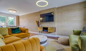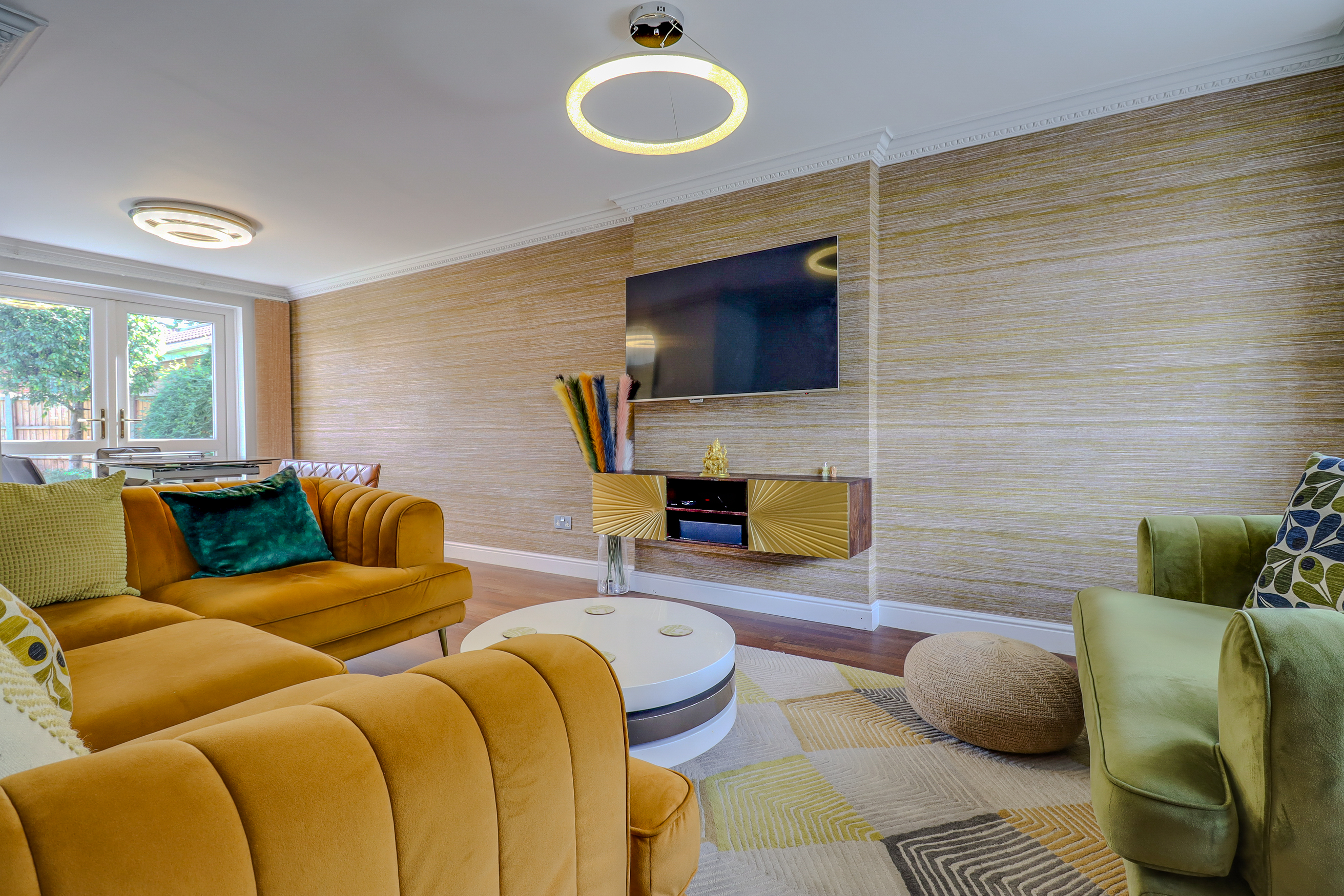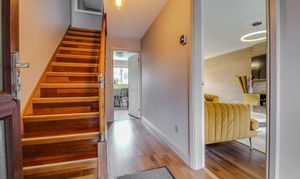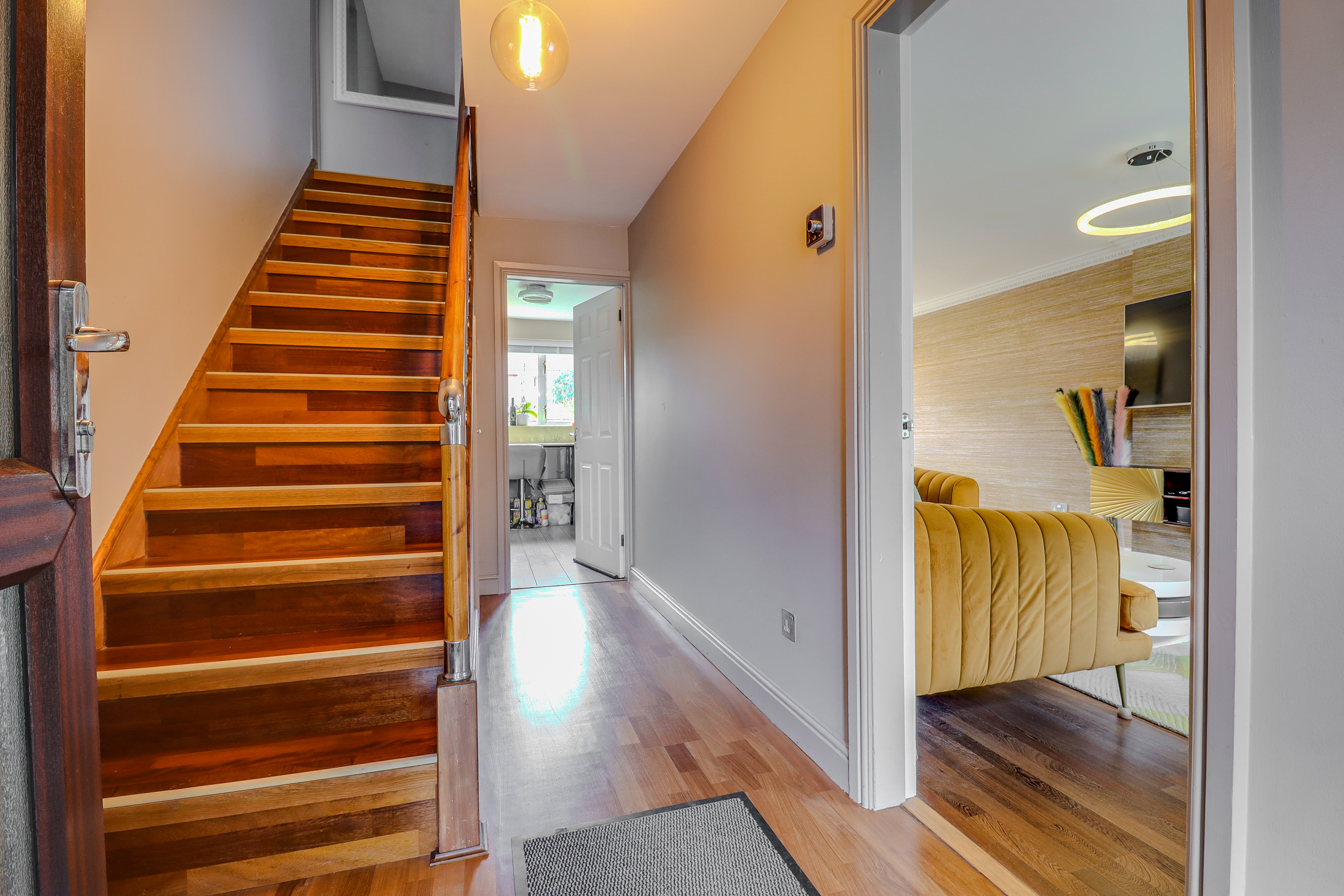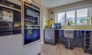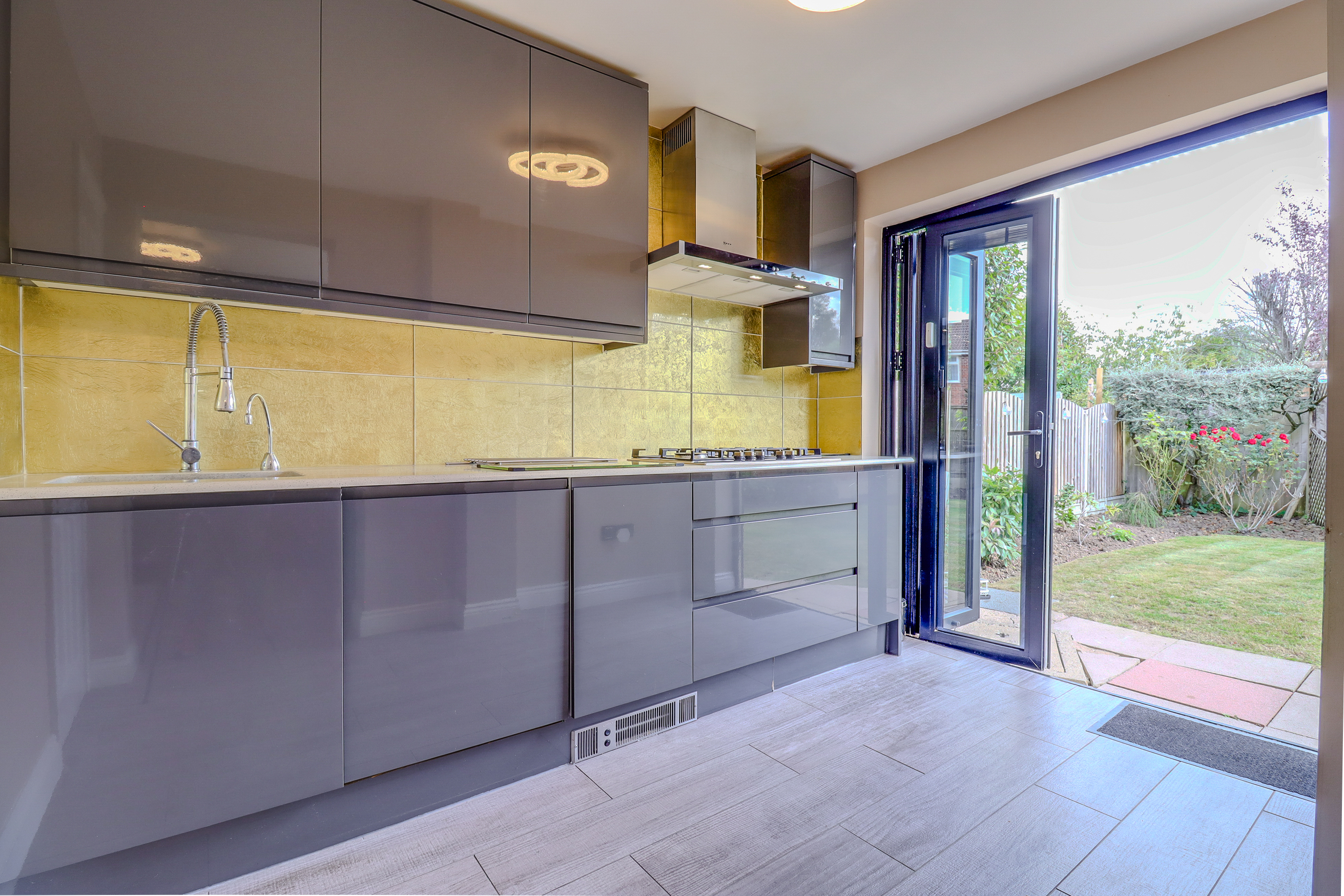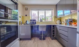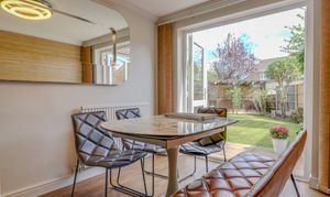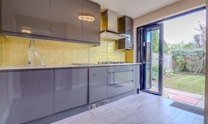 The internal accommodation comprises in brief; a porch leading into a welcoming entrance hall with a solid wood floor and attractive open tread staircase rising to the first floor with a storage cupboard under. A door leads into the spacious lounge/diner, again with a solid wood floor, window to the front and French doors opening out to the gardens. Accessed from the hallway is the superbly appointed kitchen which has been extended and is fitted with a range of contemporary handleless wall and base units in two colourways with contrasting worksurfaces and a selection of high quality Neff appliances. A set of bi-folding doors with integral blinds open out to the gardens and a further internal door leads to a downstairs WC which features fully tiled walls, low flush WC and wall mounted wash hand basin.