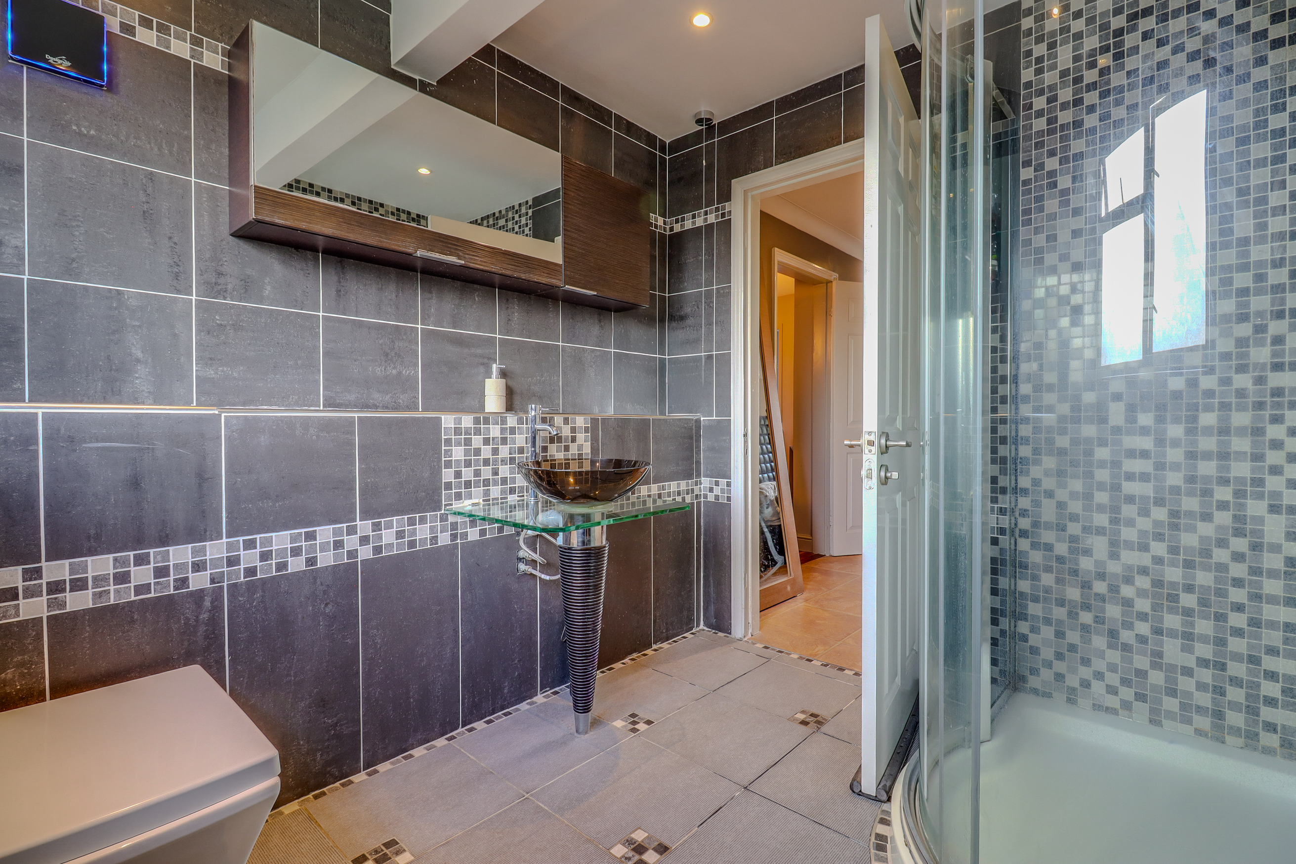 To the first floor there is a landing with doors off to a very generous master bedroom with a modern, fully tiled en-suite shower room off. There are two further double bedrooms, both with fitted wardrobes and there is a fourth, single bedroom which has fitted wardrobes and over bed storage. Completing the accommodation is a wonderful family bathroom which is fully tiled and comprises a ‘p’ shaped bath with shower over, low flush WC with concealed cistern and a wash hand basin set into a vanity unit.