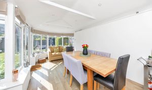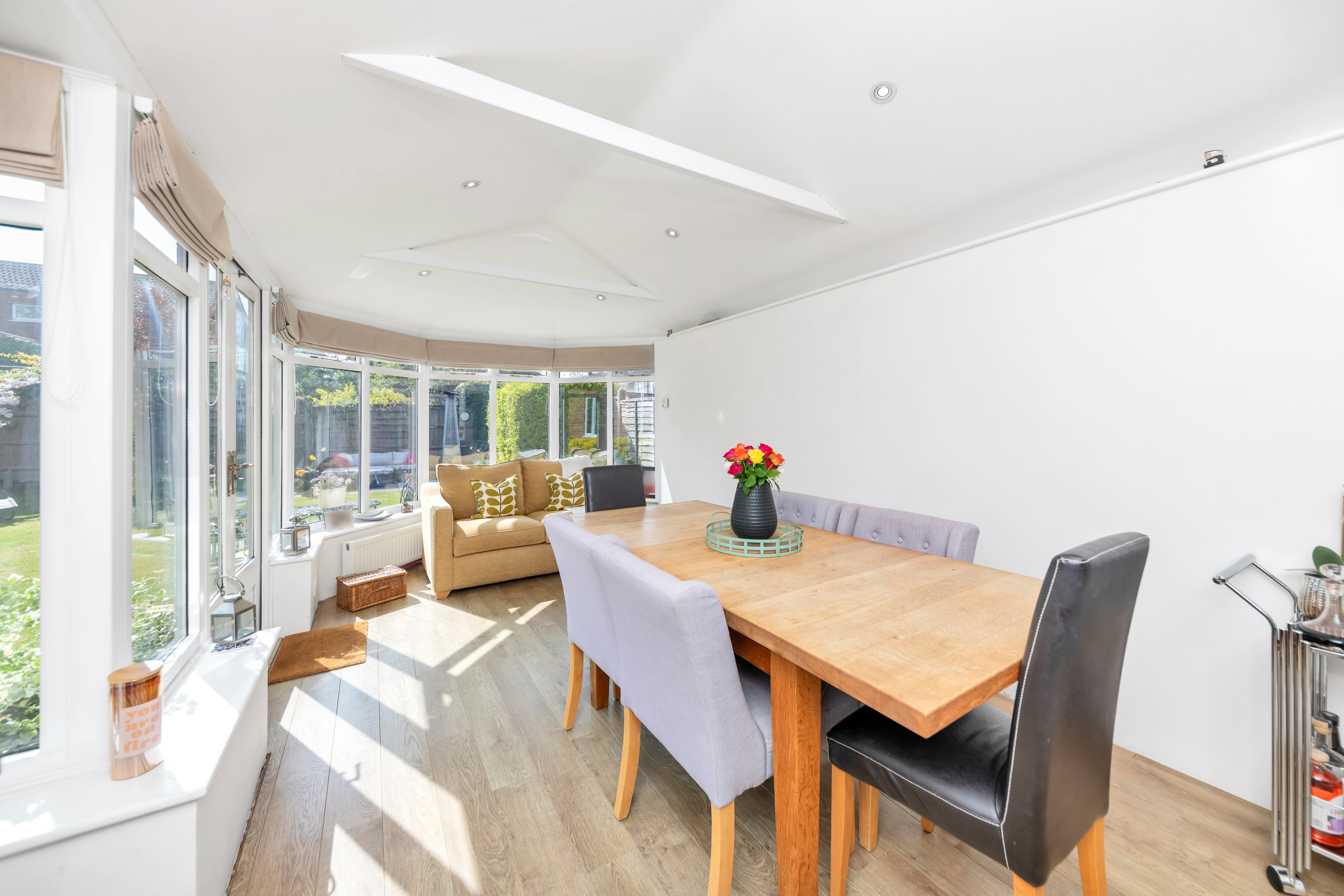 The lounge is incredibly spacious and bright, benefiting from neutral decor, attractive wood flooring, pendant lighting, windows to a dual aspect, and ample space for a wide variety of lounge and storage furniture. The dining space is accessed via double internal glass doors which, when opened up, give the rooms a wonderful open-plan feel. The dining room enjoys wood flooring, neutral decor, inset lighting, a vaulted ceiling, room for furniture and direct access into the beautiful conservatory, with its glorious garden outlook, which acts perfectly as an additional reception room.
