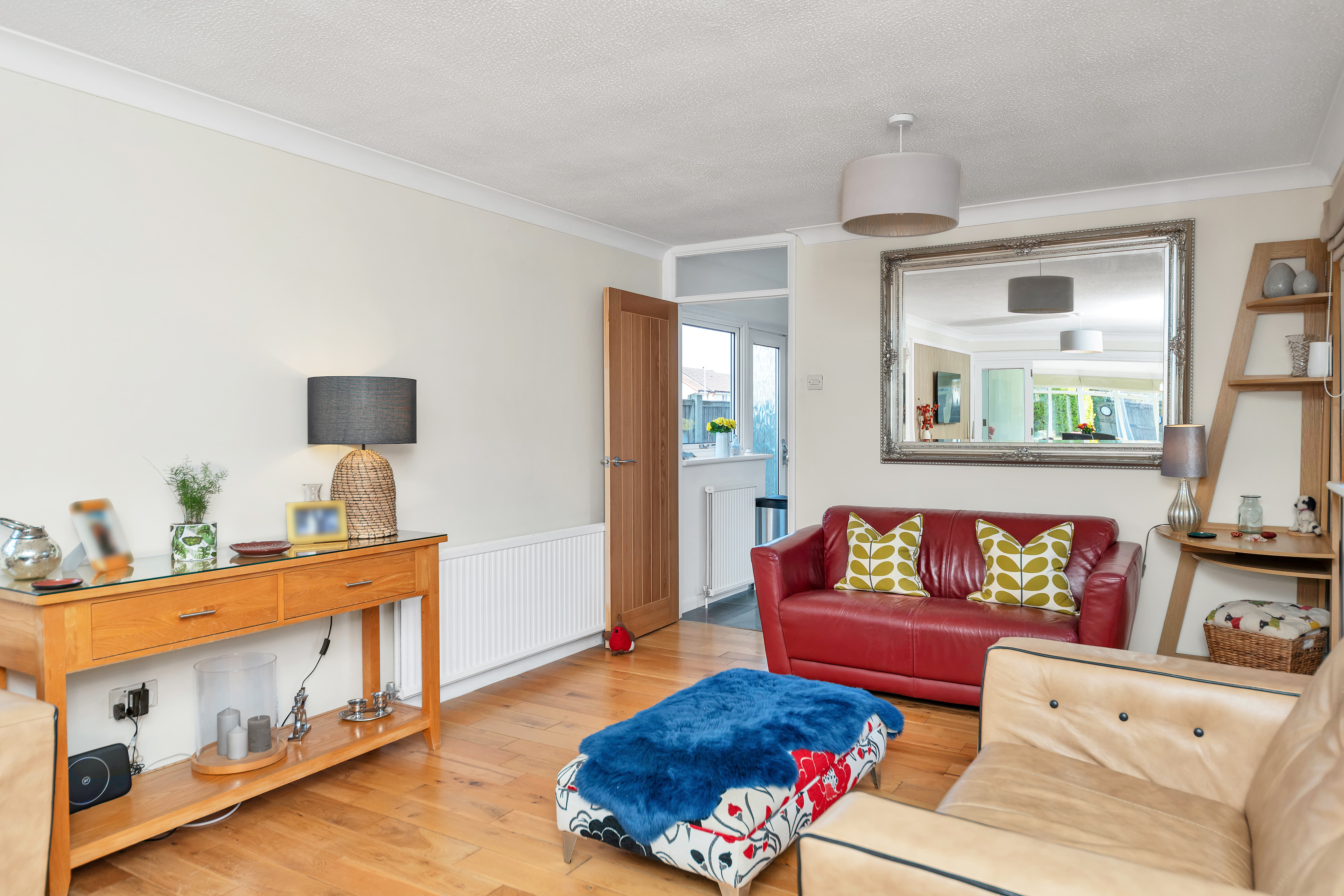 This superbly presented bungalow enjoys a pleasant and well-maintained frontage, a front lawn garden with shrubs, plenty of space for potted plants, and side access to the rear. Upon stepping inside, you’re welcomed by a bright and neutrally decorated entrance hallway, alluding to the high standard seen throughout. The hallway benefits from gloss tiled flooring, pendant lighting, space for coats and shoes, integrated storage, and doors through to the entire living space.
