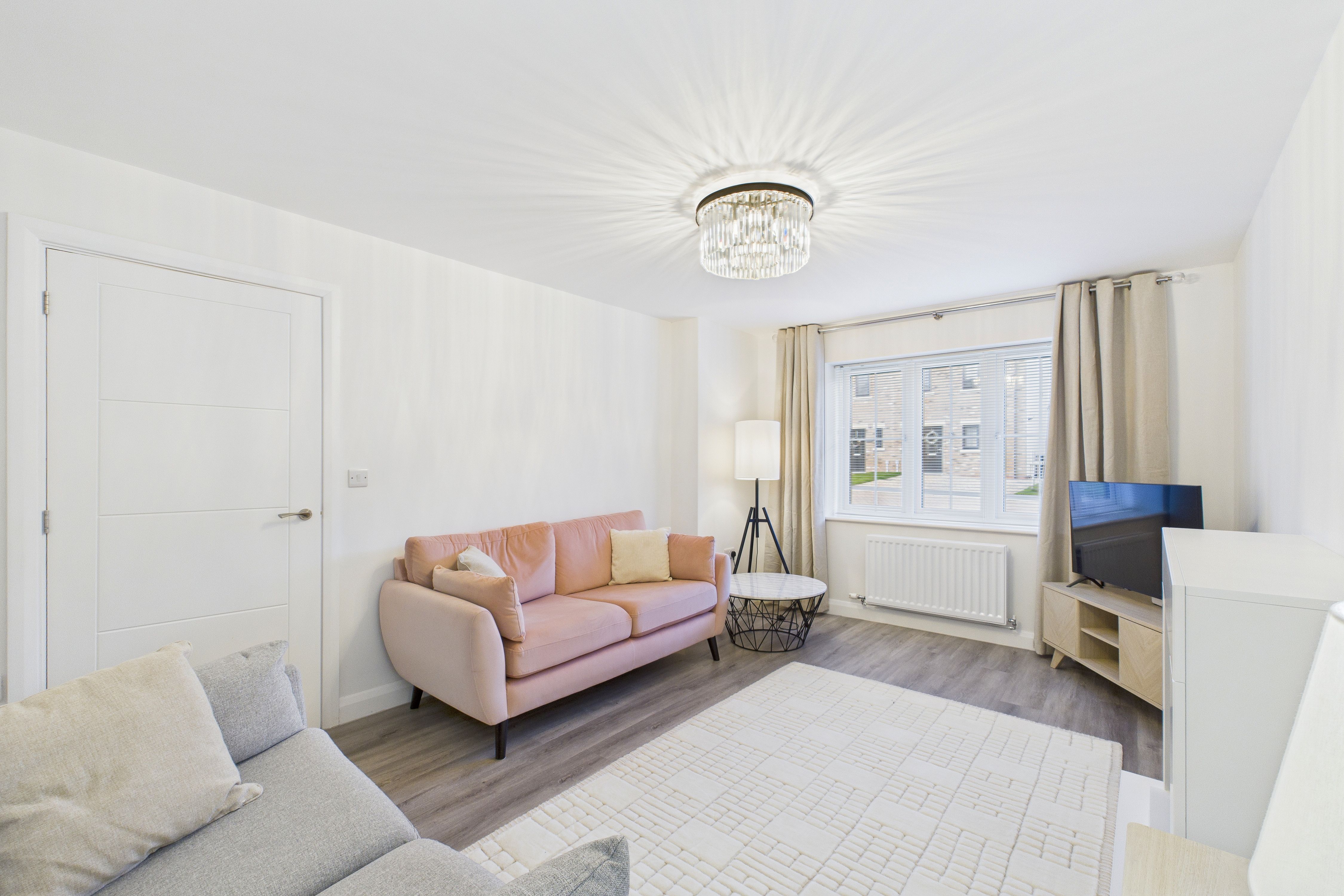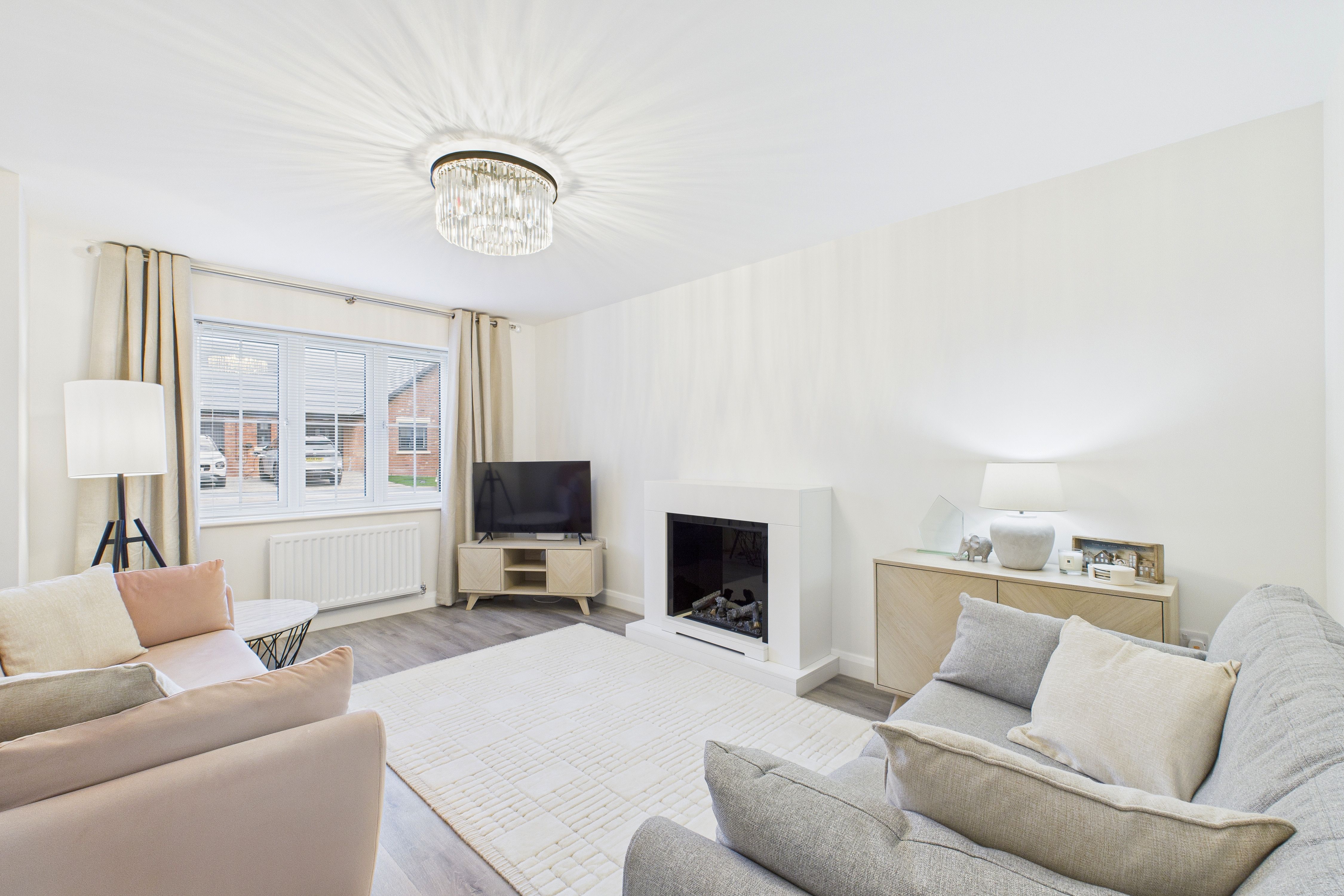 - Beautiful and spacious lounge, with wood effect flooring and modern fireplace