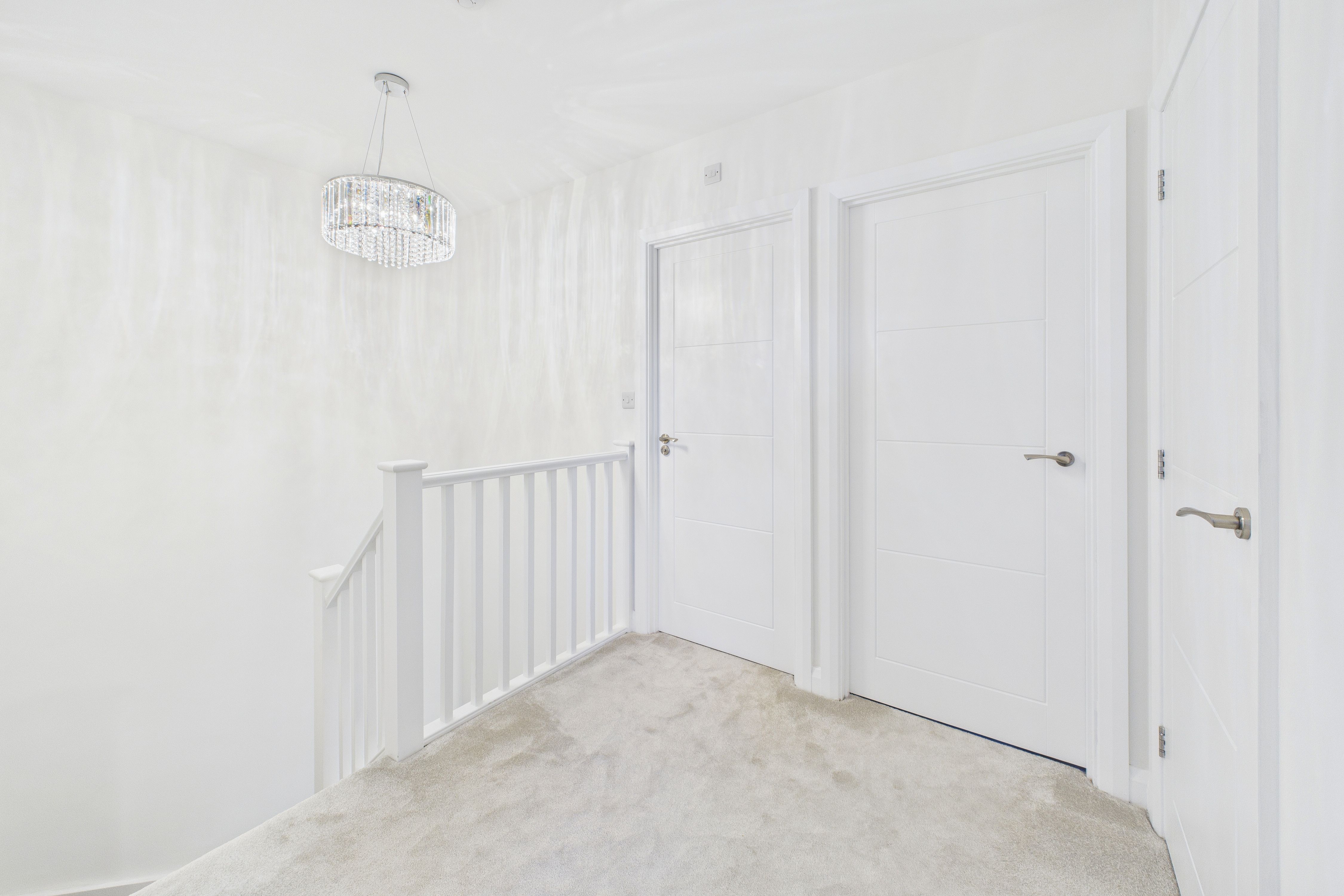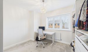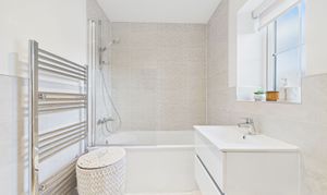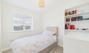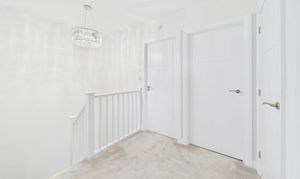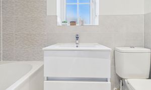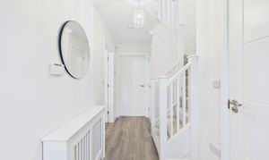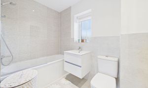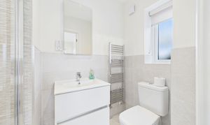 Upstairs, the landing leads to three generously sized double bedrooms, each presented with impeccable attention to detail. The master suite boasts a stylish ensuite shower room, while the modern family bathroom features a wall-mounted vanity sink, providing a touch of luxury for busy mornings or relaxing evenings.