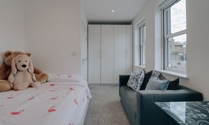 - Principal suite with bespoke wardrobes and spacious en-suite bathroom.
