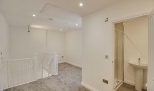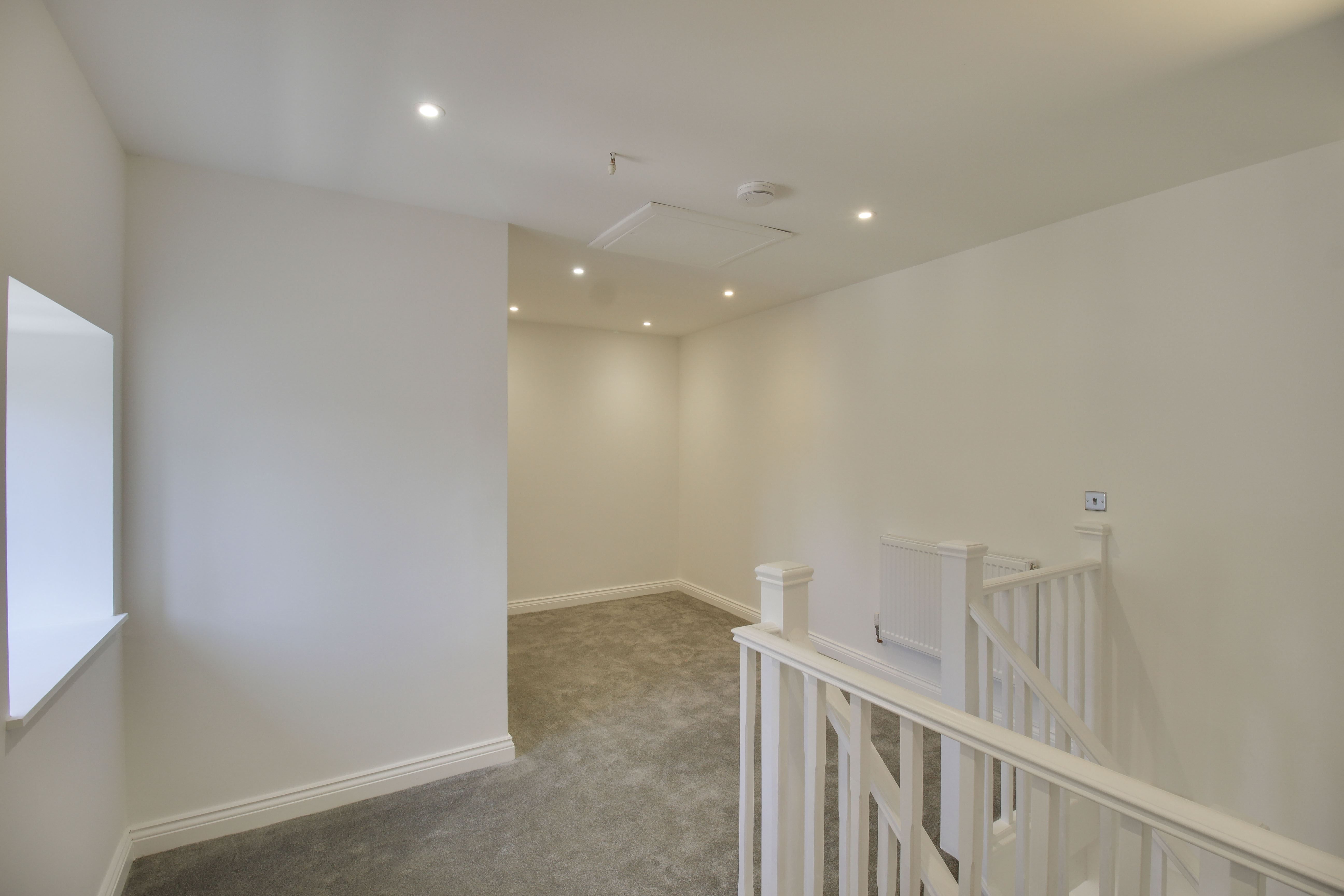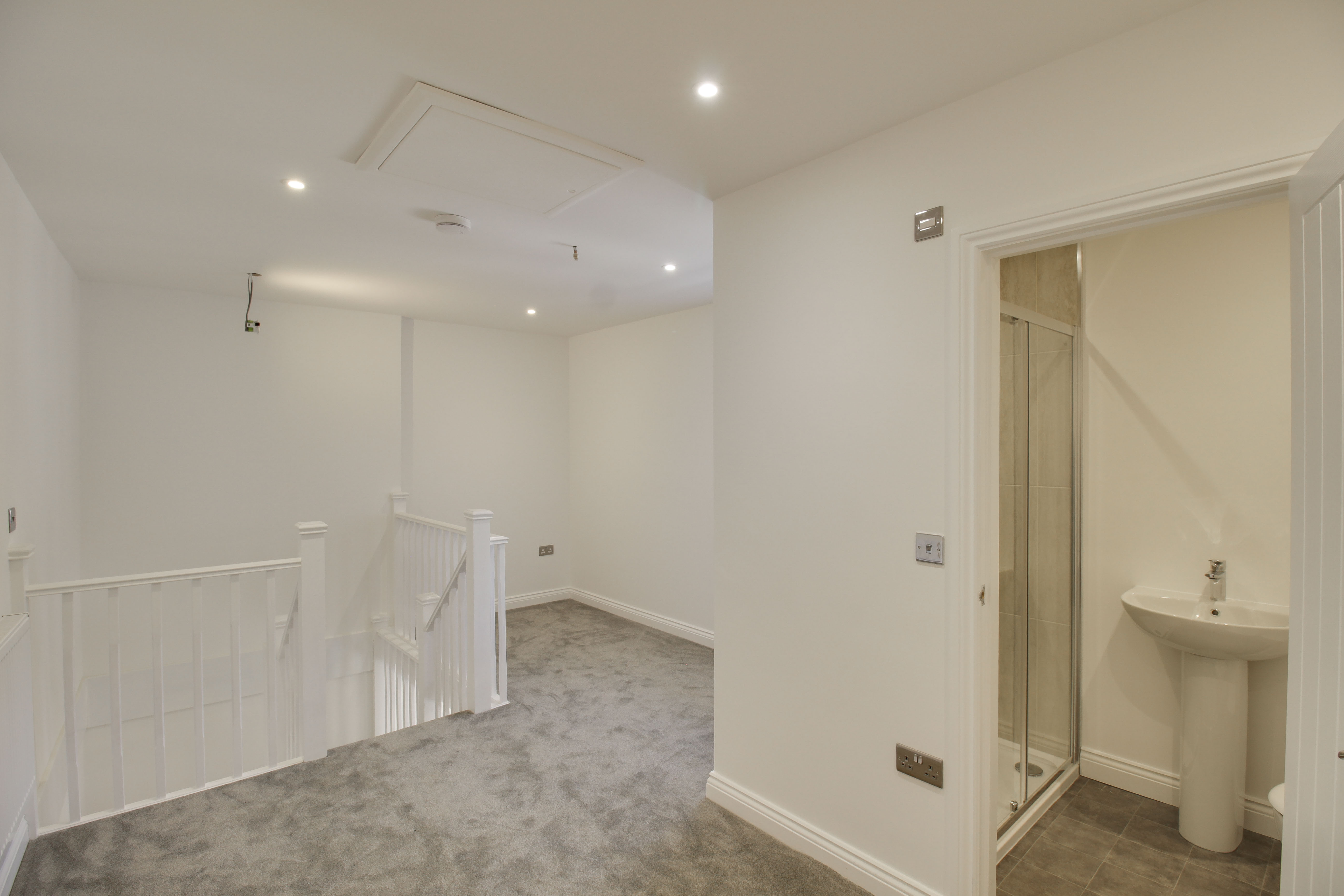 Window to front. Radiator. Inset ceiling lights. Galleried staircase with area ideal for study/office. Door to shower room.