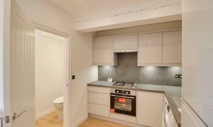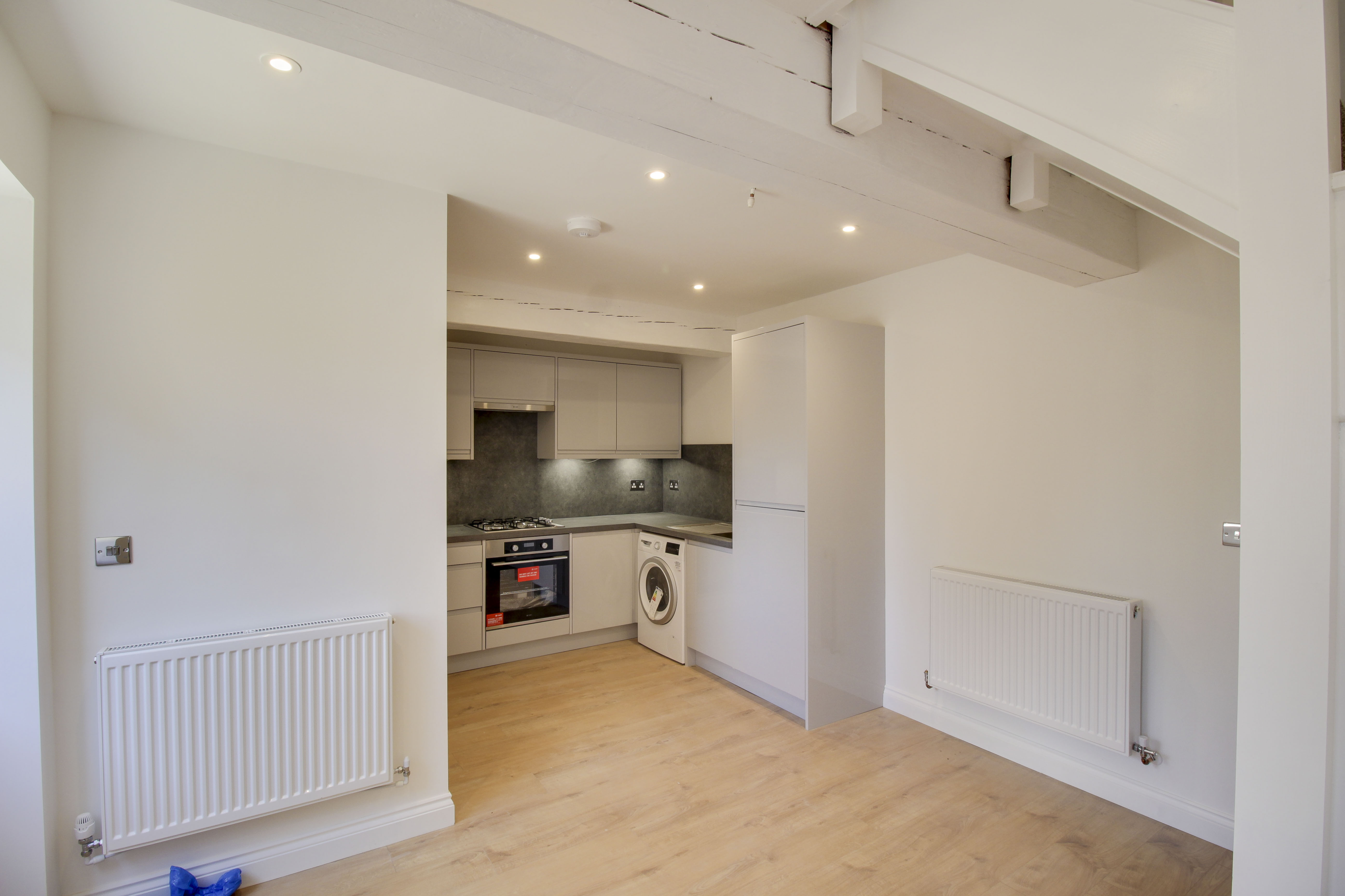 The accommodation is finished to a high standard throughout, featuring a modern open-plan living area, fitted kitchen with integrated appliances, gas radiator heating, and a spacious double bedroom. Externally, the property benefits from a personal enclosed garden, offering a private outdoor space in this sought-after town centre location.
