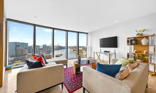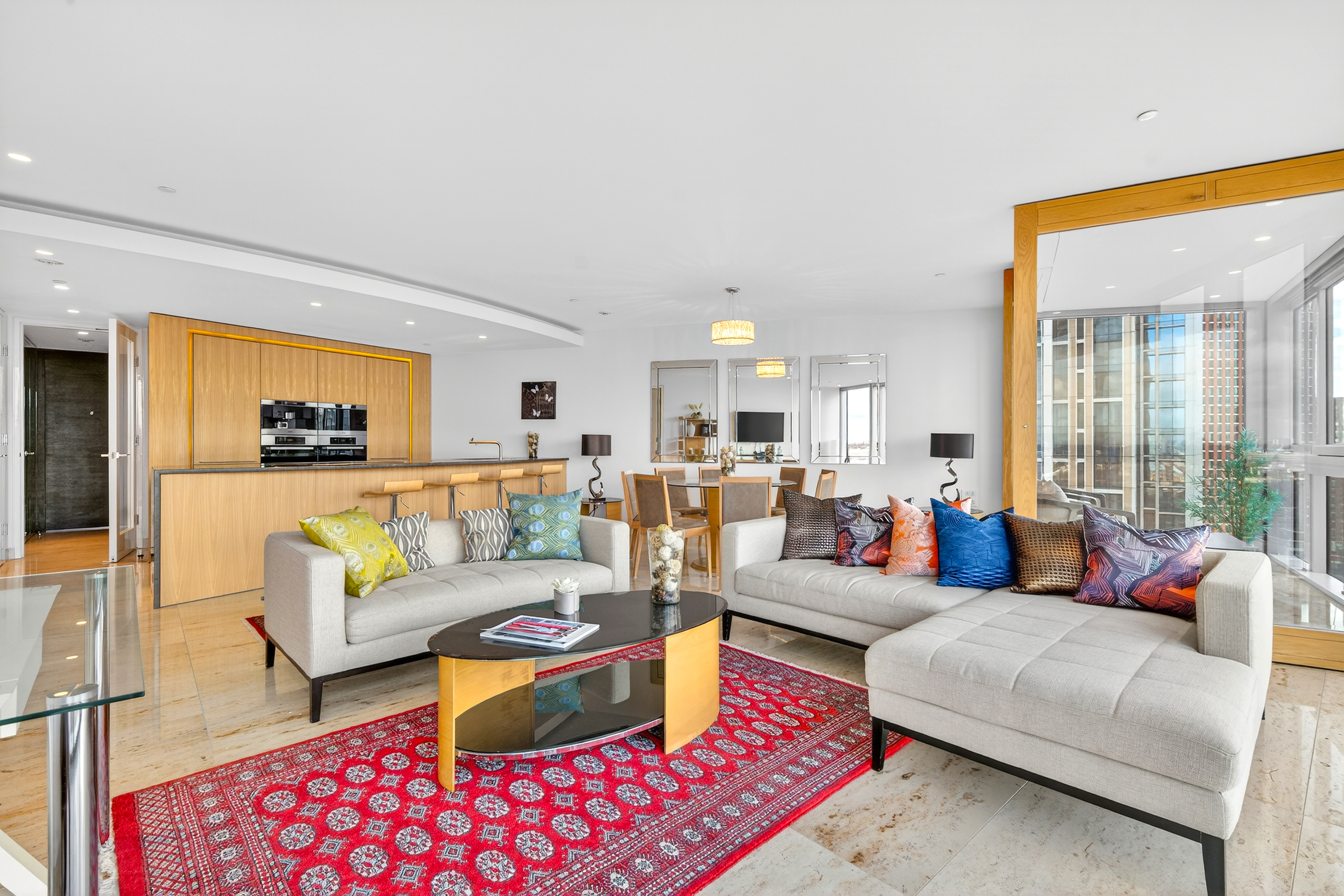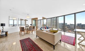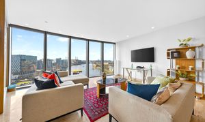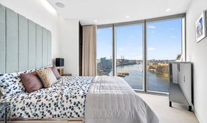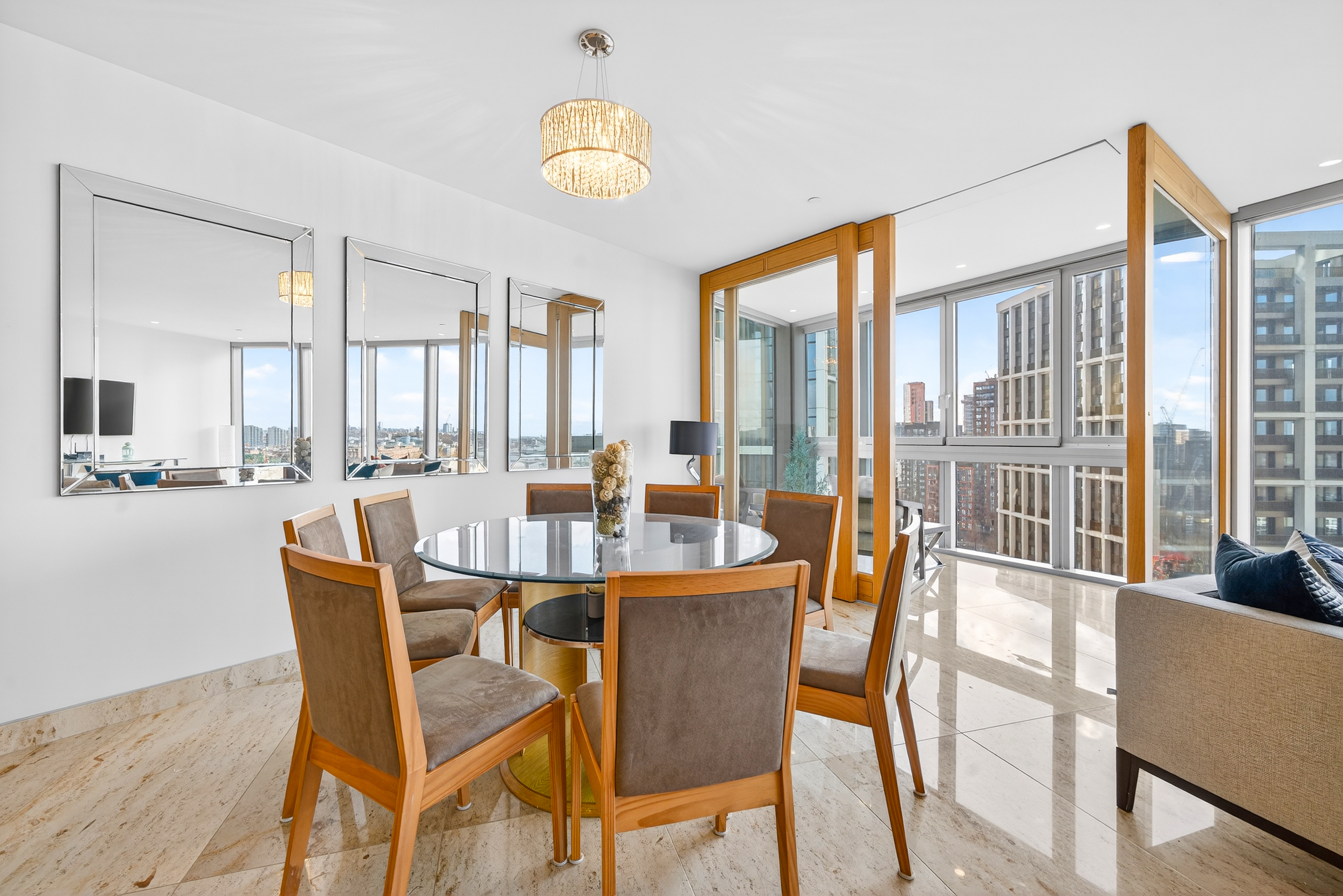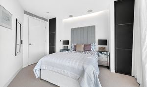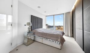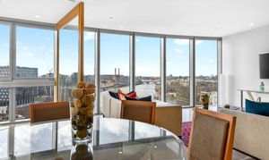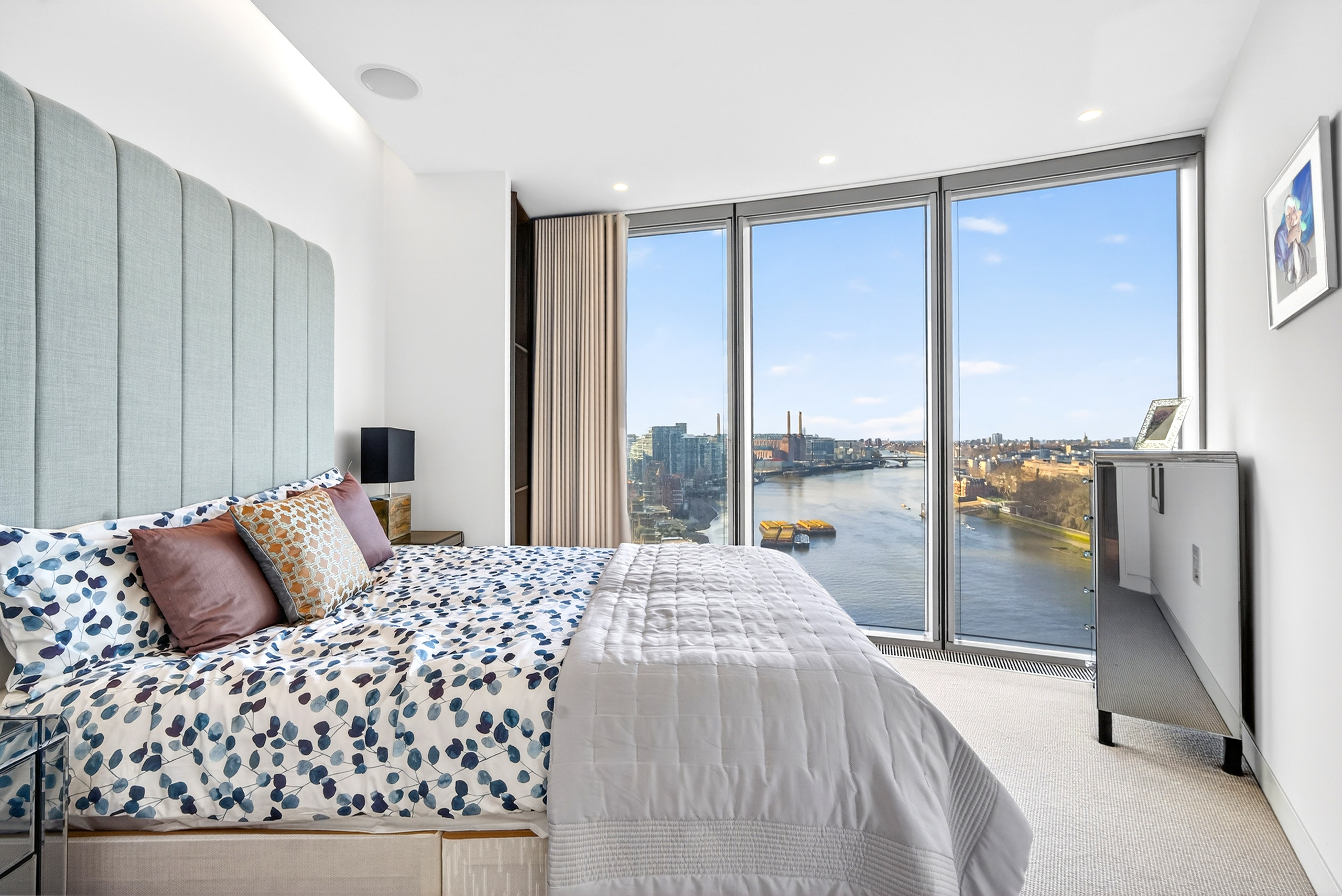 This immaculate 14th floor apartment sits in a prime position of the building offering stunning river and Battersea Power Station views. The open plan living/ dining/ kitchen area has floor to ceiling windows allowing for an abundance of natural light. The state of the art kitchen is fully fitted with Miele appliances, a coffee machine and wine fridge. Off the living area is a winter garden and the property has 2 large double bedrooms and 2 bathrooms.