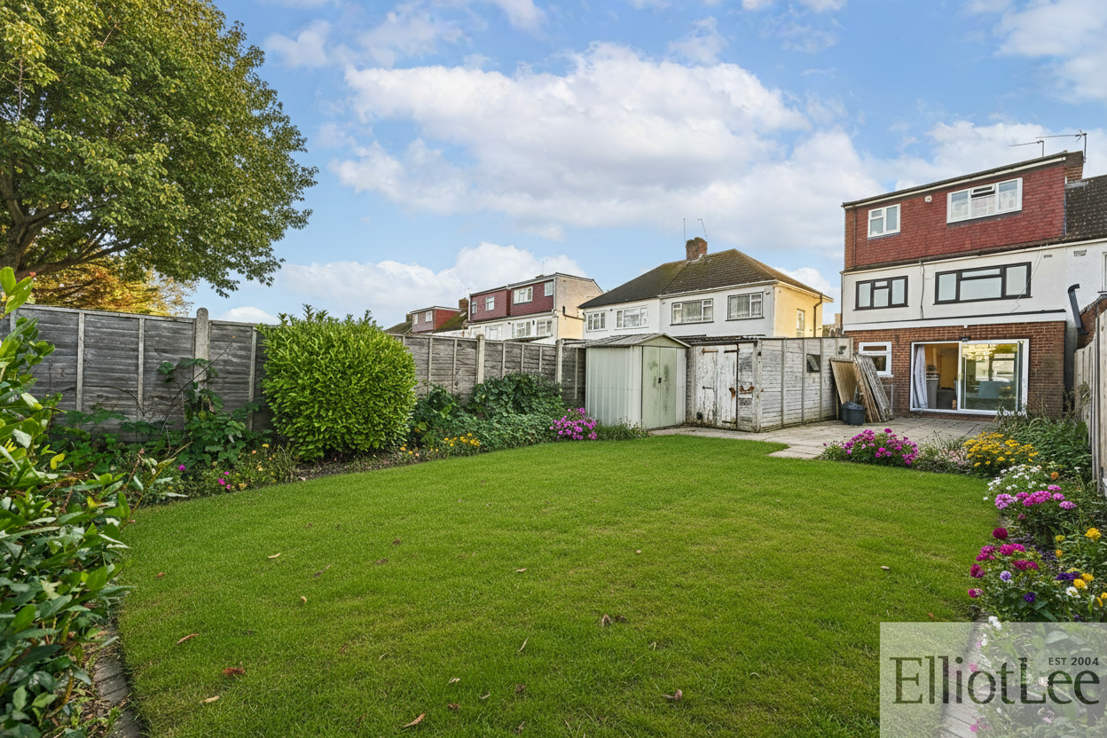 A major highlight of this home is the expansive garden, accessible through large sliding doors from the open-plan living area. The garden provides a generous outdoor space with great potential for landscaping and personalisation, complete with an outdoor storage shed for gardening tools or seasonal items. This outdoor area is ideal for families who value space for play, entertaining, or relaxing in a private setting. Additional benefits include integrated kitchen appliances such as a washing machine, stylish lighting fixtures, and contemporary radiators throughout. With its blend of elegant design, modern amenities, and flexible living spaces, this property is an exceptional opportunity for buyers seeking a stylish and functional family home with excellent indoor and outdoor features.