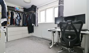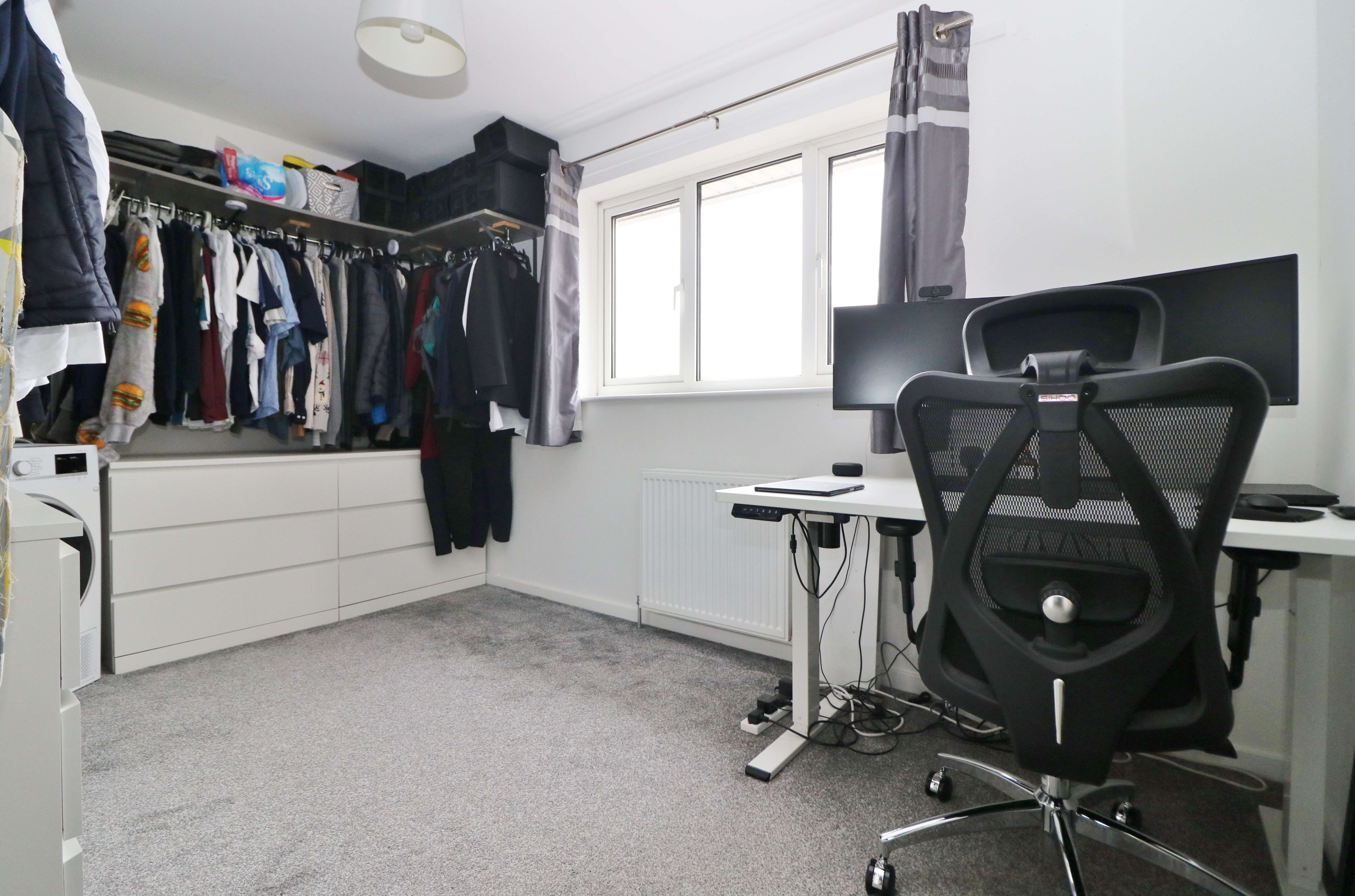 The spacious master bedroom has a window to the front enjoying views across the green, whilst the second bedroom is also a well-proportioned double room with a built-in cupboard and overlooks the rear garden.