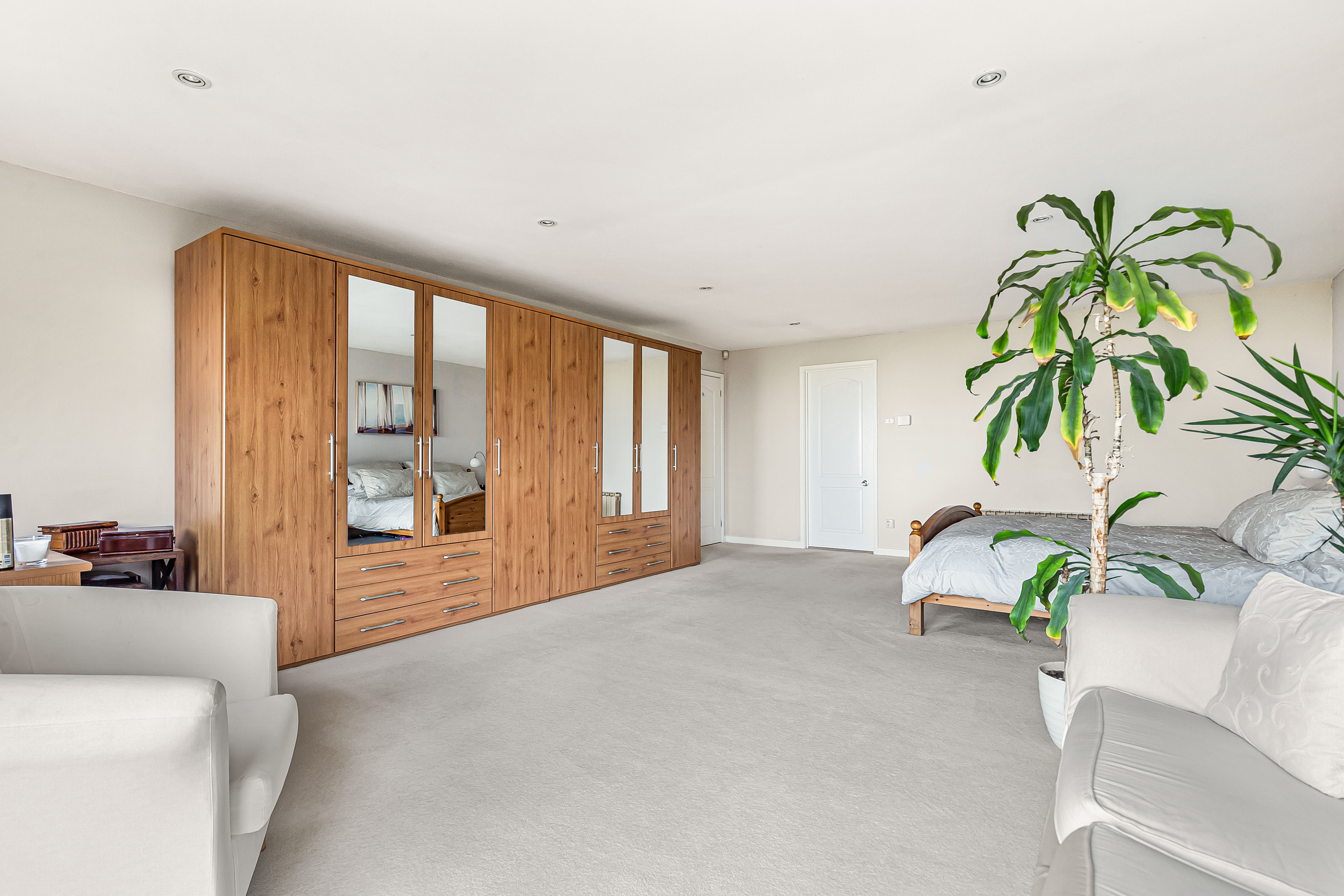 An impressively spacious principal bedroom with sliding doors to the balcony with far reaching views over open countryside to the rear. Easterly facing, the bedroom enjoys the warmth of the morning sun.