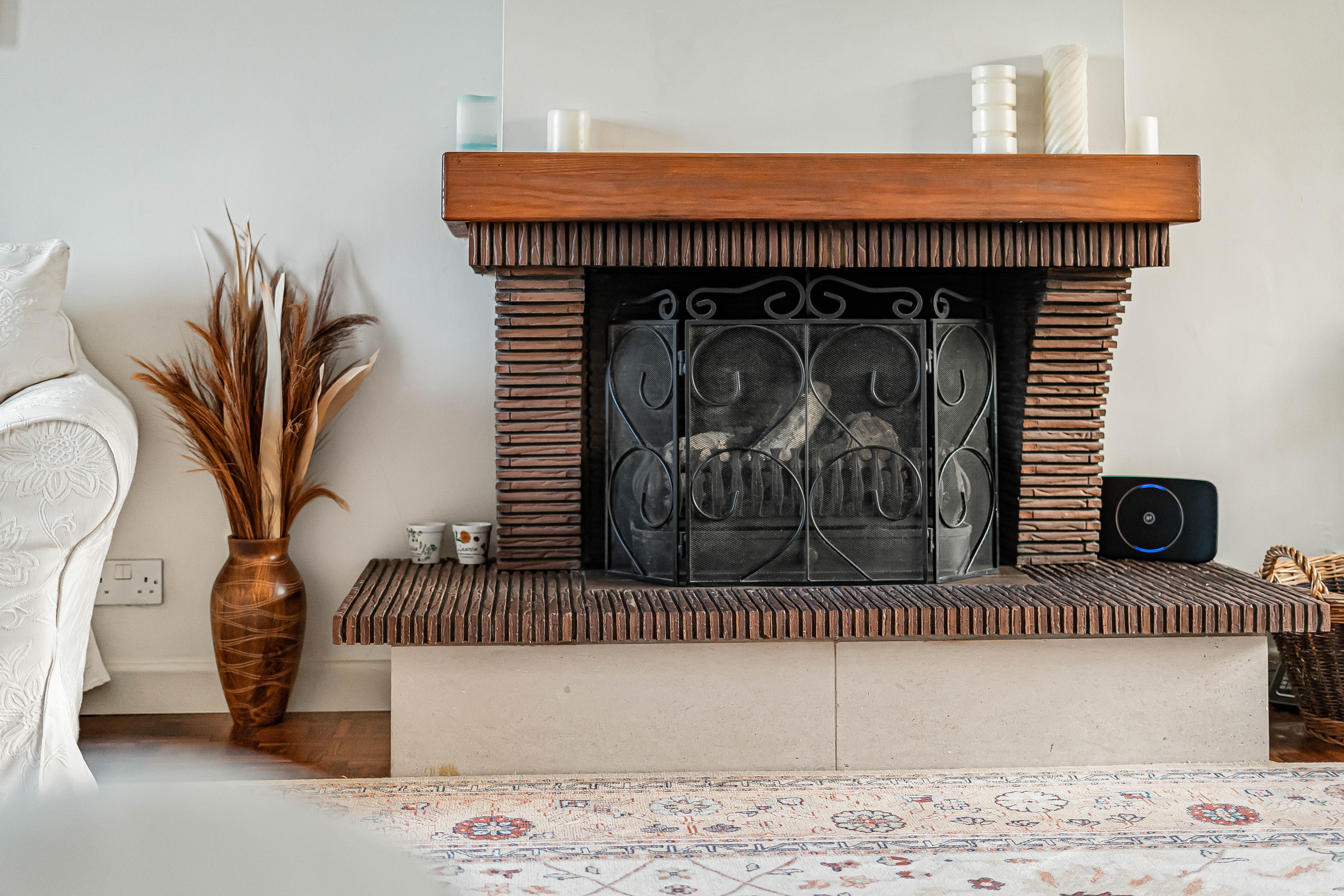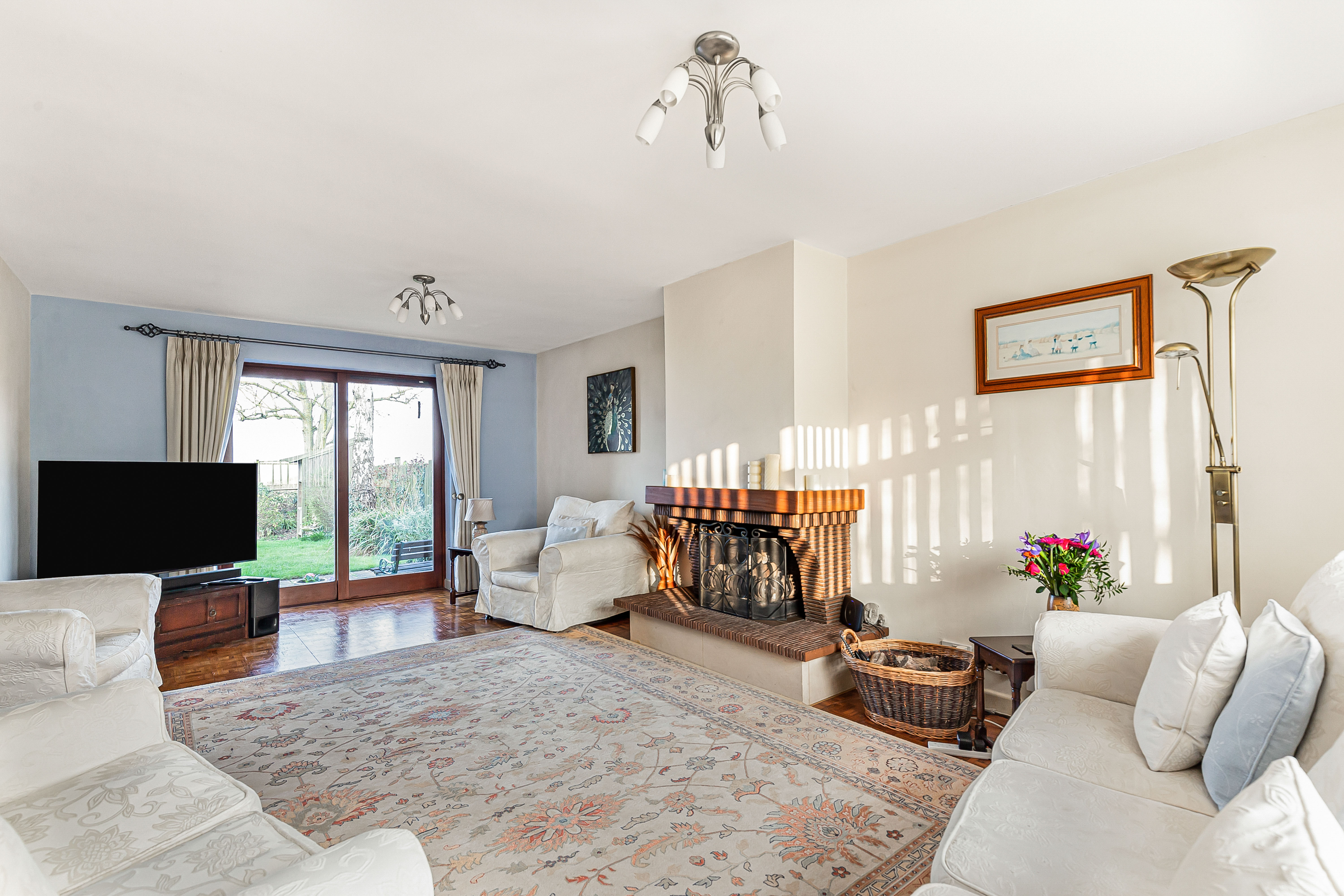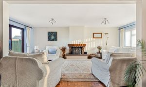 The dual aspect living room has a large window to the front and sliding doors to the rear. An open fireplace provides a focal point to the room with a bespoke bricked and tiled hearth and surround.