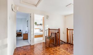 Serving the first floor with a large window to the front, loft access and hardwood parquet flooring.