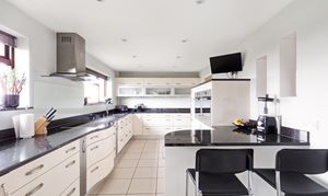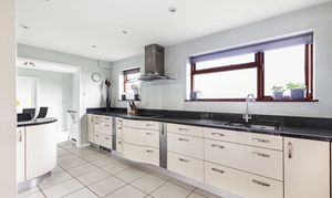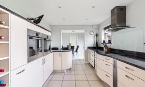 To the rear of the property is a contemporary kitchen, fitted with a stylish range of units, granite worktops and a breakfast area. The kitchen is complemented by the added practicality of a separate utility room and internal access to the double garage.