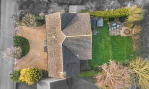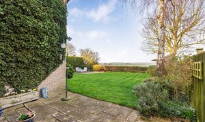 The property benefits from an in-and-out driveway to the front, bordered by a low dwarf wall and mature trees to either side, providing both convenience and privacy. To the rear, the north easterly facing garden enjoys plenty of morning through to daytime sunshine. It features a patio seating area, ideal for outdoor dining or relaxing, as well as a further gravelled seating area towards the rear of the garden. Beyond the garden, the property enjoys lovely panoramic views over open countryside, offering a peaceful and picturesque outlook.
