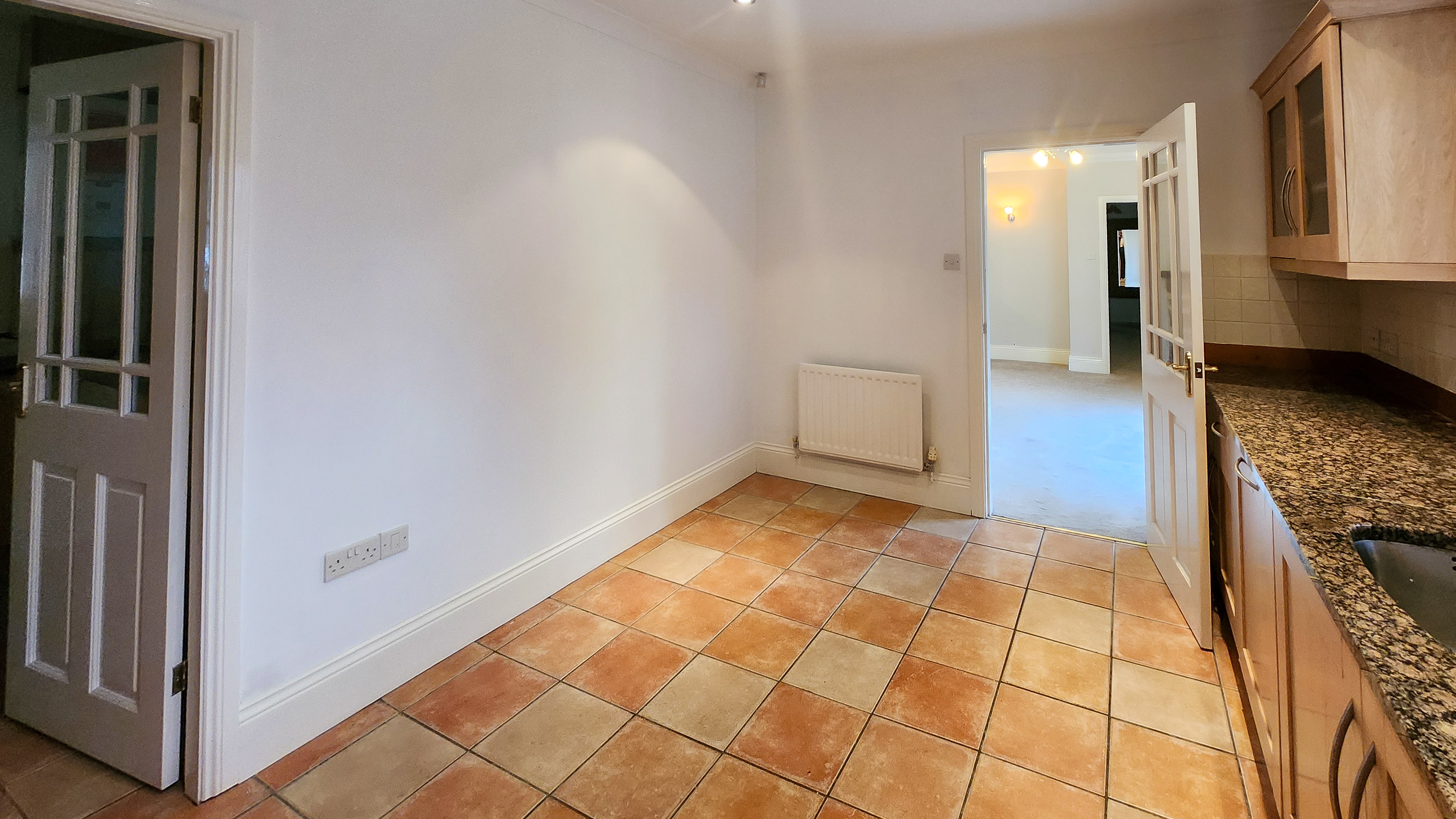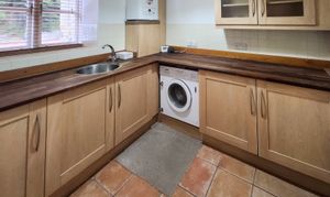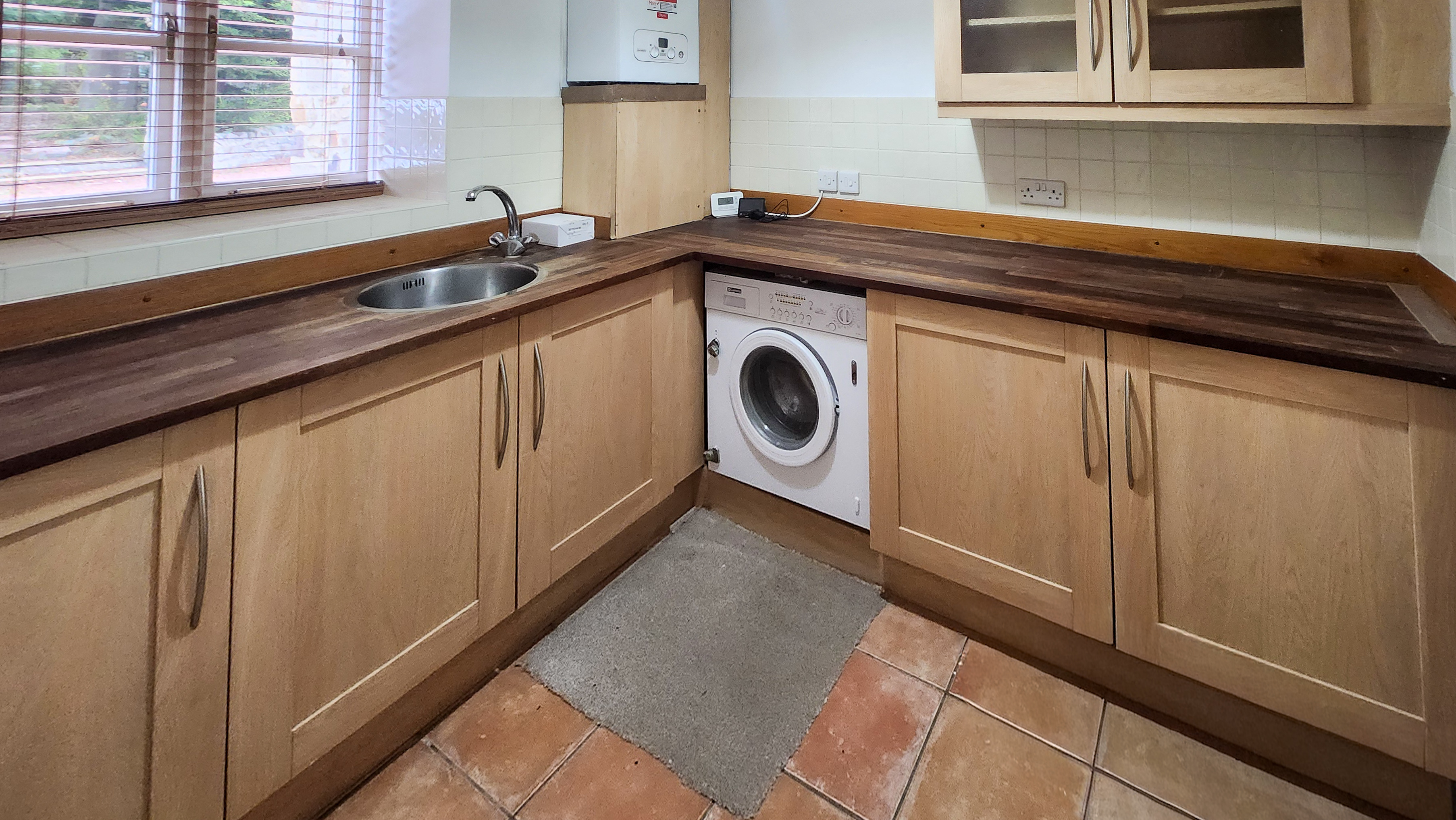 The adjoining utility room provides additional cupboard storage, an integrated washing machine, and houses the EcoCompact boiler — with direct access to the courtyard for convenience.
