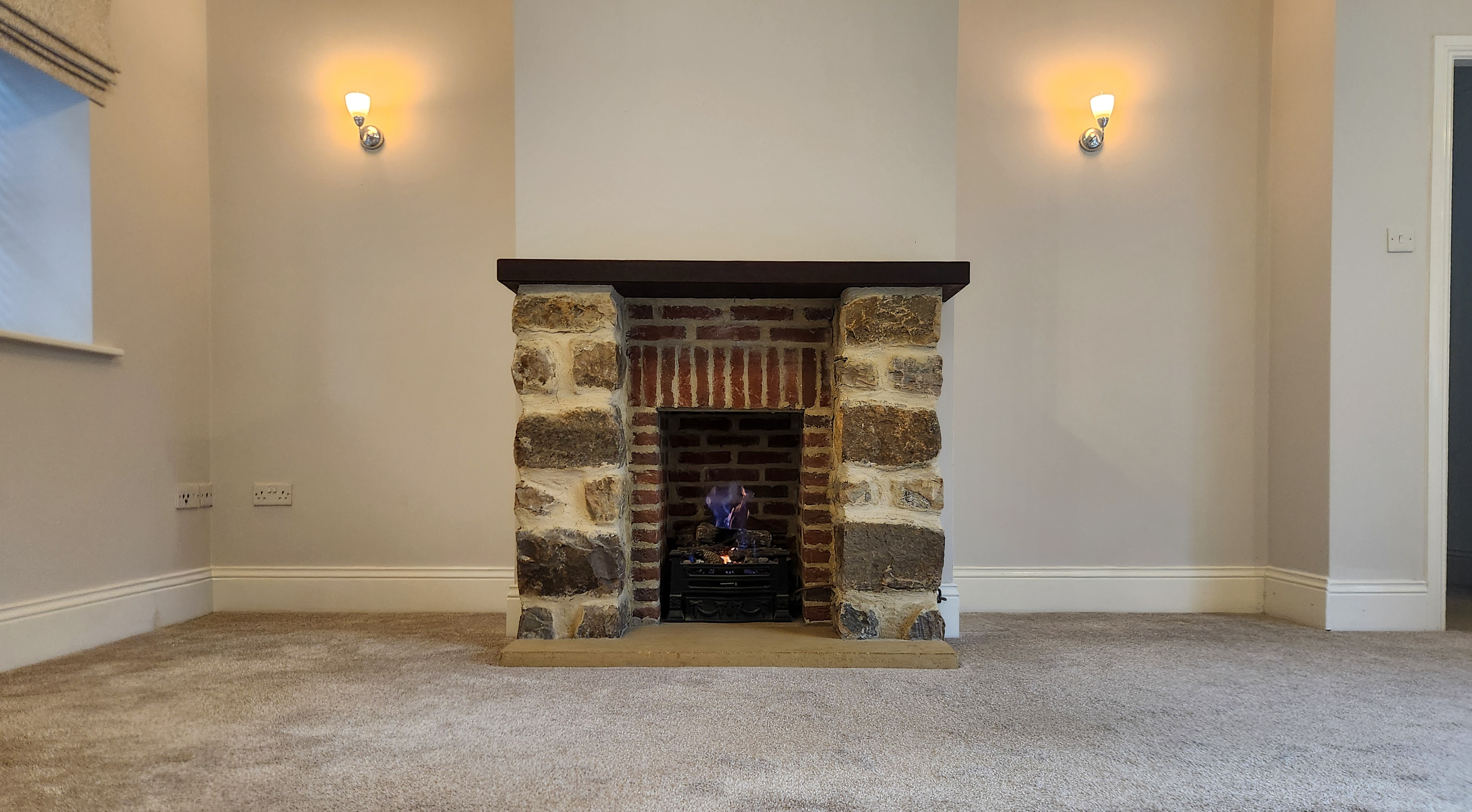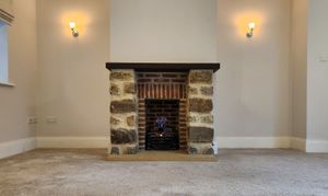 At the heart of the home, the lounge is an inviting and impressive space featuring a stone-built Inglenook fireplace with a solid oak mantel and inset gas fire. A large arched window fills the room with natural light and frames the rear courtyard garden beautifully. Finished in warm neutral tones with soft grey carpeting, this is a room made for both relaxation and entertaining.