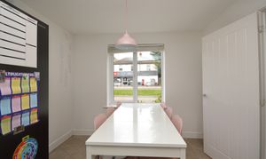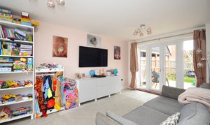 Dual aspect room with UPVC double glazed windows to the front. UPVC double glazed patio doors out to the garden with windows either side of the patio doors. LVT flooring and a radiator.