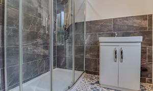 To the first floor there is a landing with doors off to a master bedroom with a bay window to the front and there are two further generously sized bedrooms. Completing the accommodation is a contemporary shower room with a large quadrant shower cubicle, low flush WC and a wash hand basin set into a vanity unit.