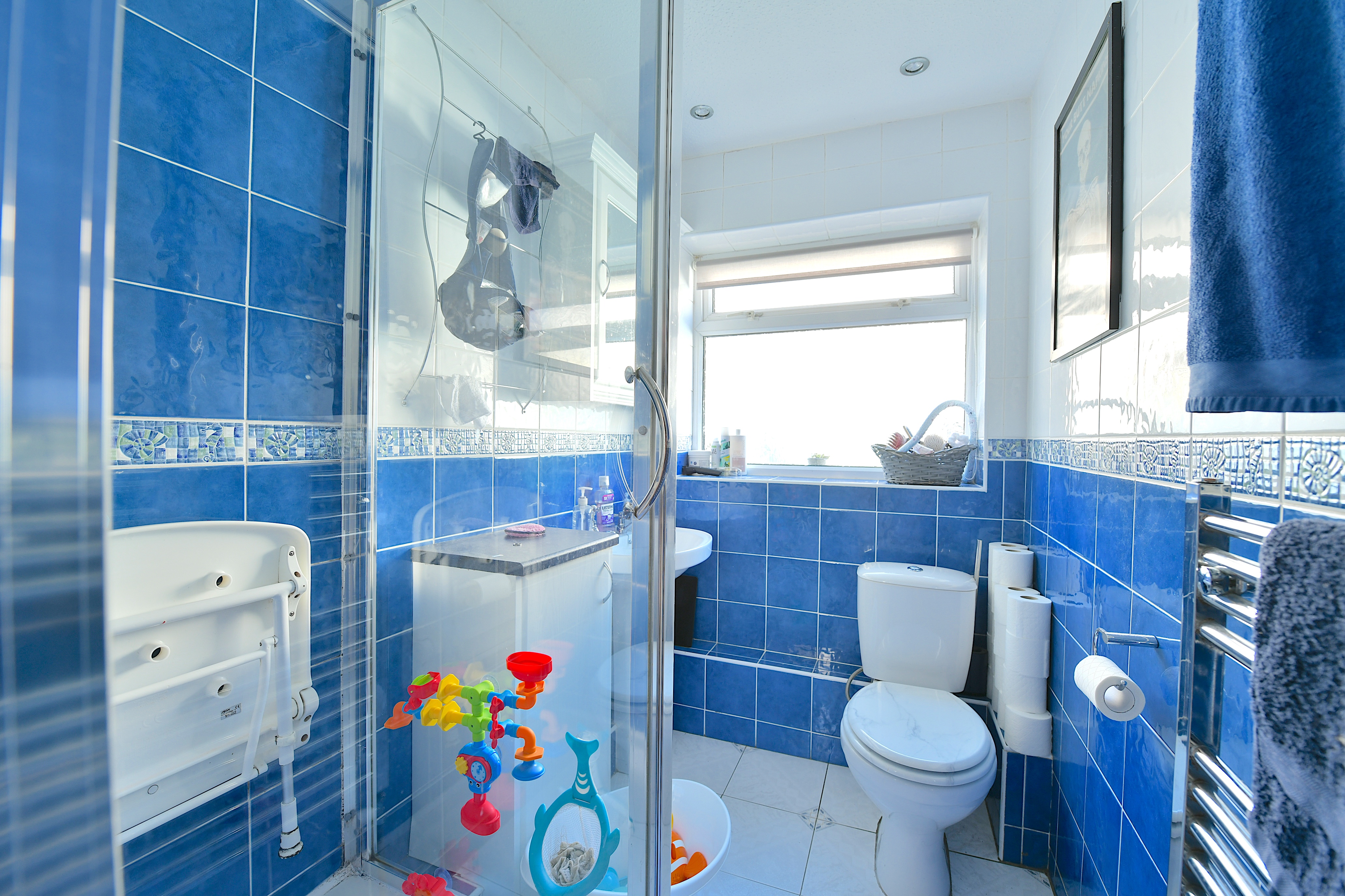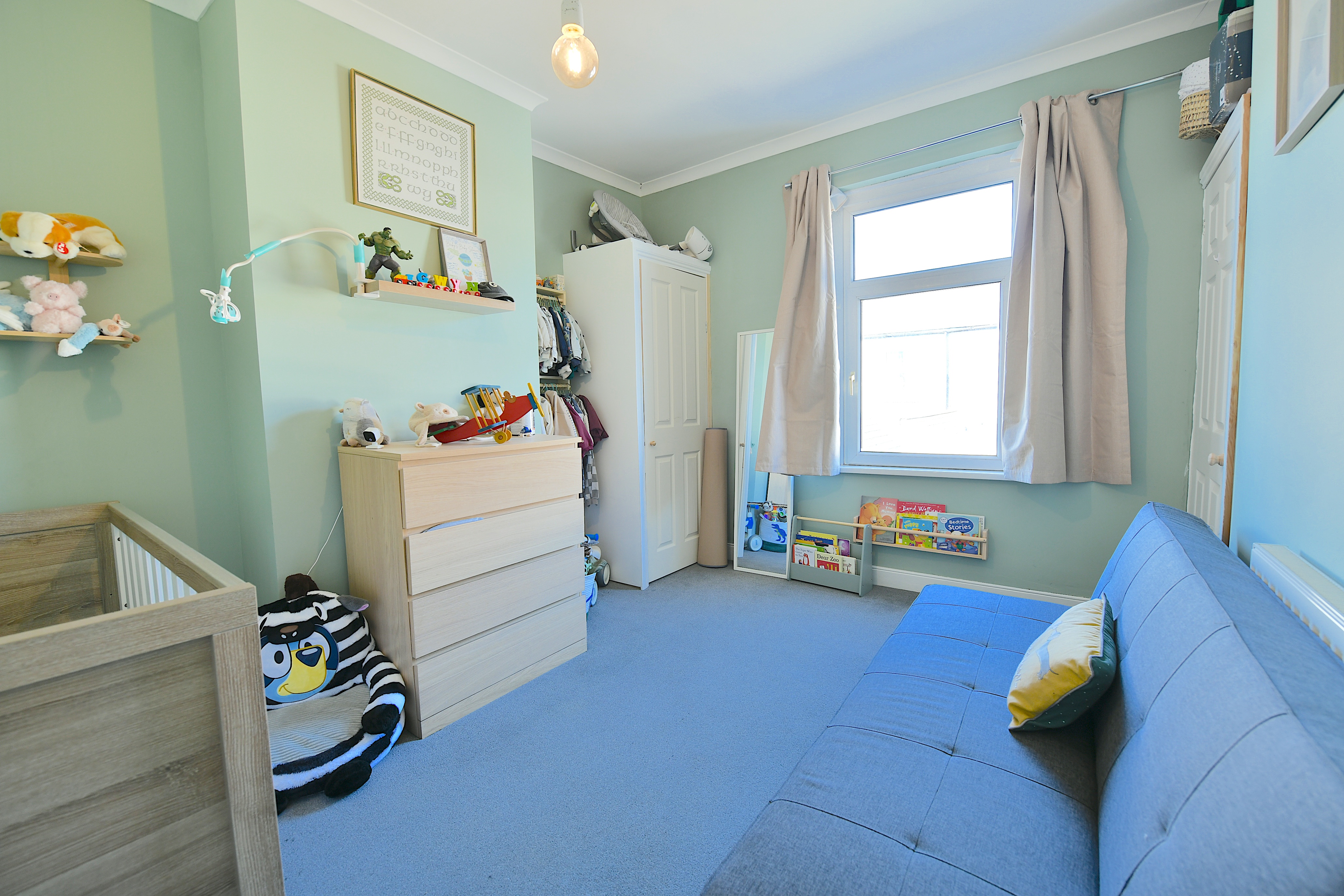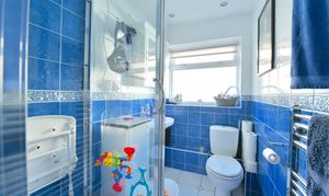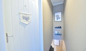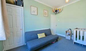 The downstairs bathroom is both stylish and practical, offering contemporary fixtures and fittings. Upstairs, the accommodation comprises a spacious master bedroom with ample room for wardrobes and additional furniture, alongside a generous double bedroom that is ideal for guests, children, or a home office. The property is situated on a quiet residential street, not on a main road, ensuring a peaceful environment while remaining close to essential amenities.