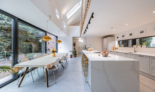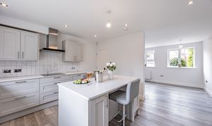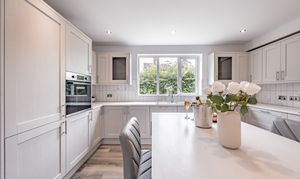 - Stylish shaker-style kitchen/diner - with breakfast island, integrated appliances, and garden views.
