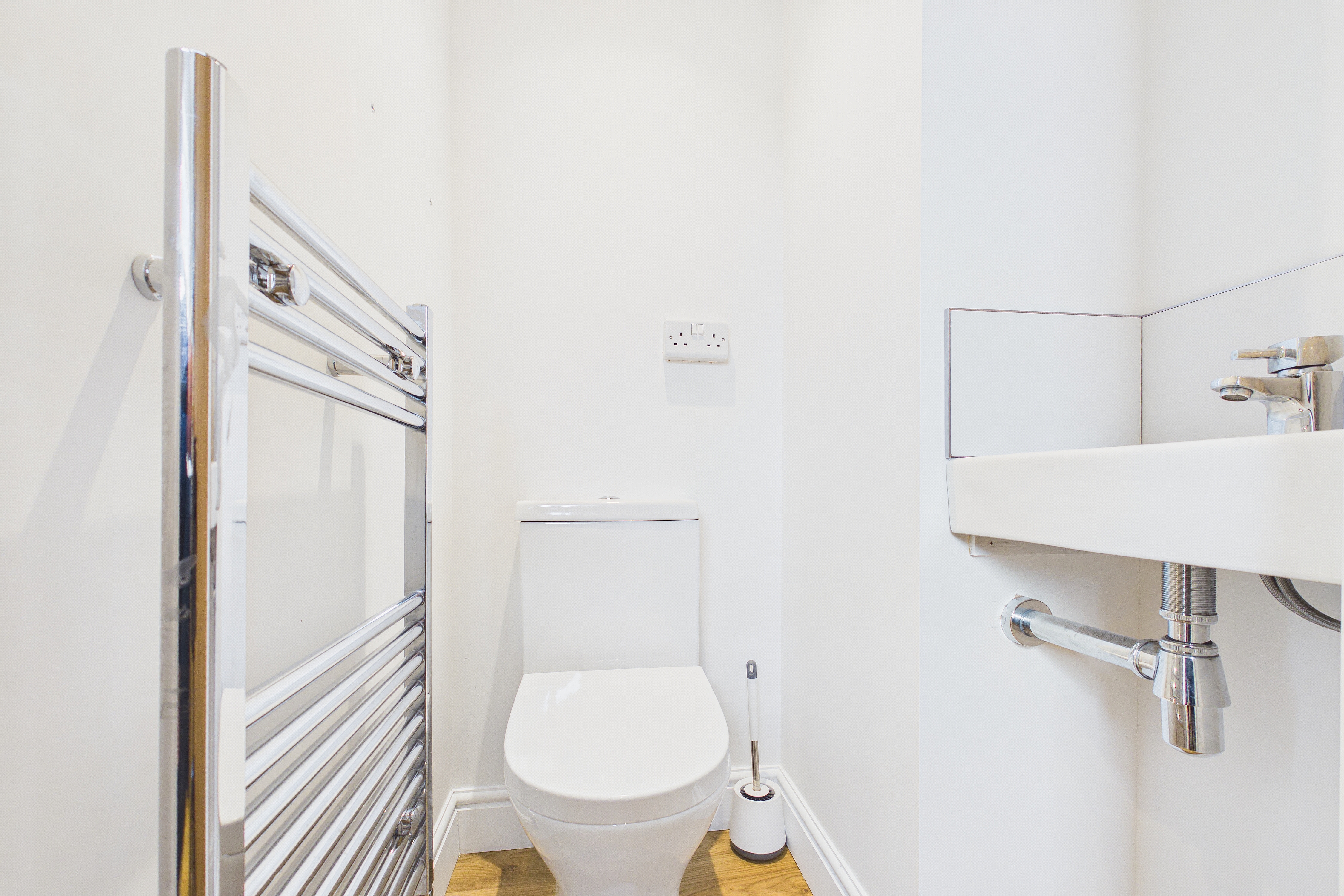 To the first floor, the landing provides access to three well-proportioned bedrooms, all served by a stylish family bathroom featuring both a separate bath and shower enclosure. A separate WC adds further practicality for busy households.