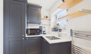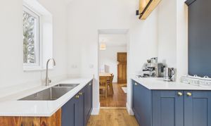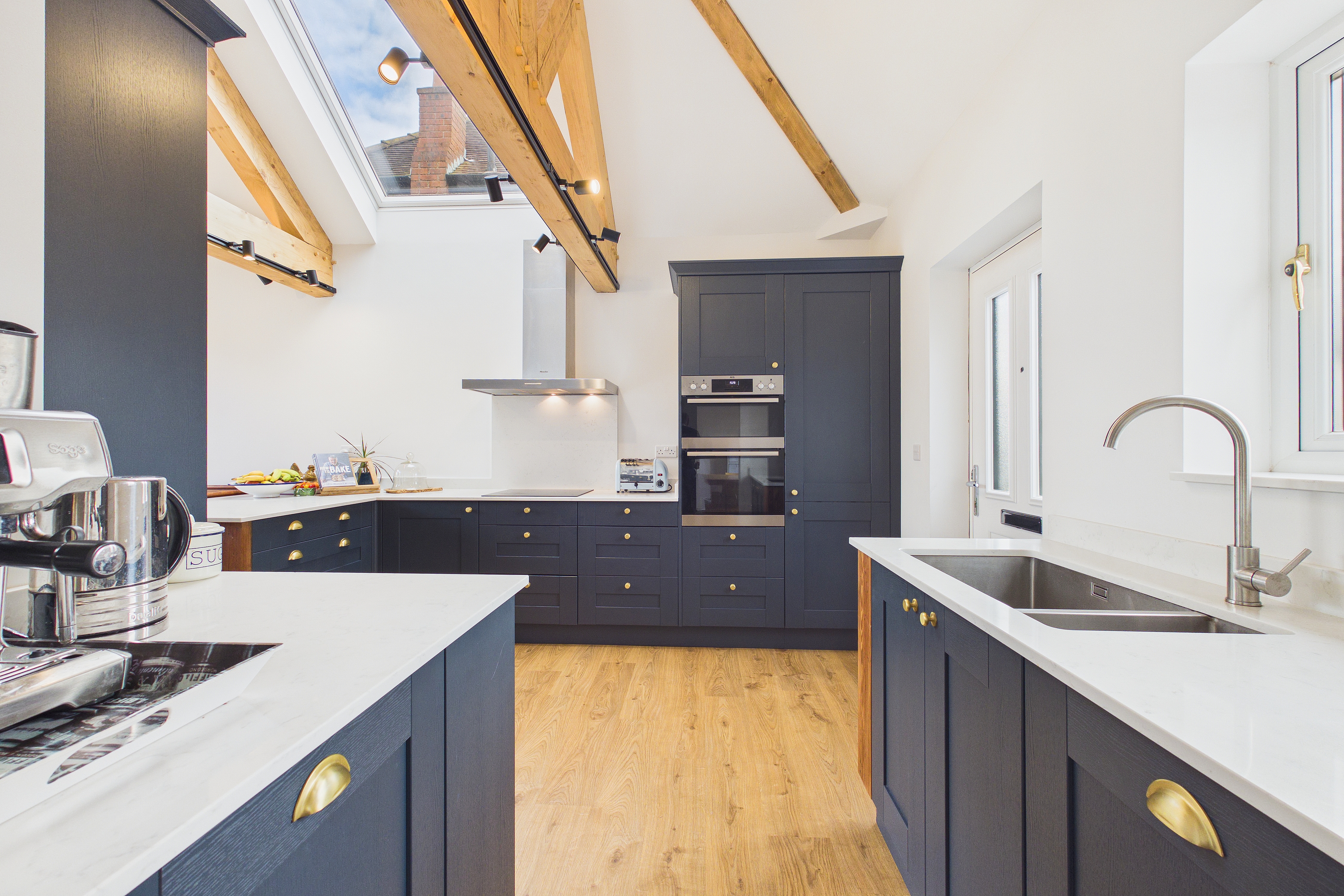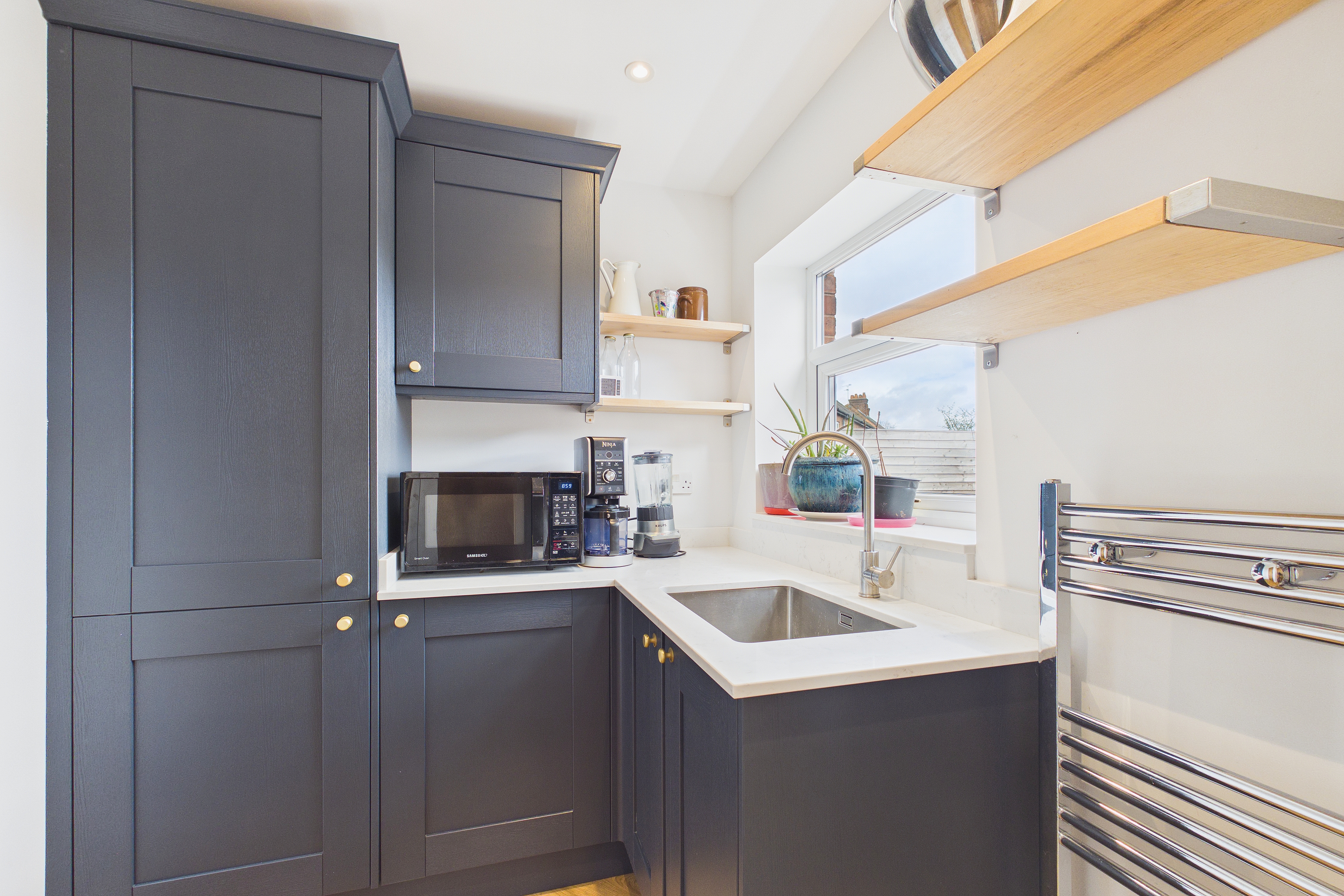 - Stylish shaker kitchen with quartz worktops and integrated appliances