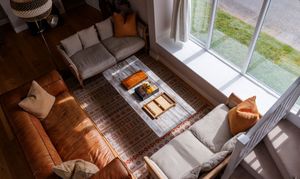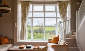 The heart of the home is a magnificent double-height drawing room — a space that instantly commands attention. With a vaulted ceiling, exposed timber beams and glazed cart doors, it enjoys dual-aspect views that fill the room with natural light throughout the day. The southerly aspect provides breathtaking views — a constantly changing rural panorama that can be enjoyed in comfort all year round.