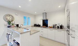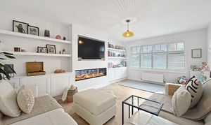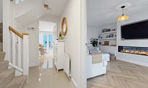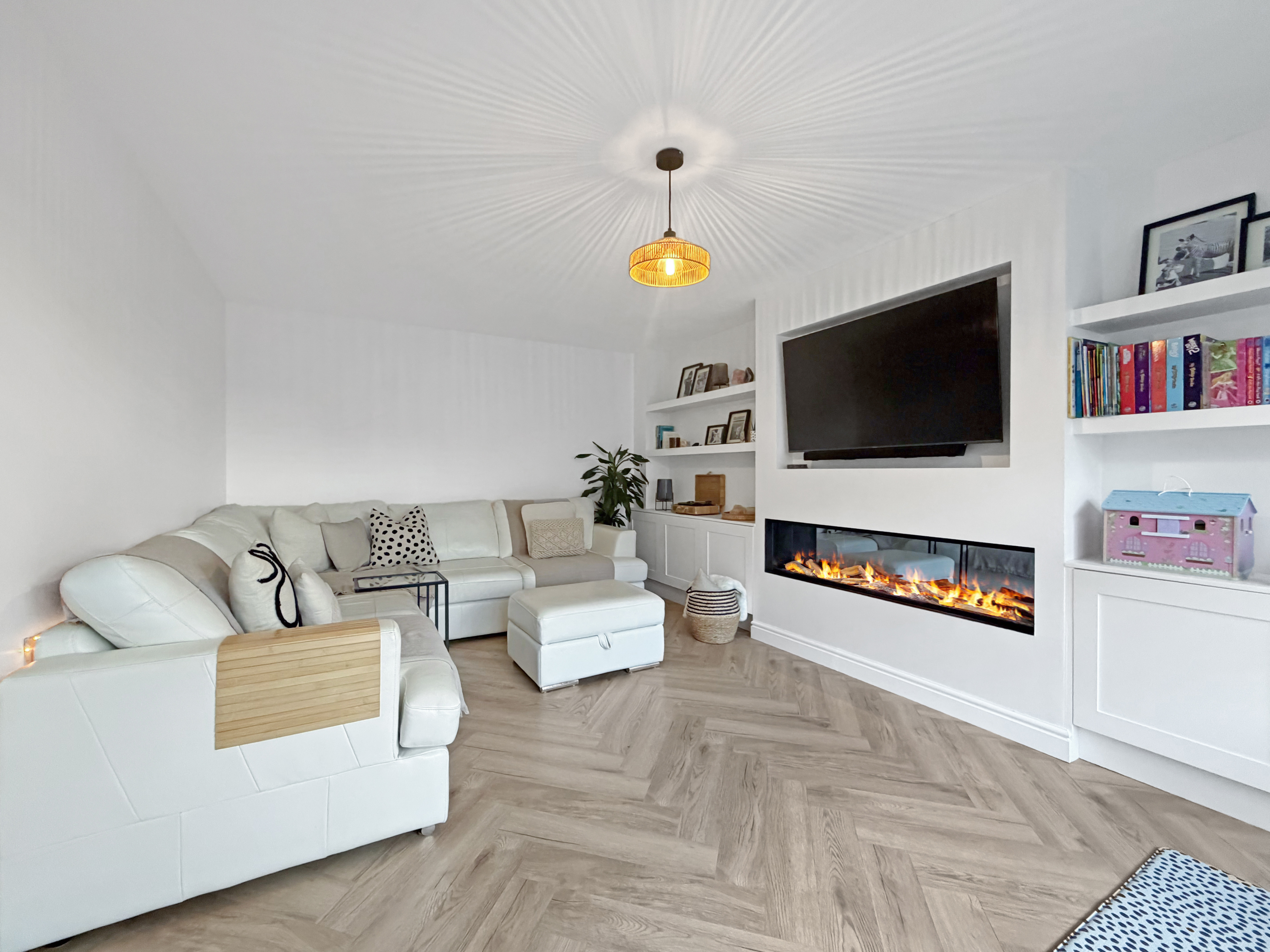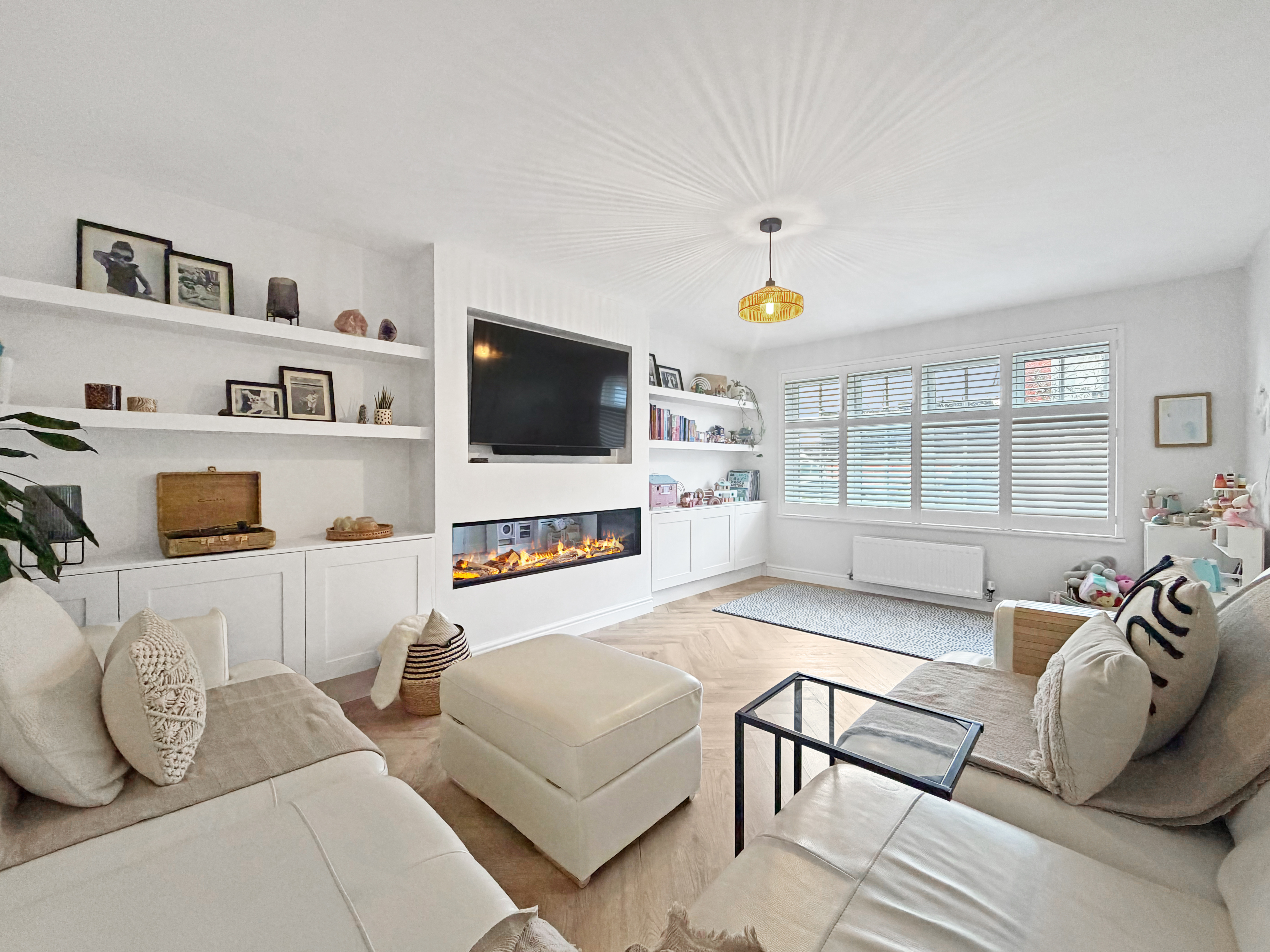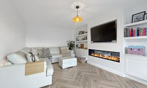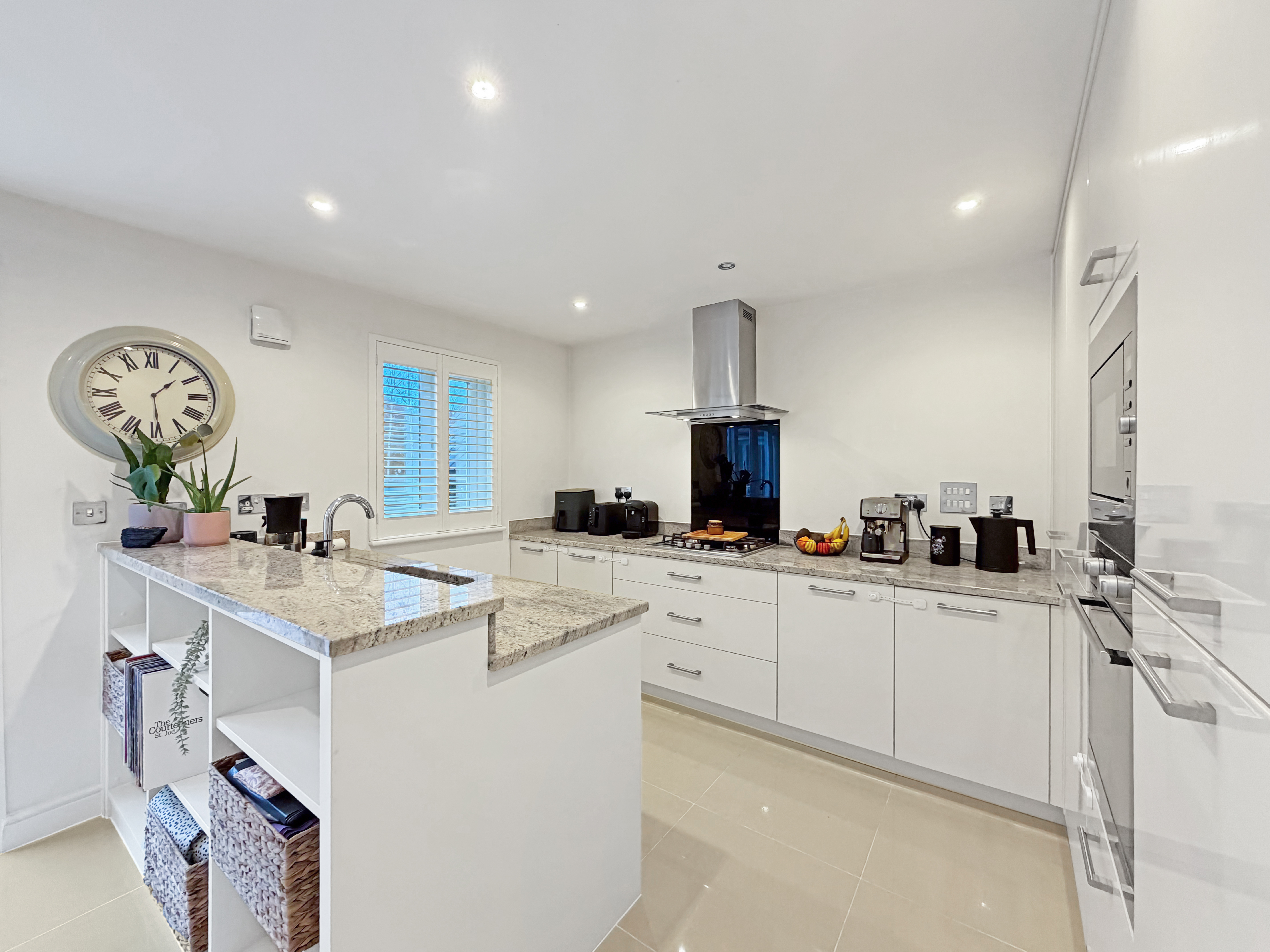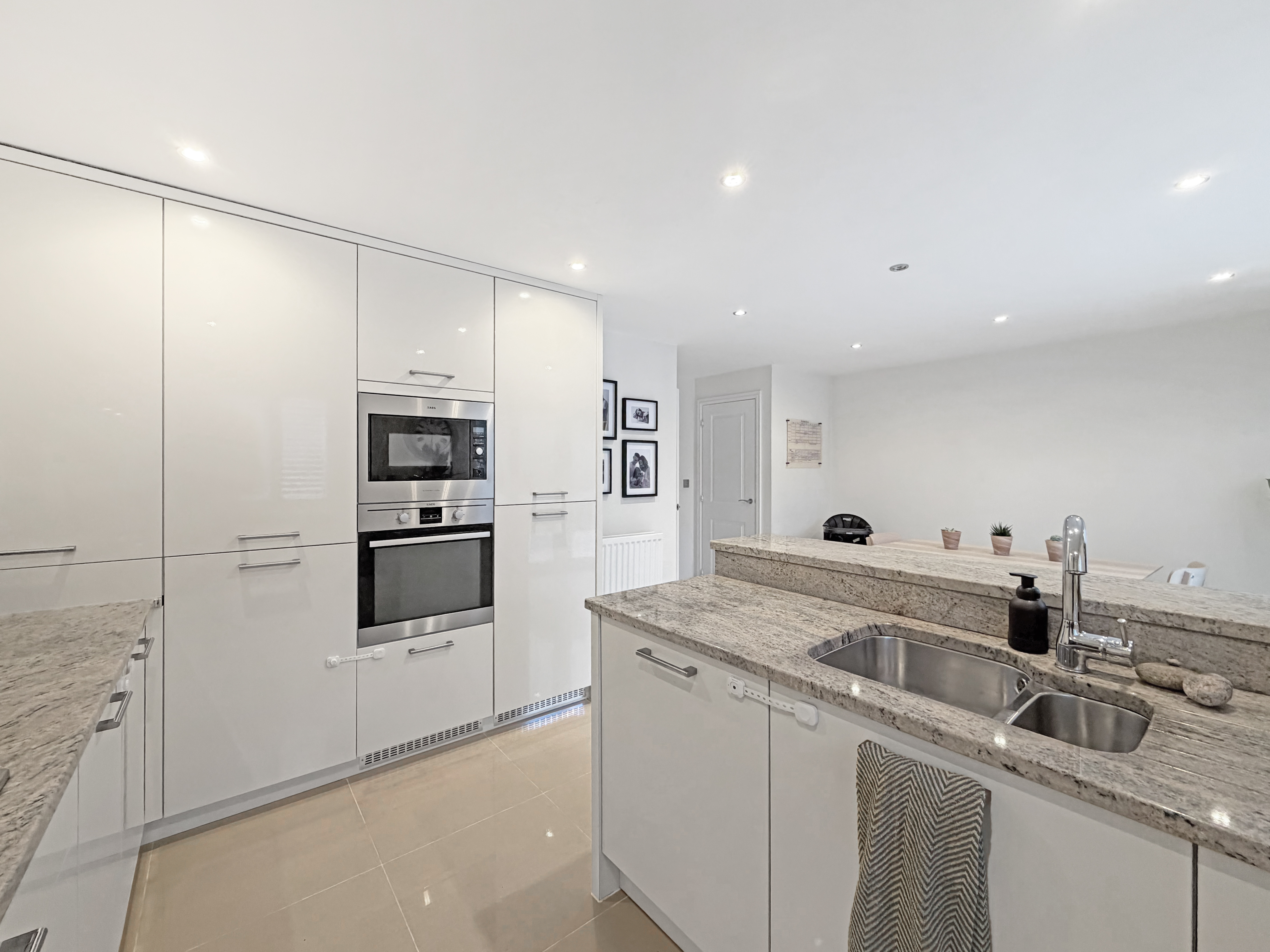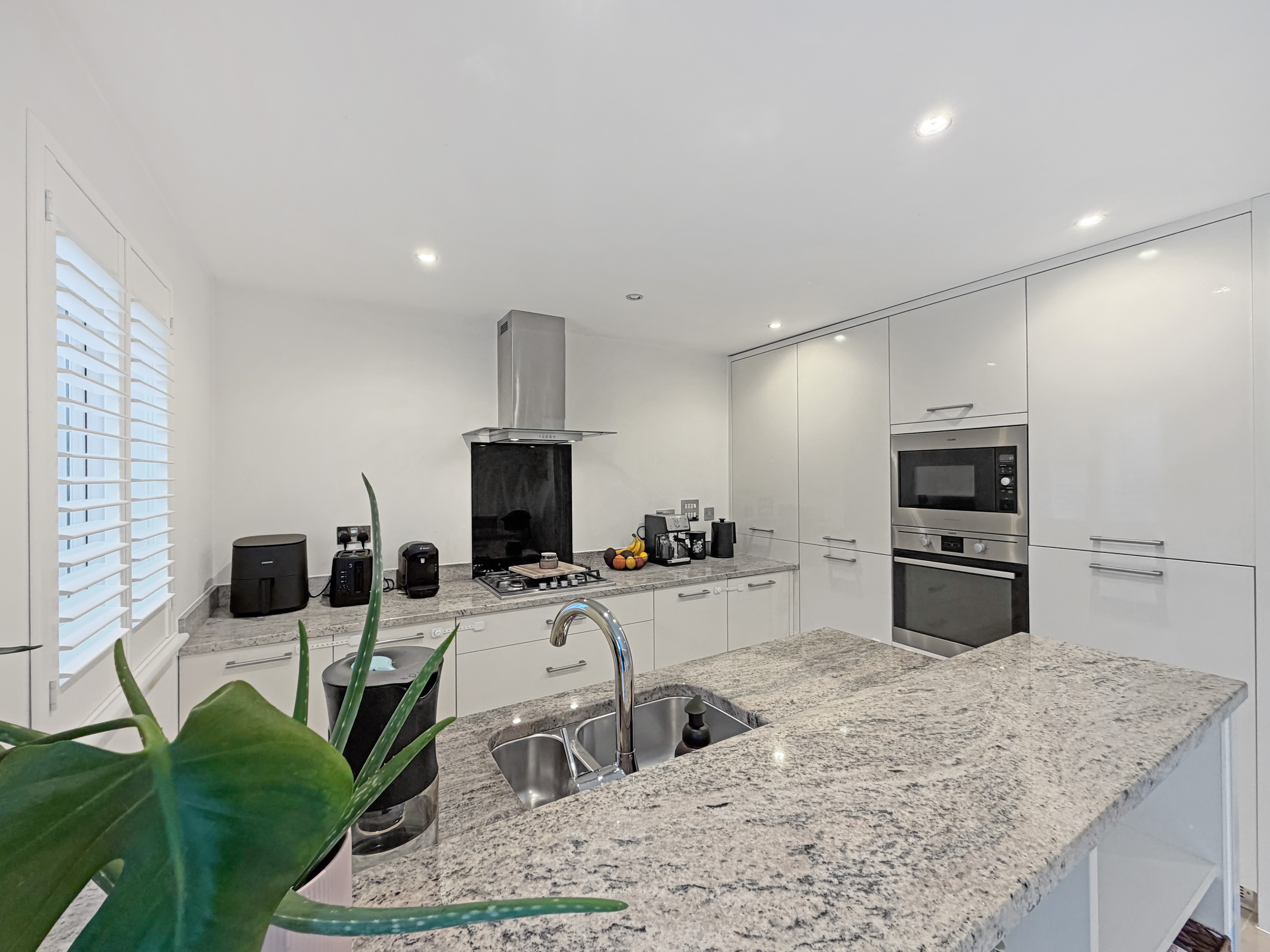 The open plan kitchen/diner is a true focal point of the house, complete with granite worktops, ample storage and a range of built-in appliances for your culinary needs. This room also flows perfectly into the garden via sliding doors.