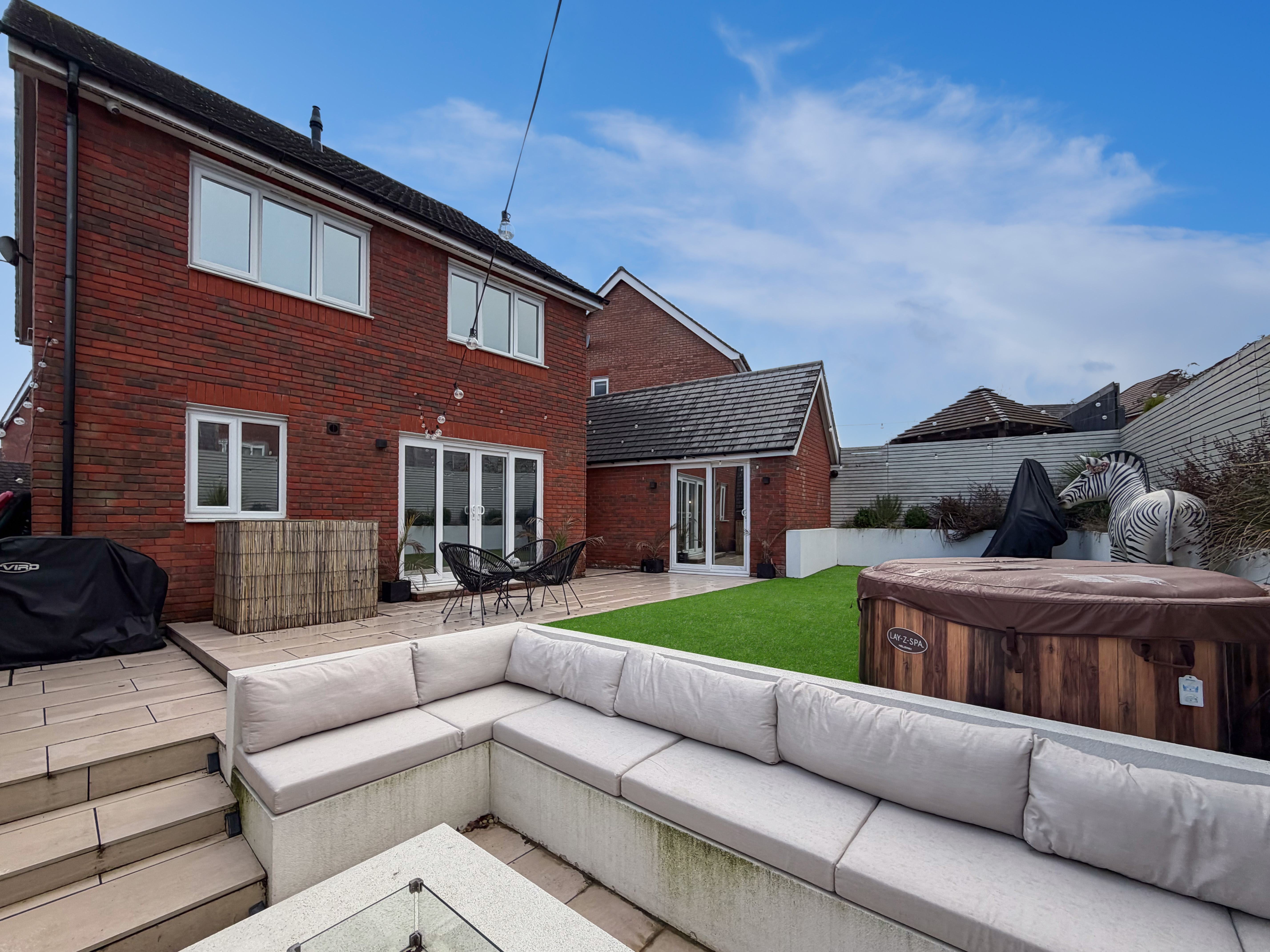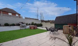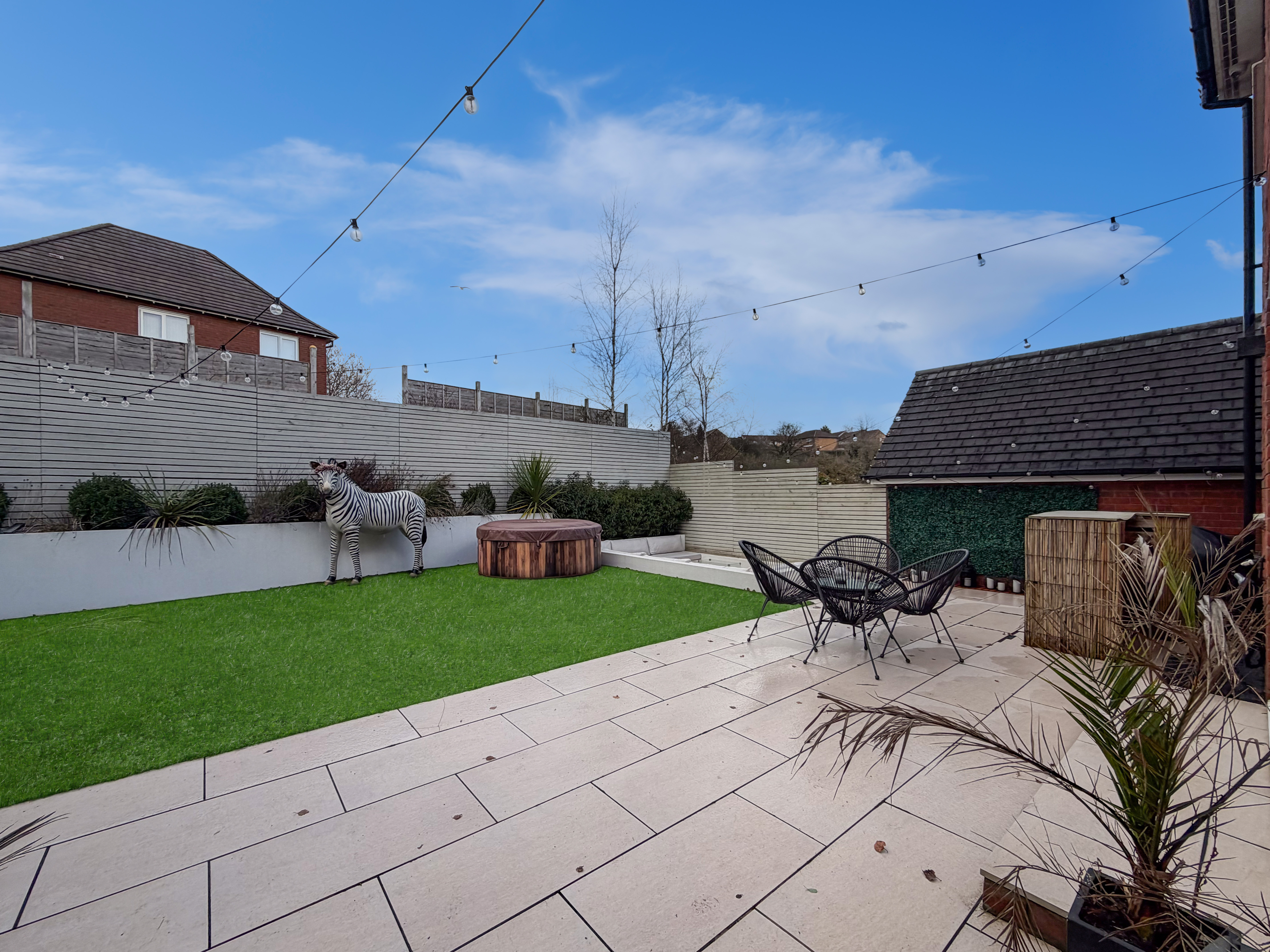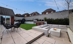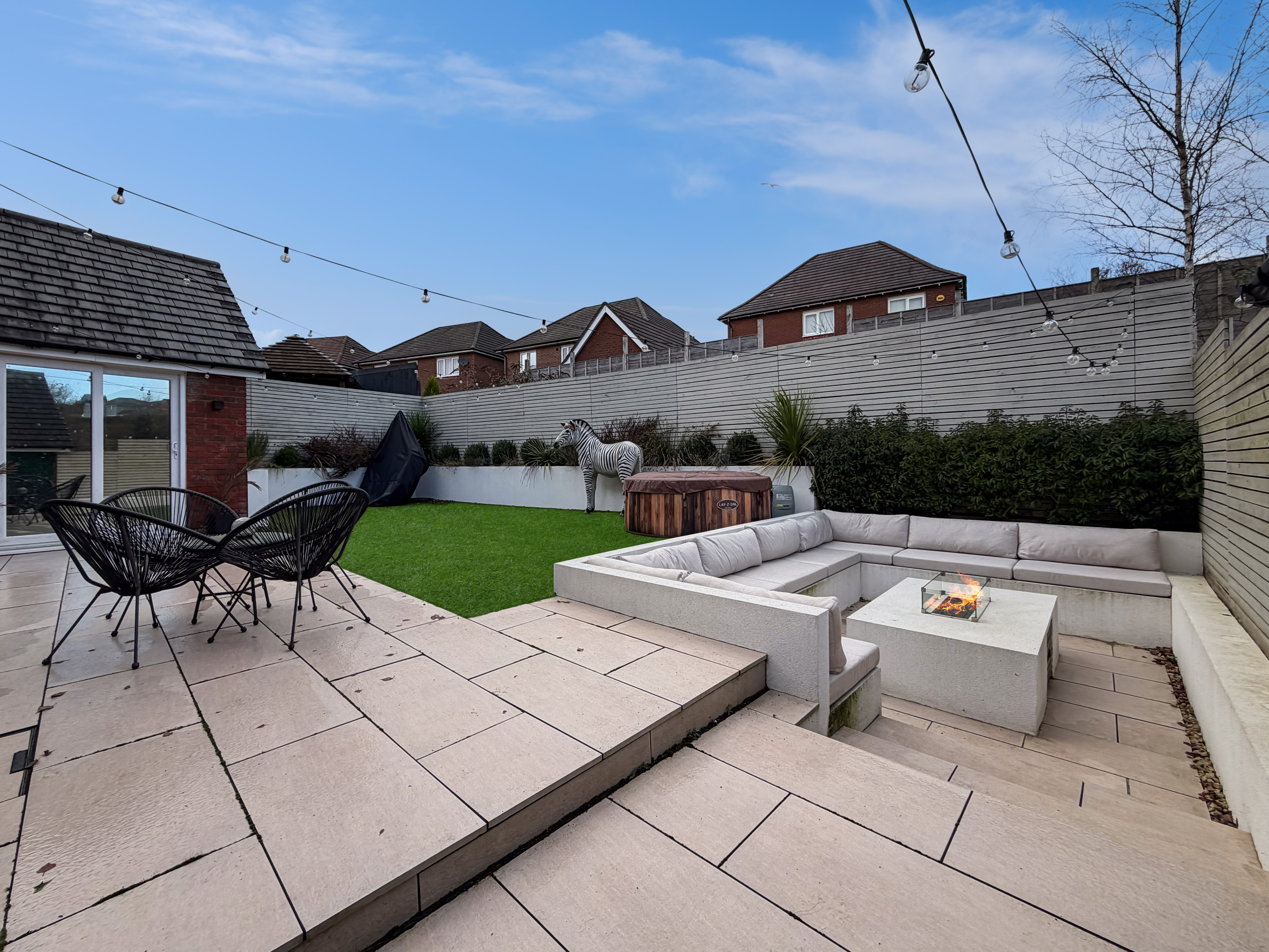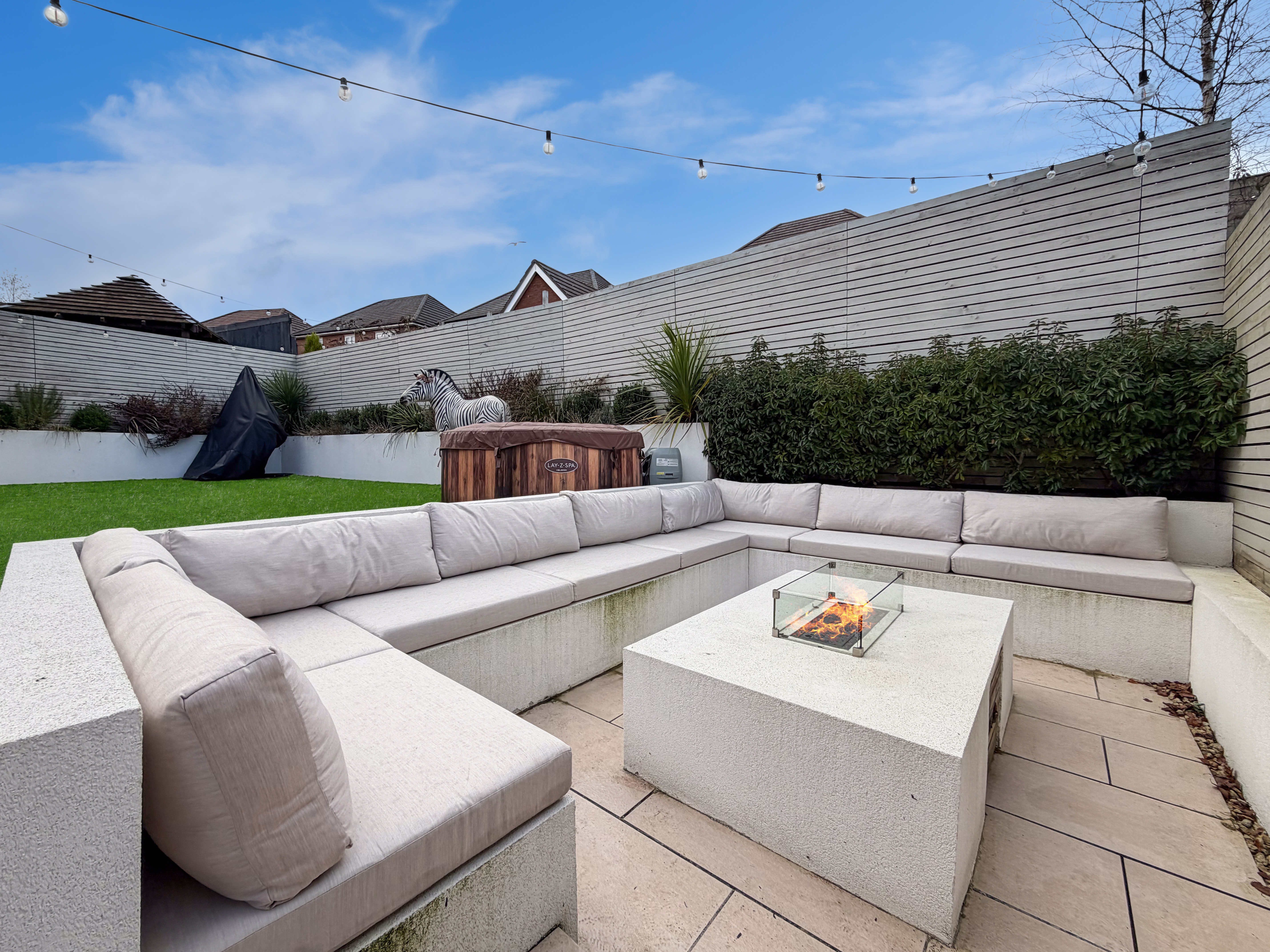 A standout feature of this property is the landscaped and private rear garden, perfect for enjoying outdoor relaxation, especially by the fire pit.