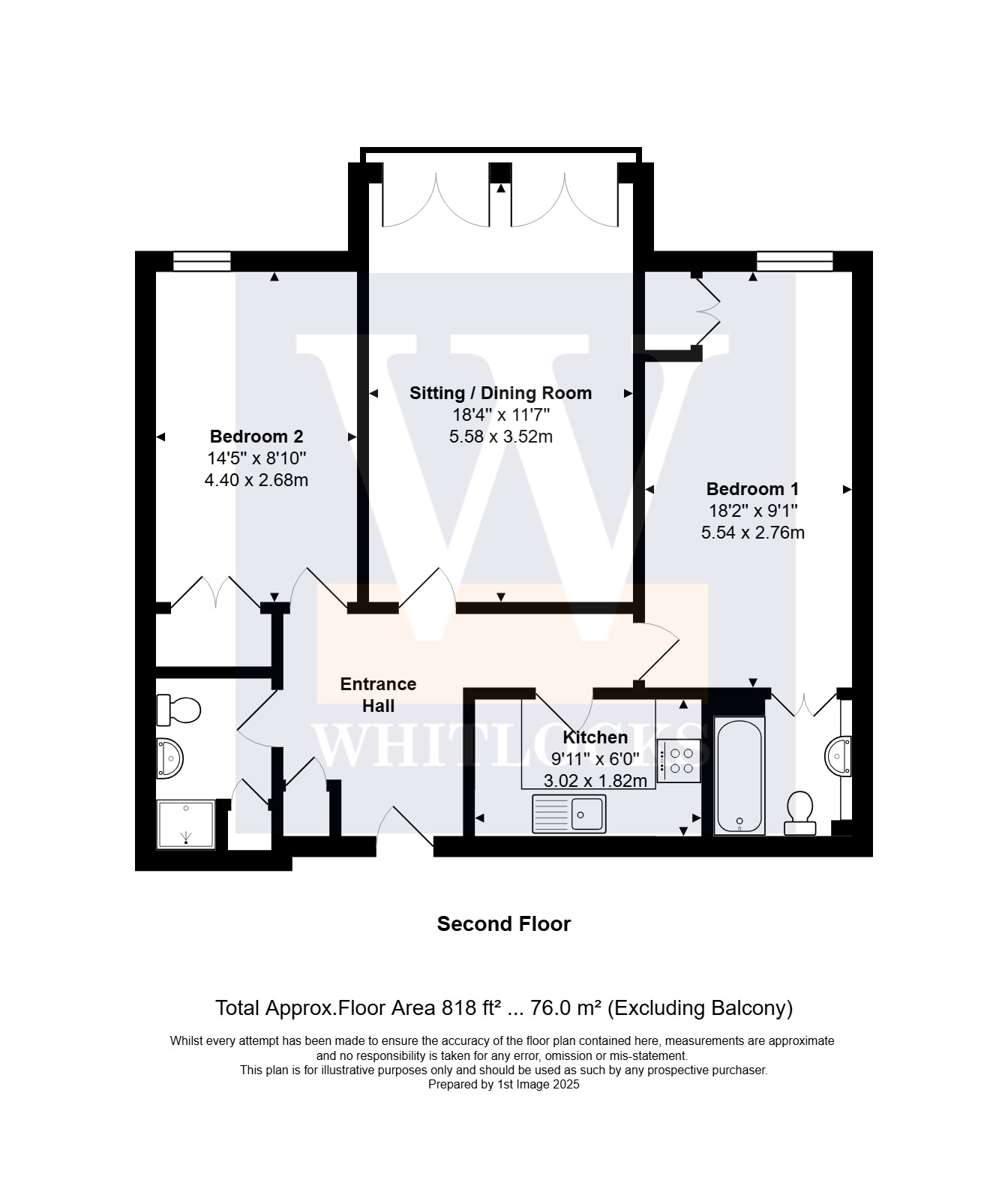 The accommodation features a welcoming entrance hall with ample storage, a spacious living room with a Juliette balcony offering picturesque views, and a modern fitted kitchen. Both double bedrooms include fitted wardrobes, with the principal bedroom benefiting from an ensuite bathroom, complemented by a further shower room.