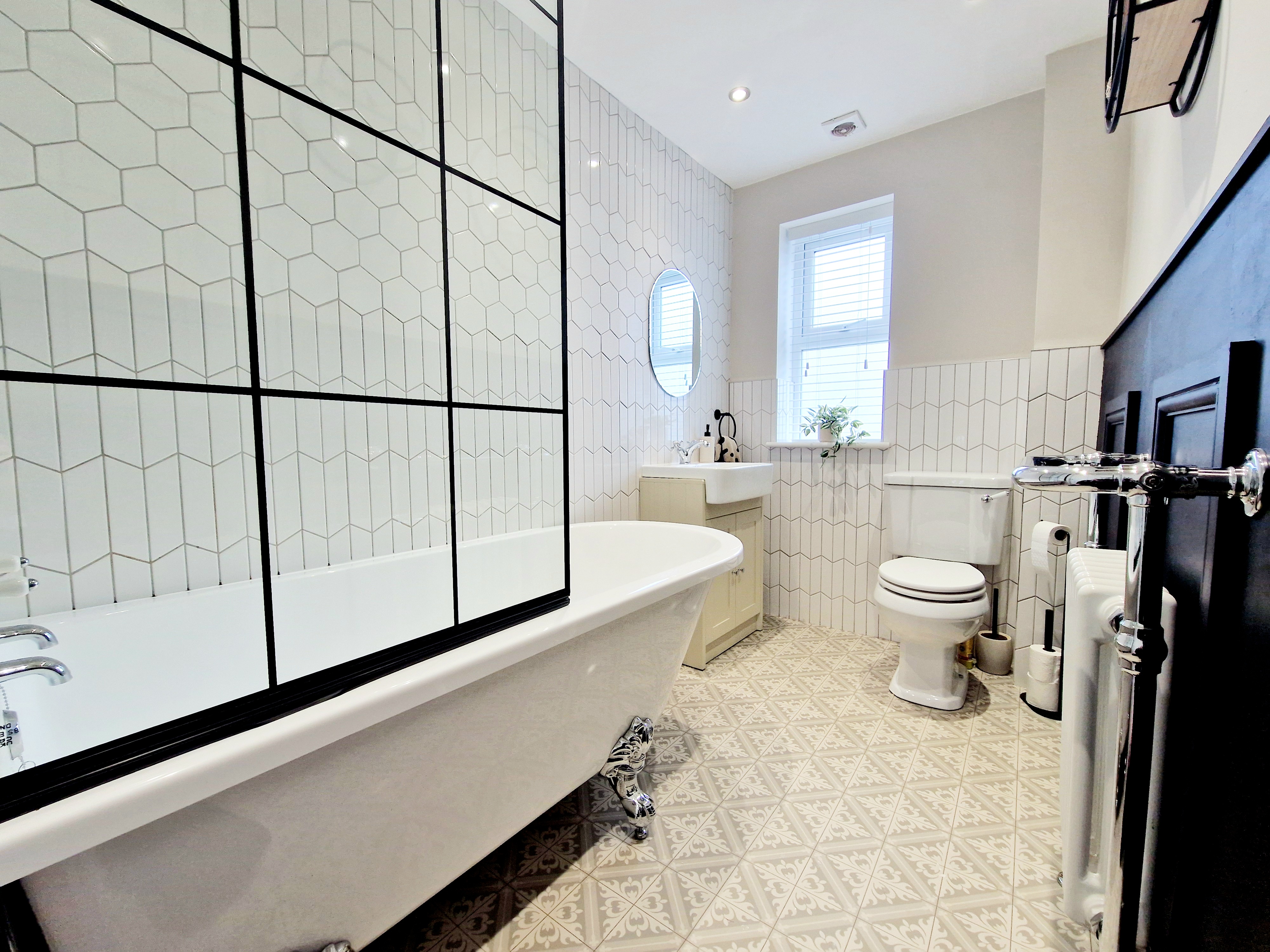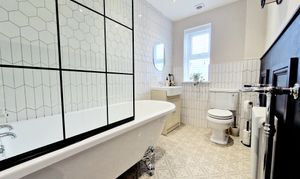 Heading upstairs, you'll find three well-proportioned bedrooms, and a family bathroom boasting a over bath shower, a charming roll-top bath, and a captivating features.