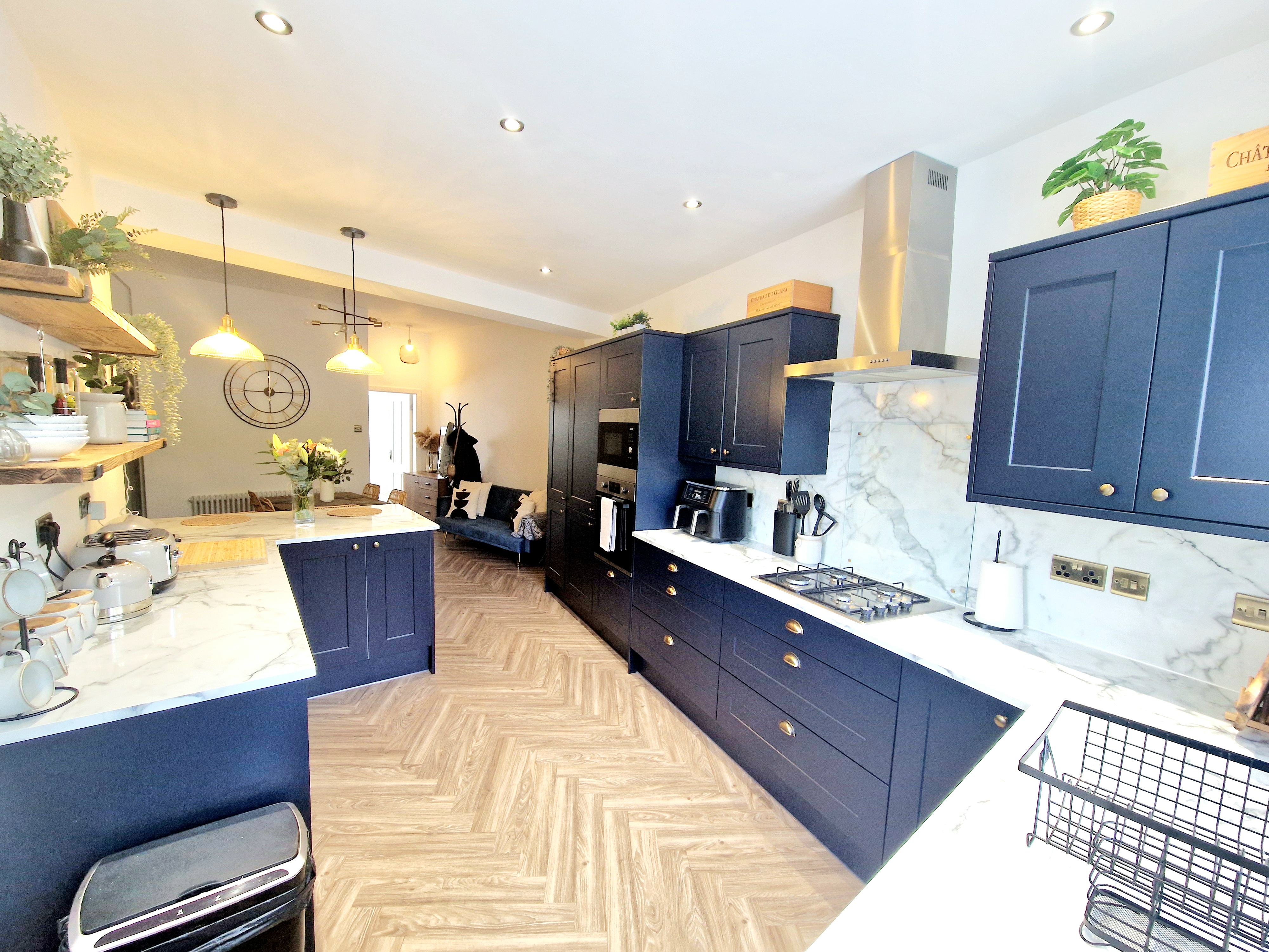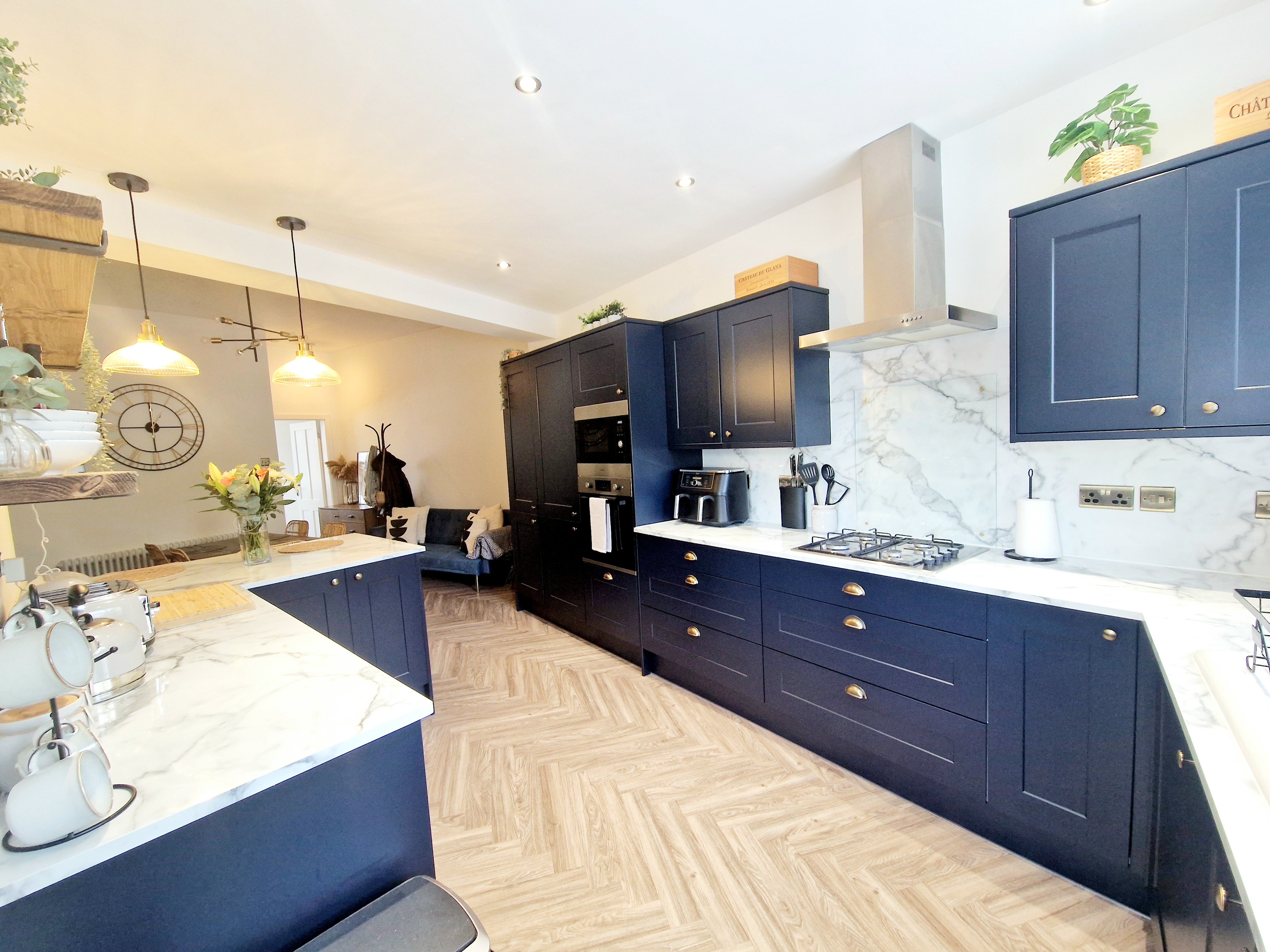 Upon entering, you'll be greeted by an inviting vestibule leading to a spacious lounge with a feature fireplace. Through to the dining kitchen again with beautiful feature fireplace for decorative prepossess, also featuring recessed spotlights, adds a touch of elegance. The modern kitchen comes complete with built in appliances, including an integrated dishwasher, a double oven and hob and a washing machine. There's also a spacious under-stair storage/pantry area.