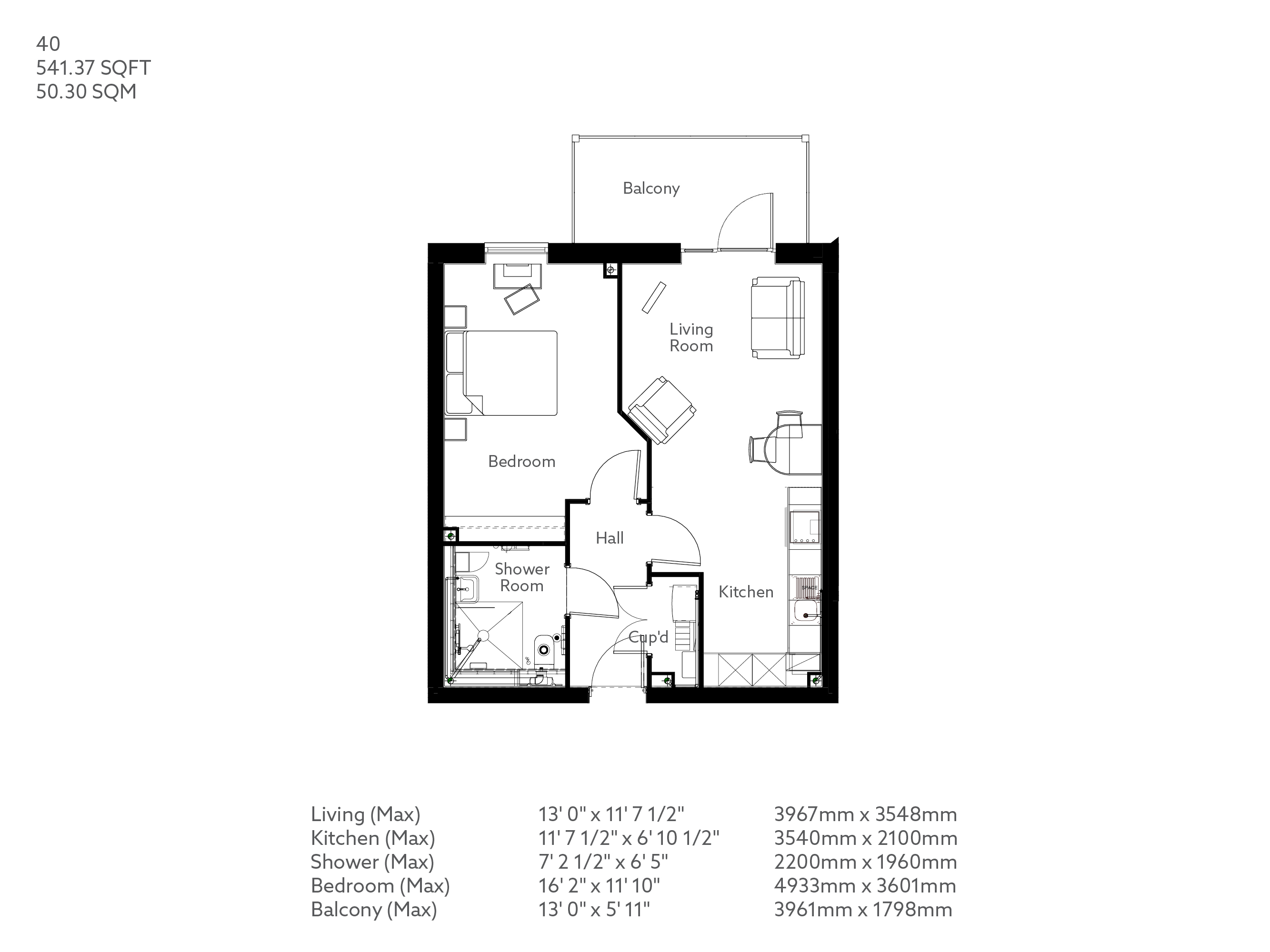 Plot 40 Twelve Acres Place is a 1 bedroom SECOND FLOOR apartment with west aspect balcony.