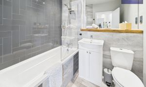 4 piece suite Bathroom with walk in shower cubicle and freestanding bath