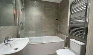 This compact top floor apartment is located in the heart of Maidstone, close to Lockmeadow with its cinema and leisure facilities and just a short walk from the banks of the Medway. Maidstone West station is 5 mins walk and Maidstone East and Barracks are also easily accessed on foot. The shops and restaurants of the town centre are all within easy walking distance. Internally the apartment comprises of lounge/kitchen with grey laminate wood floors, white and grey walls and gloss white kitchen units with integrated appliances. The bedrooms are carpeted with grey carpet and walls are painted white. The bathroom features white sanitary suite with shower over bath and tiled floors and partially tiled walls.