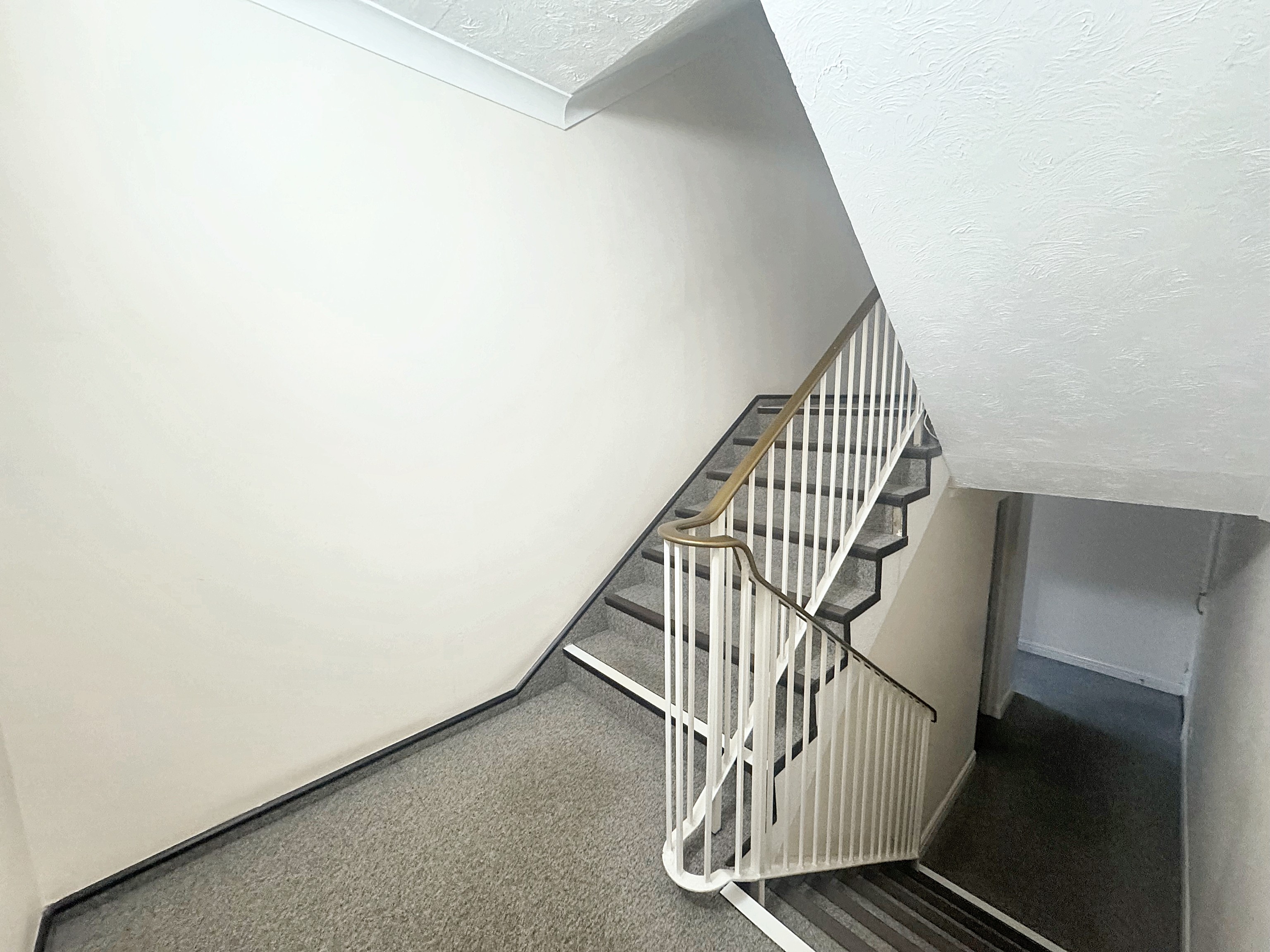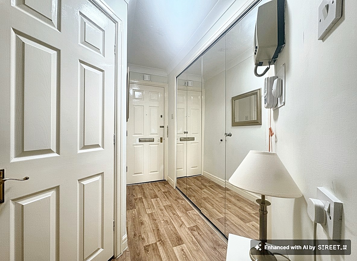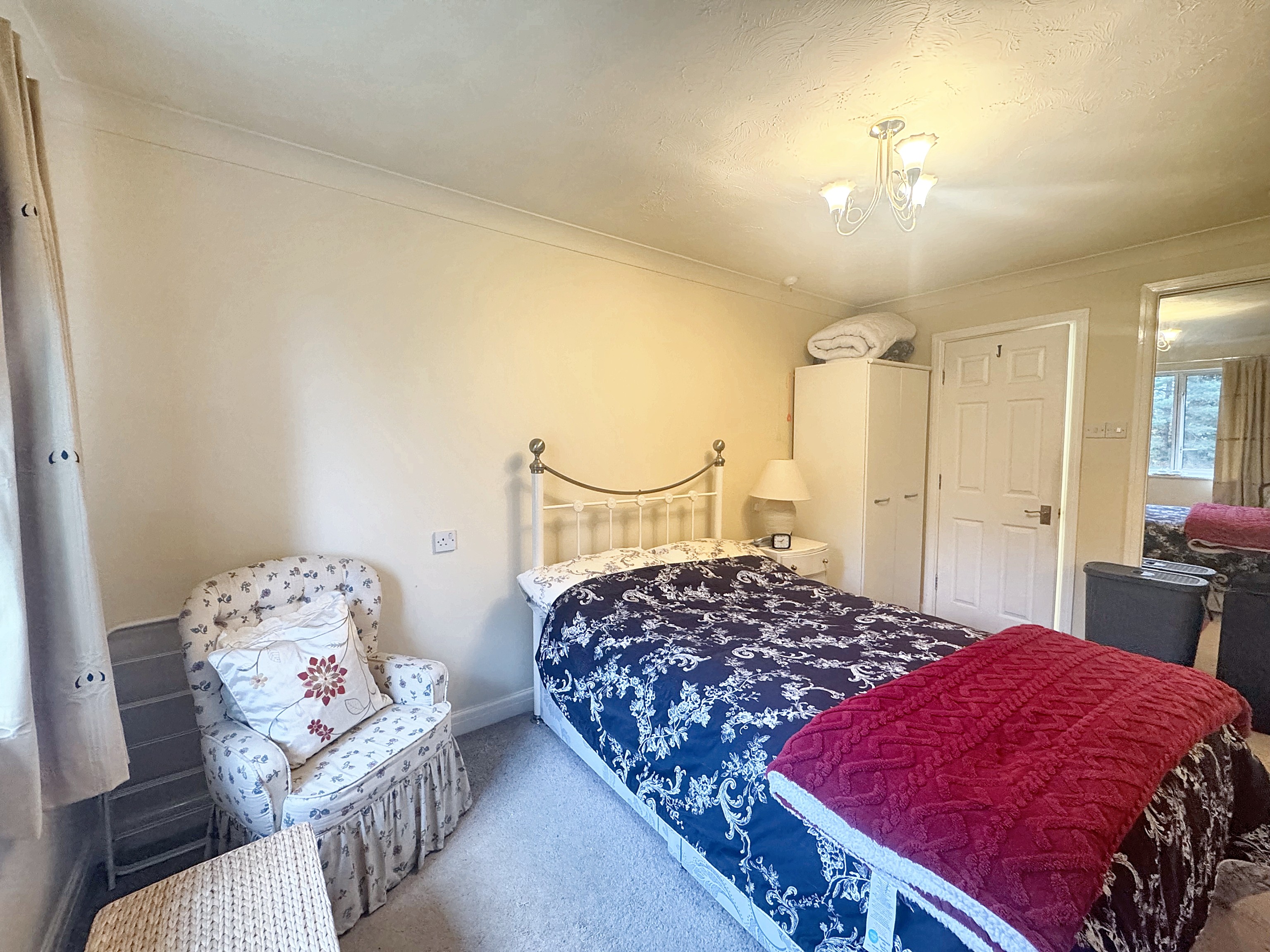 Window to the rear elevation with views over the rear communal hardens. Fitted mirrored cupboard.