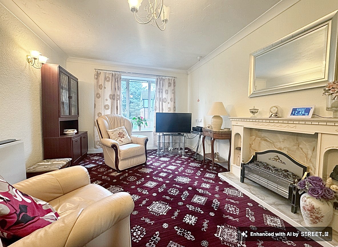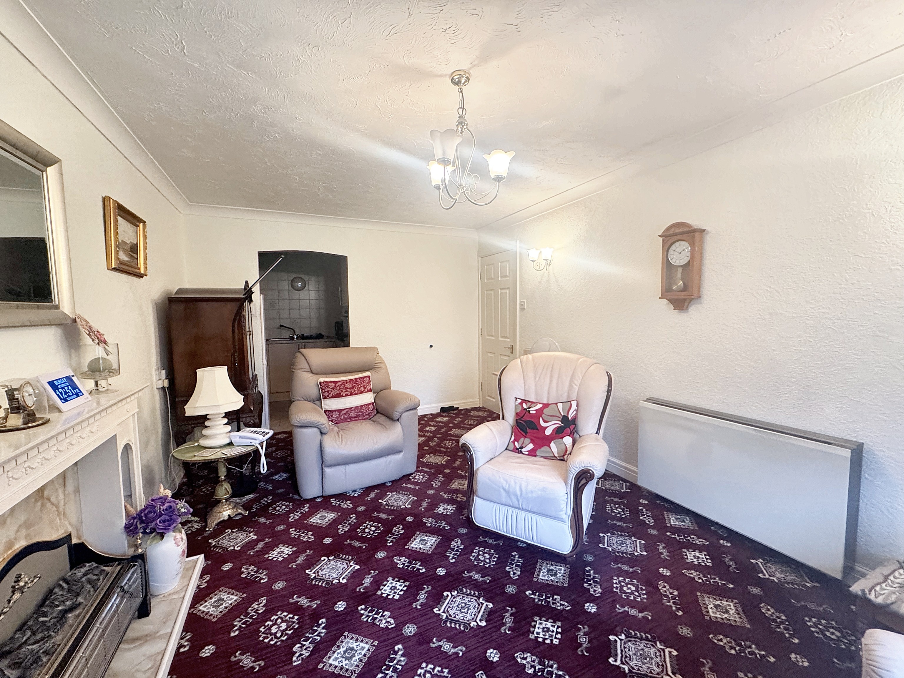 Window to the rear elevation with views over the rear communal gardens. Feature fireplace. Two wall lights and one ceiling light. Archway through to: